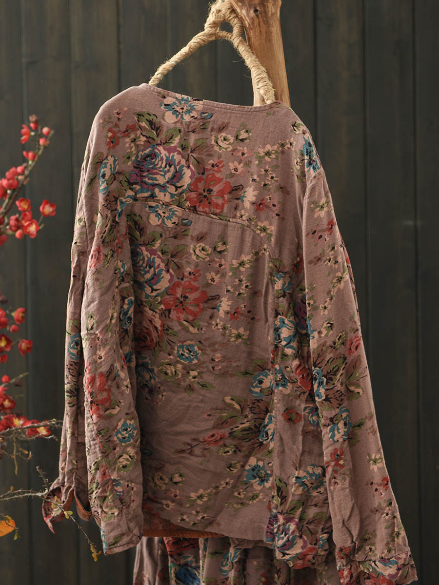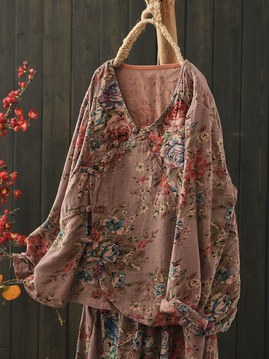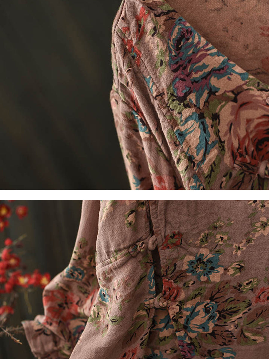 Ženska proljetna retro pamučna bluza s V-izrezom i cvijećem