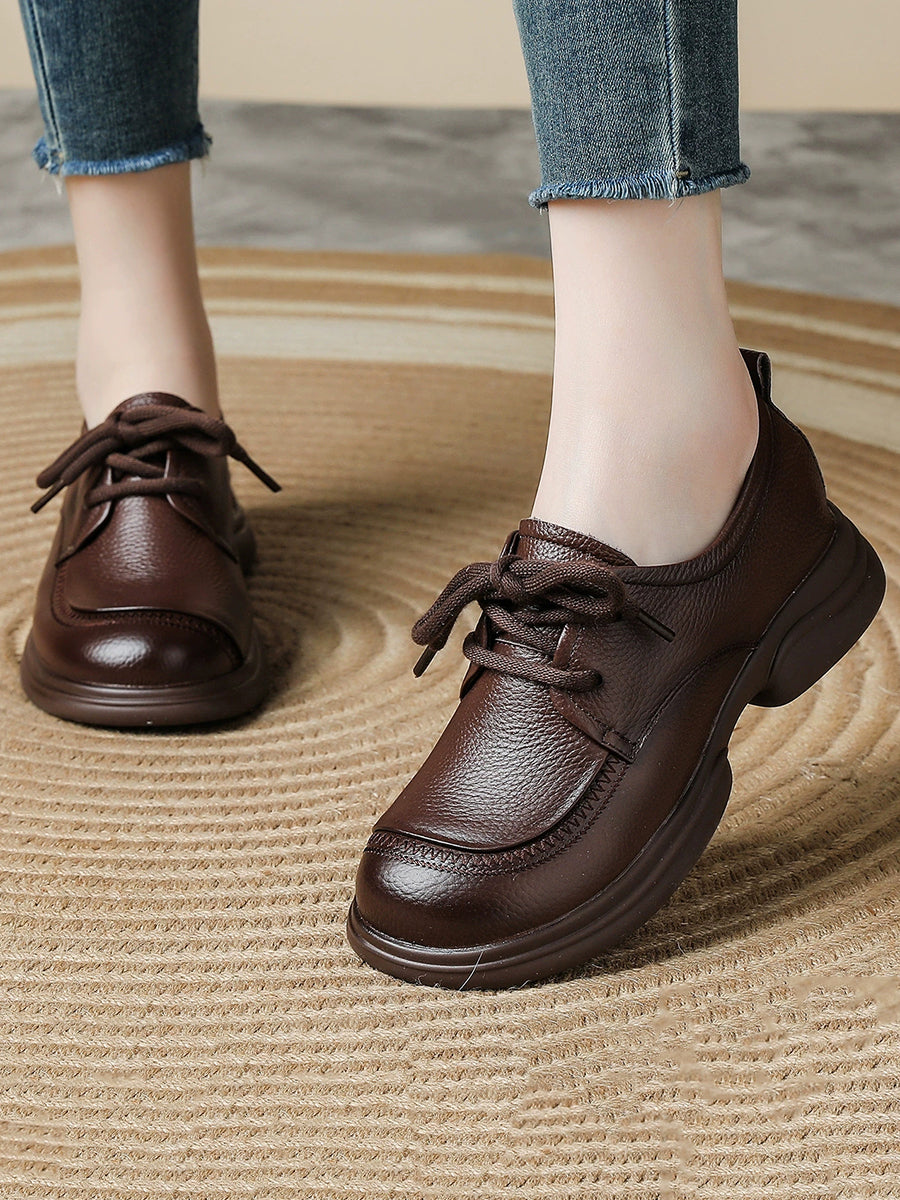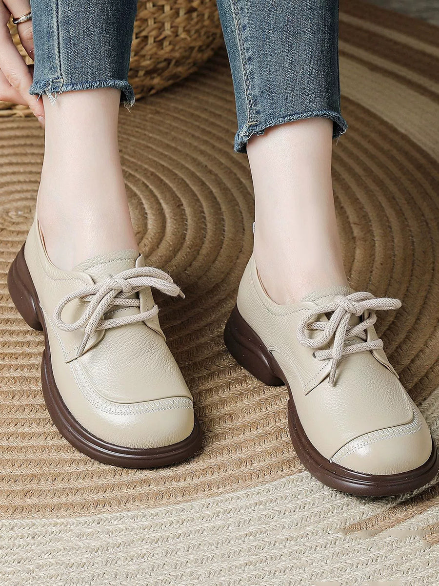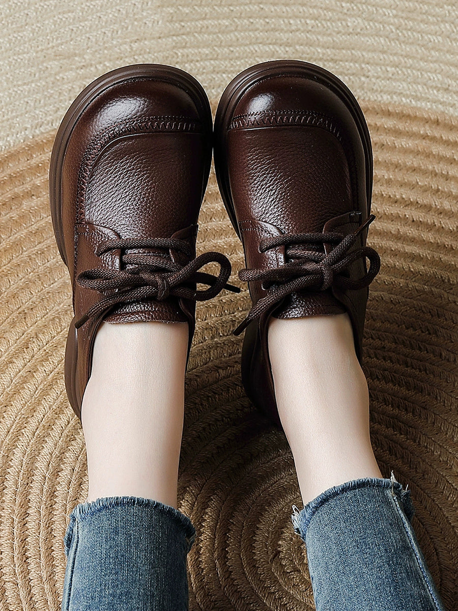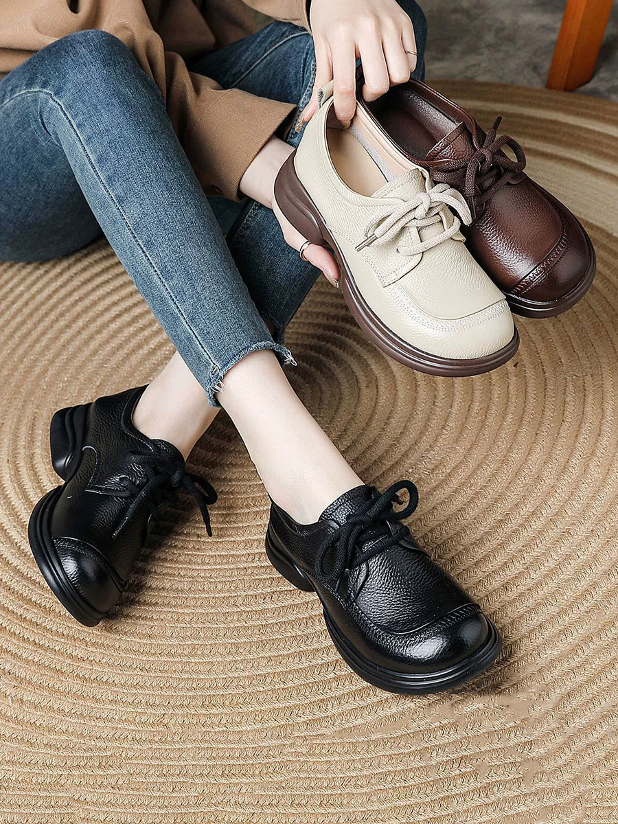 Ženske proljetne retro cipele od prave kože s niskom petom