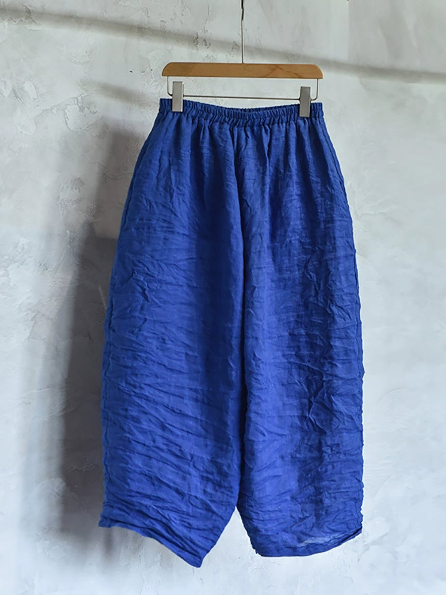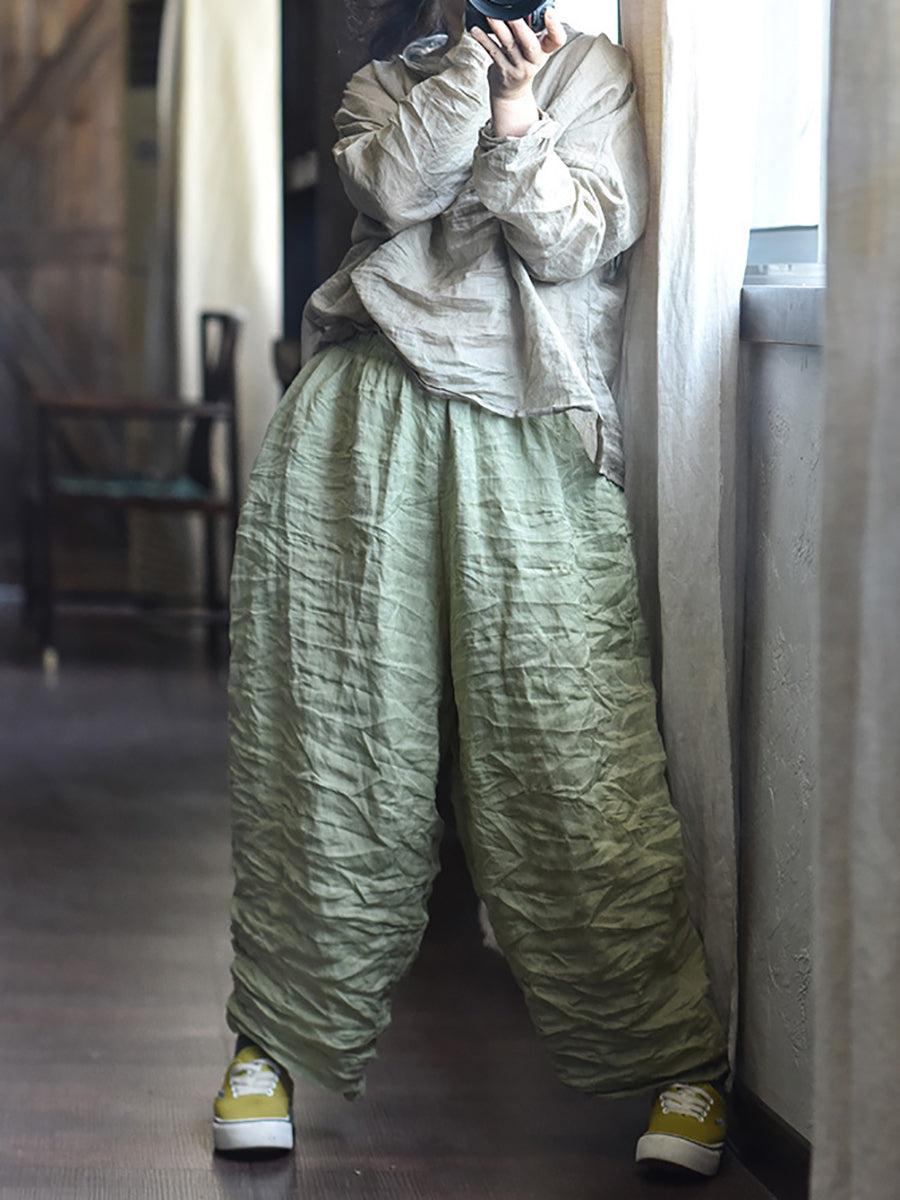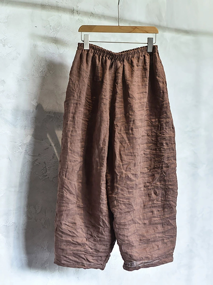 Ženske proljetne retro hlače od čistog lana širokih nogavica