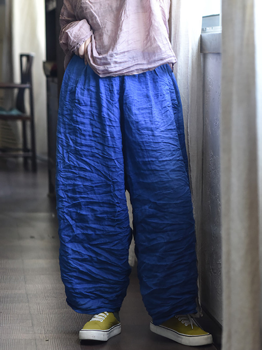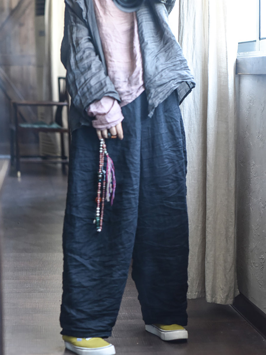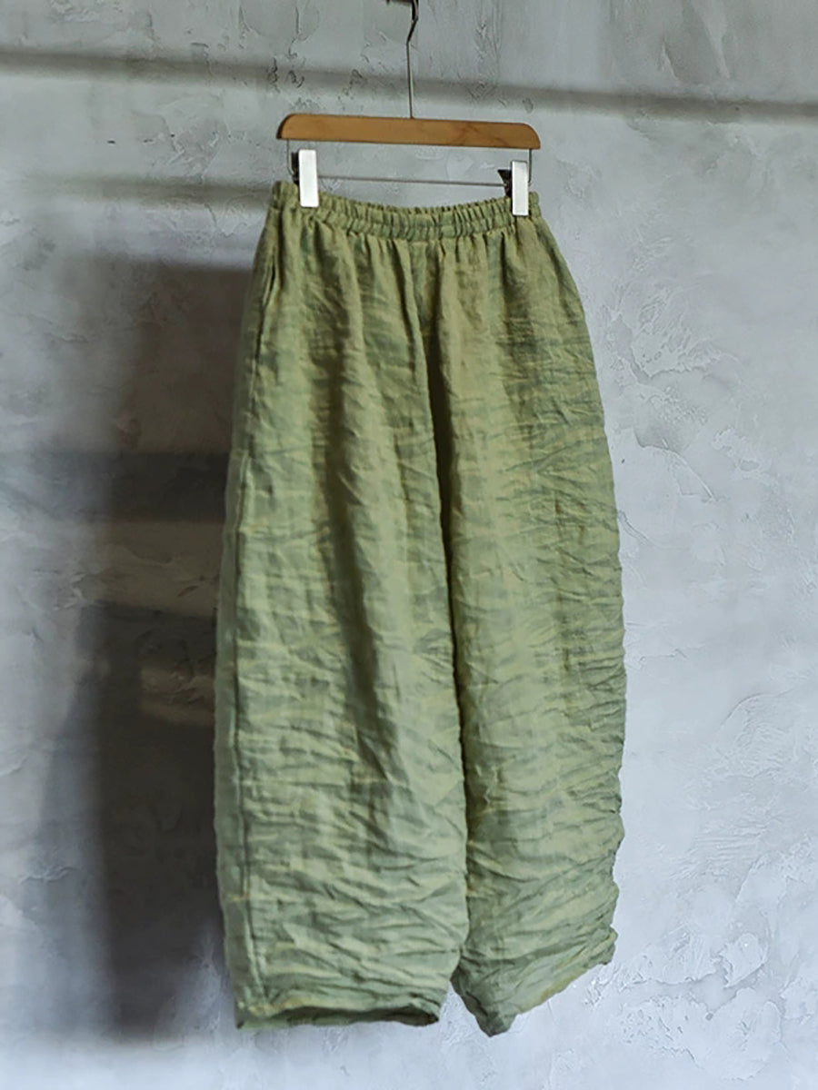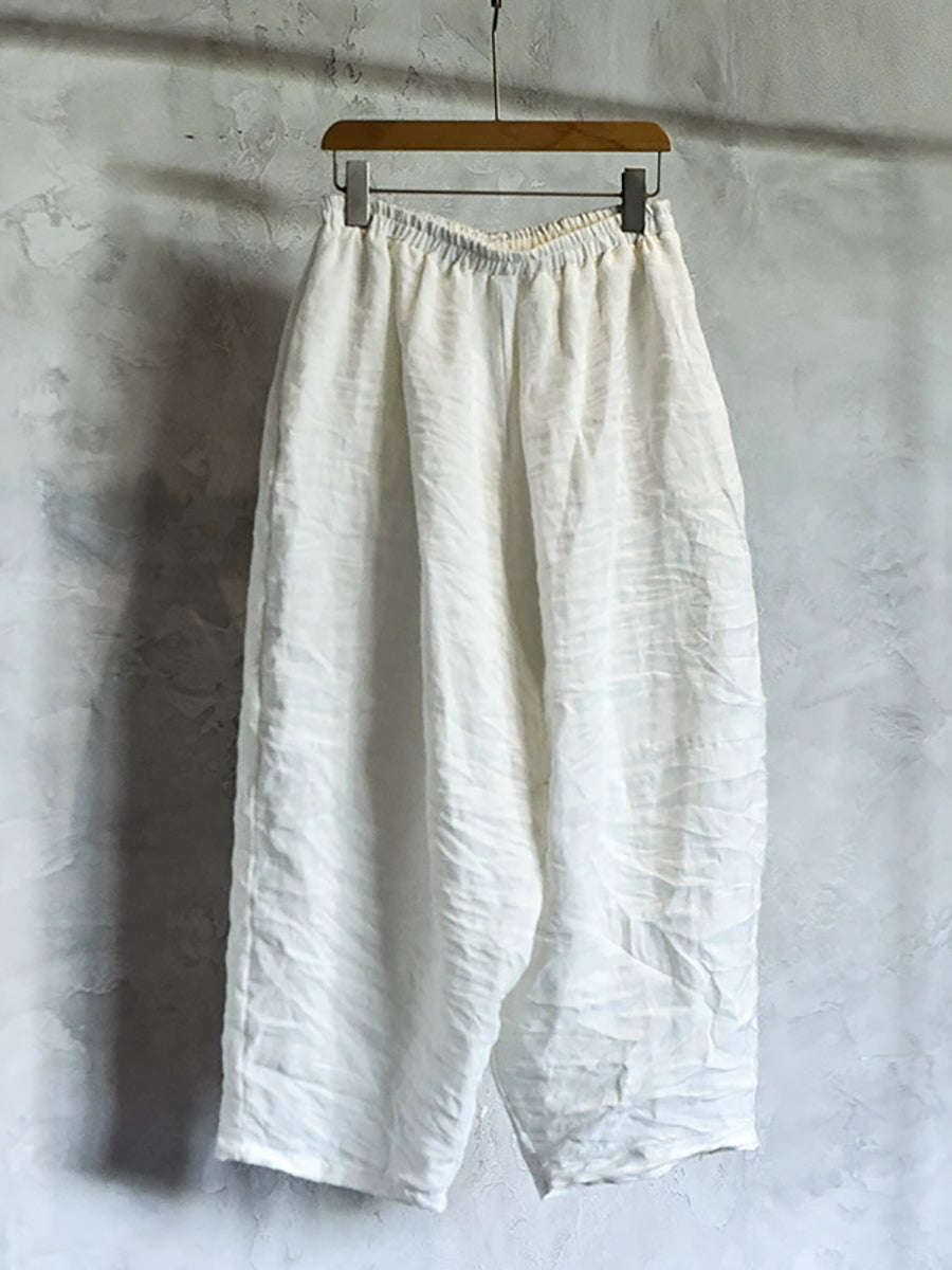 Ženske proljetne retro hlače od čistog lana širokih nogavica
