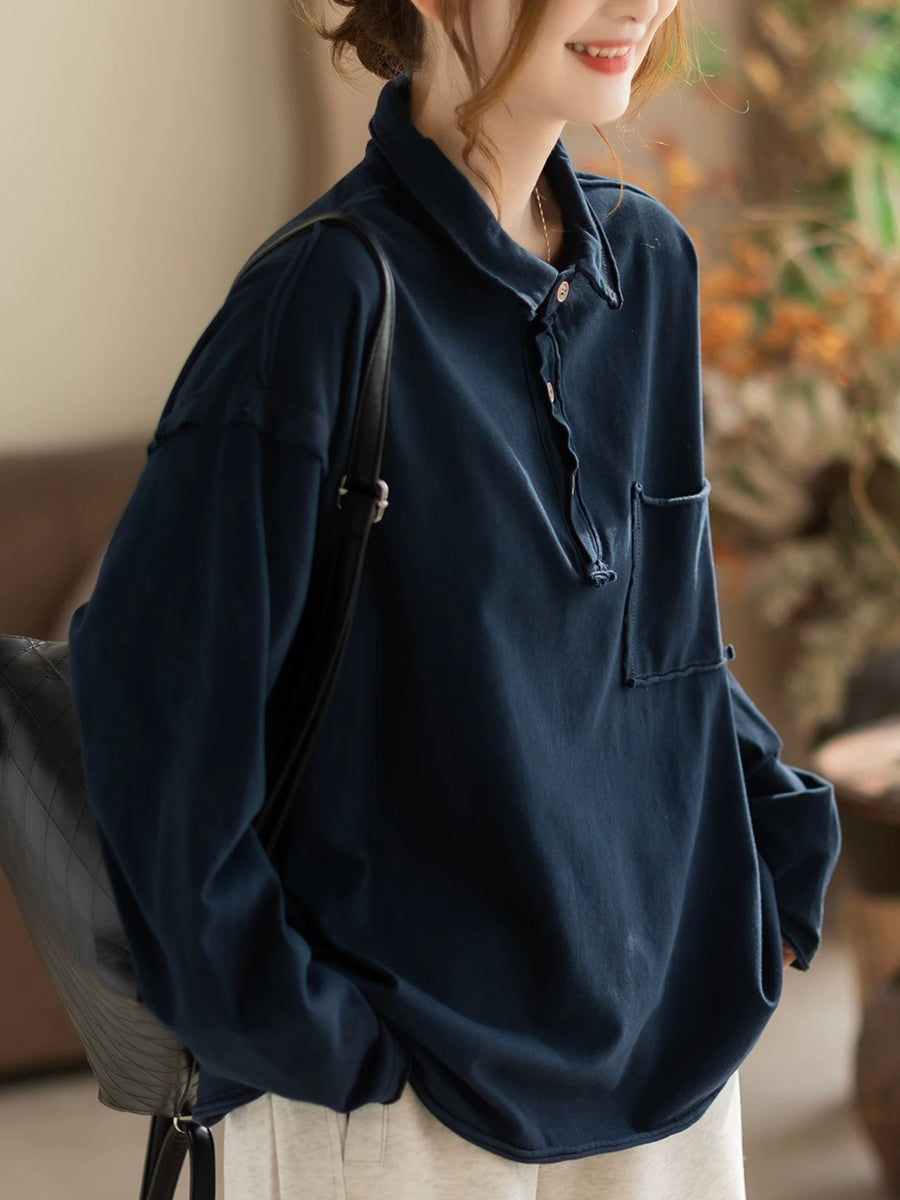 Ženska proljetna retro bluza s ovratnikom u čistoj boji