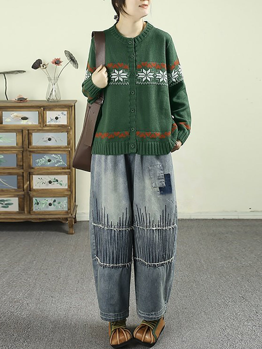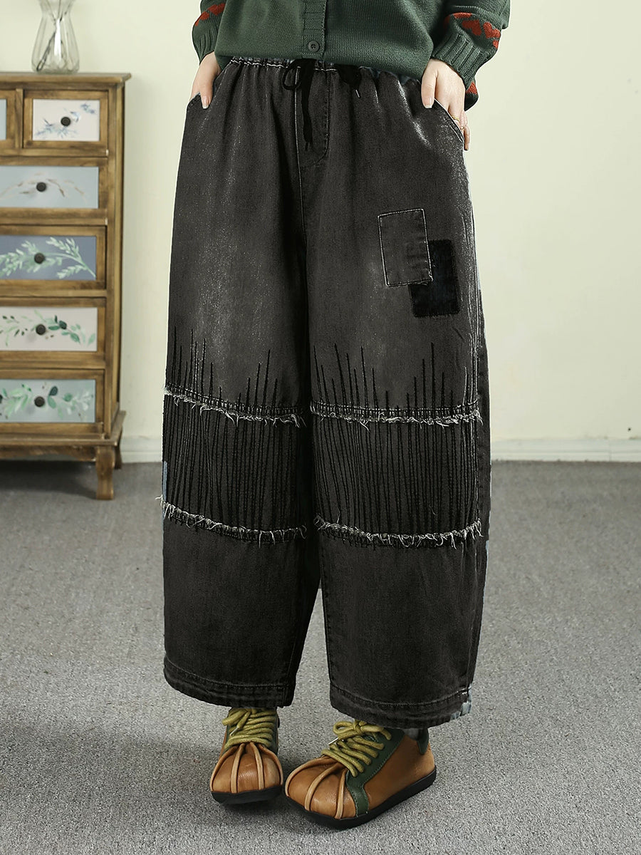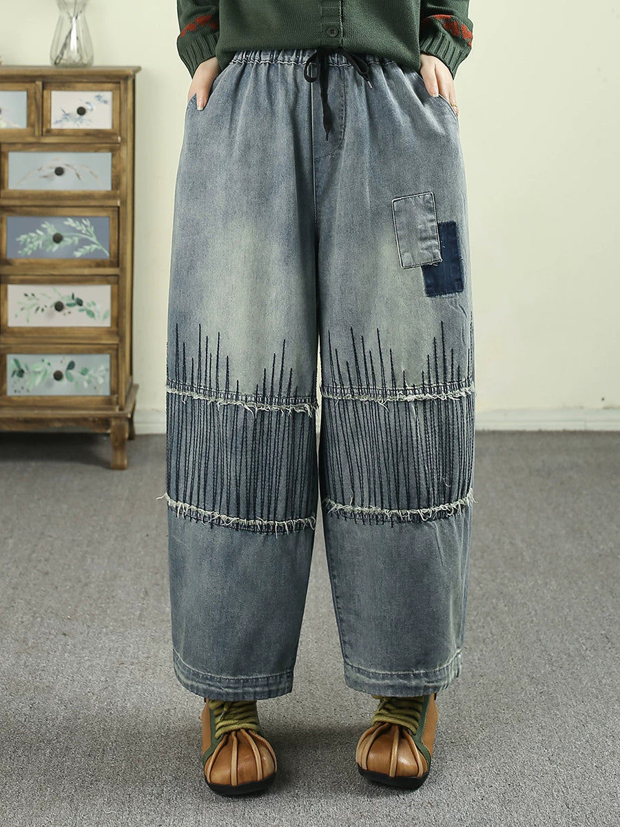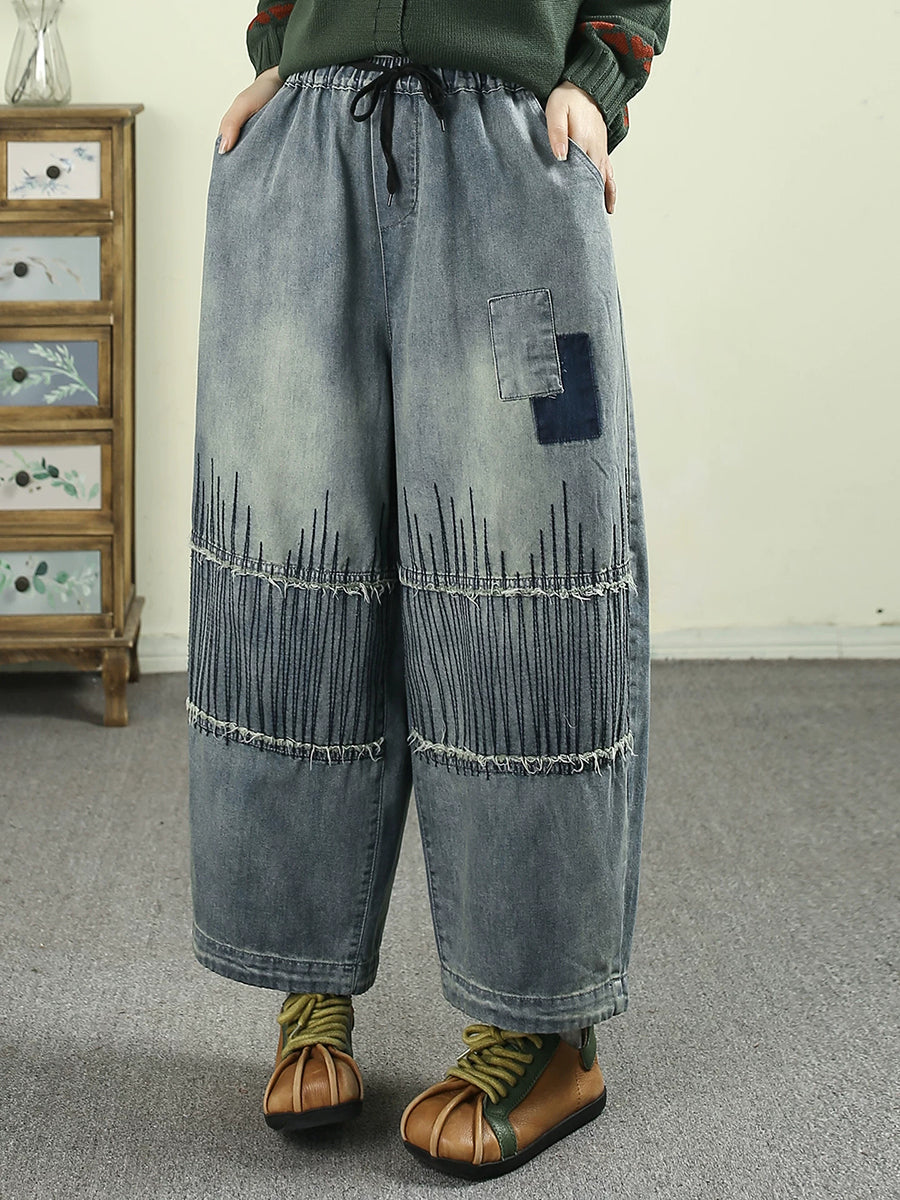 Ženske proljetne vintage traper harem hlače s patchworkom