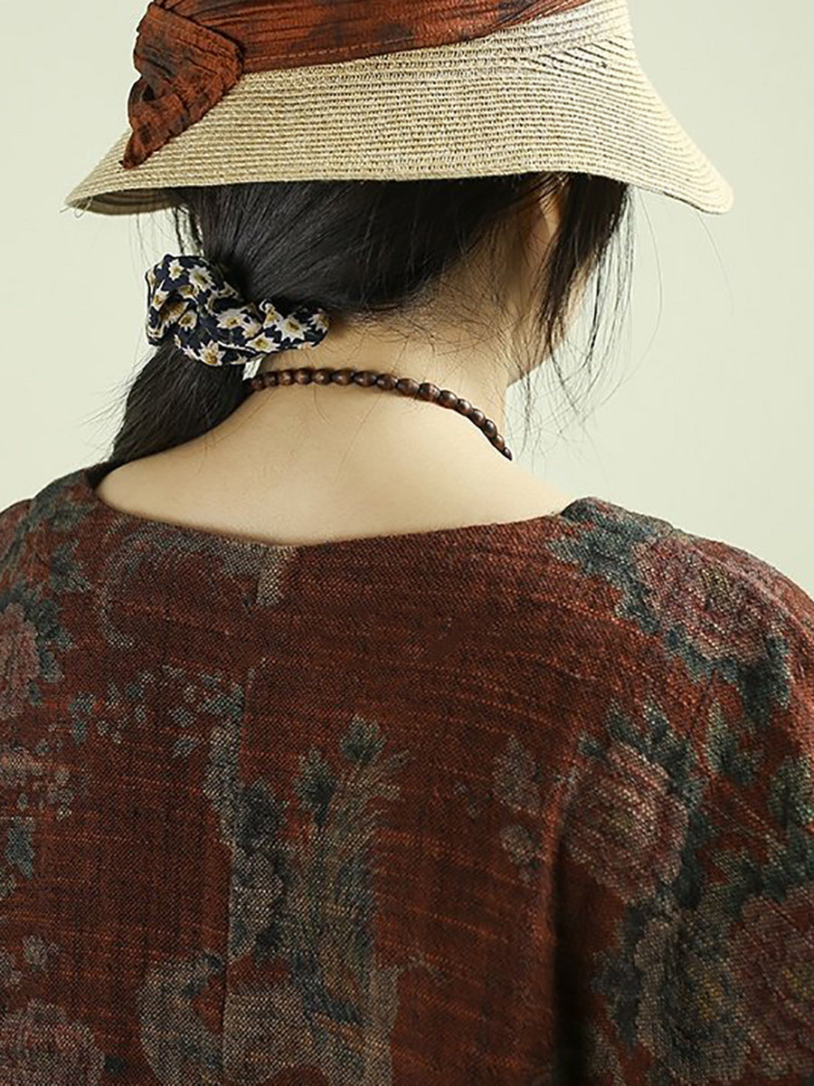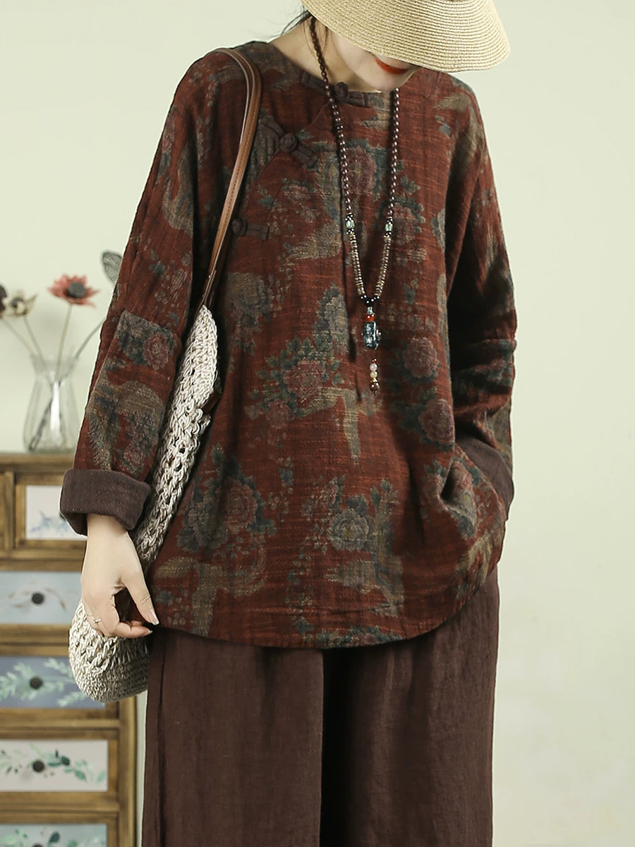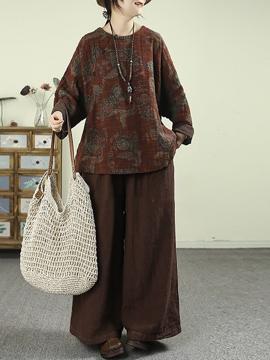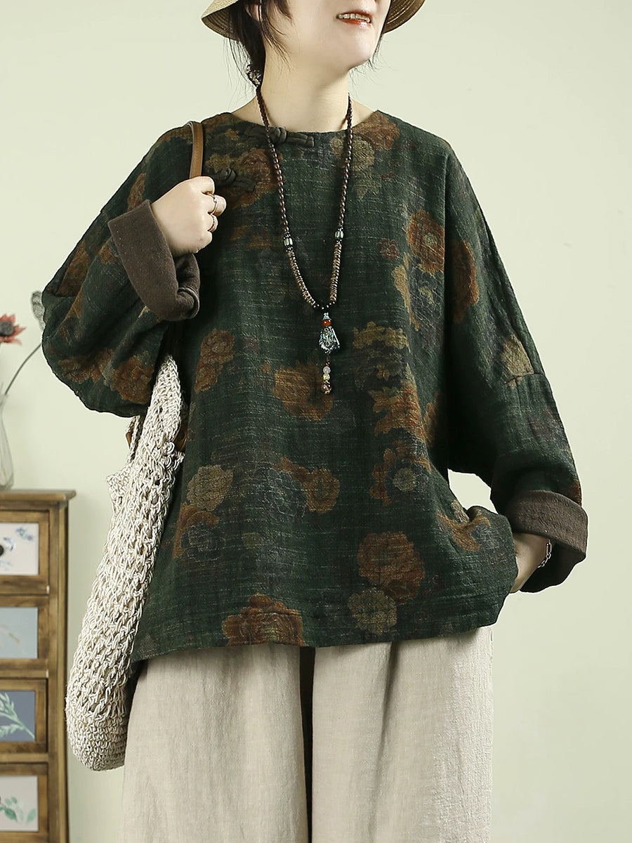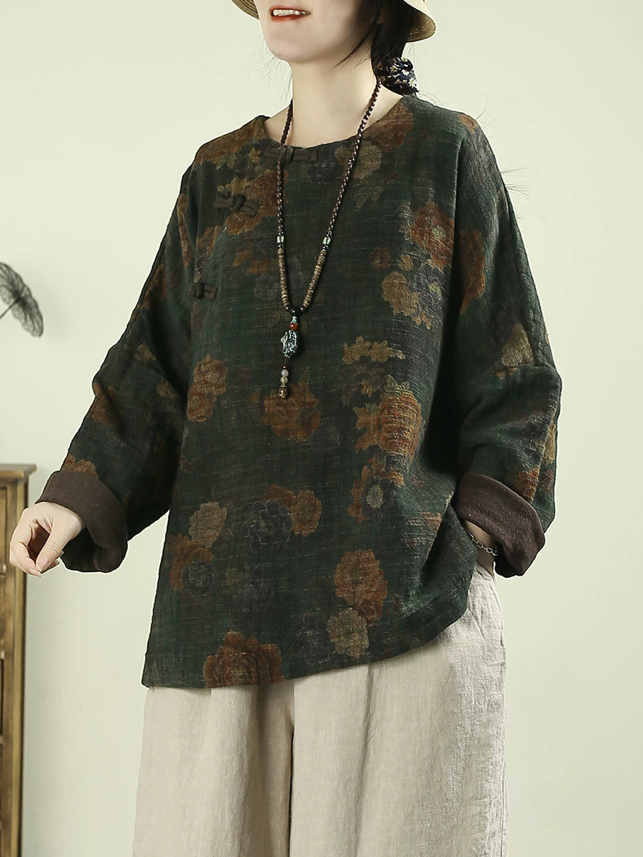 Ženska proljetna vintage cvjetna O-izrez bluza od 100% lana