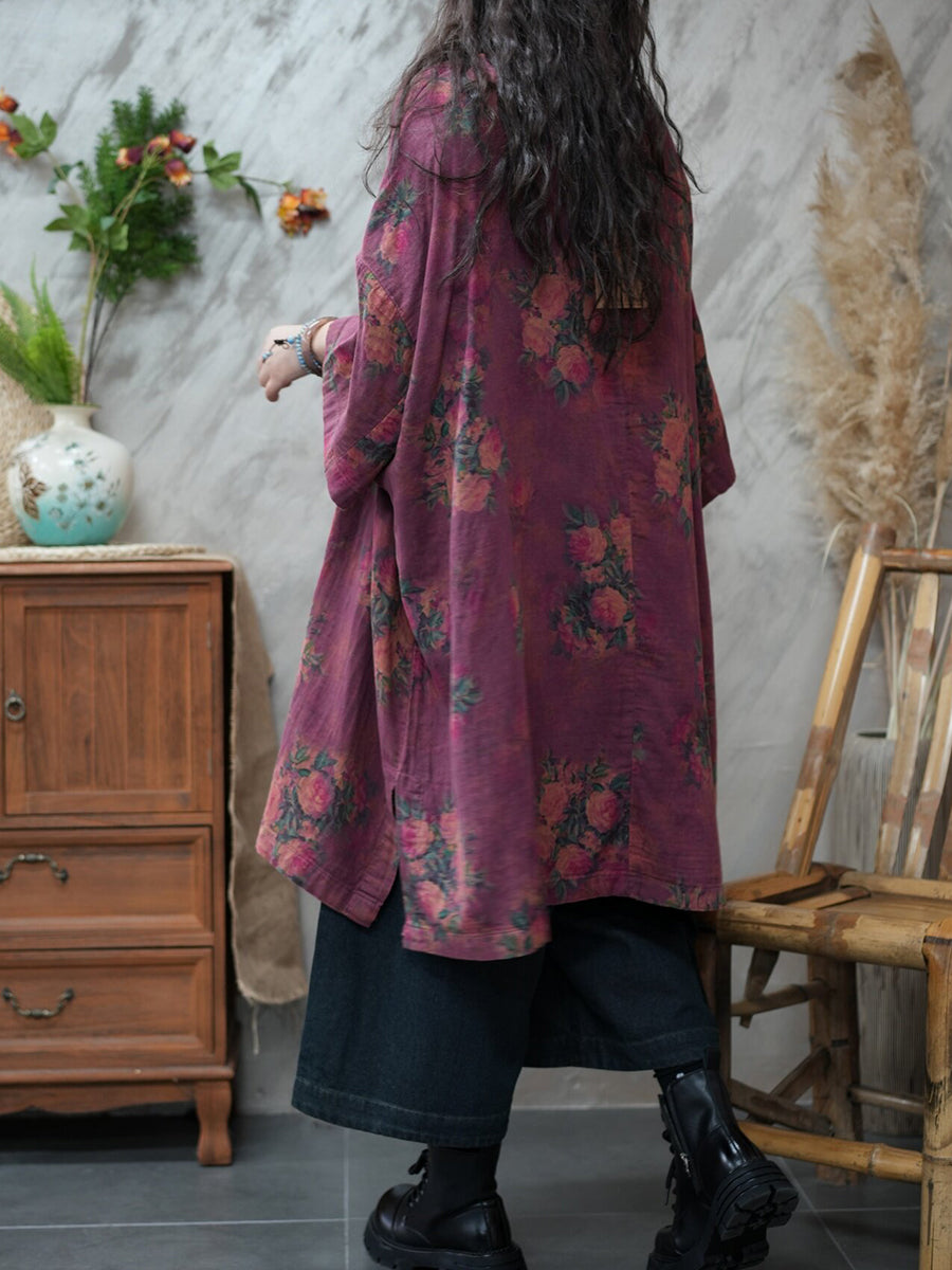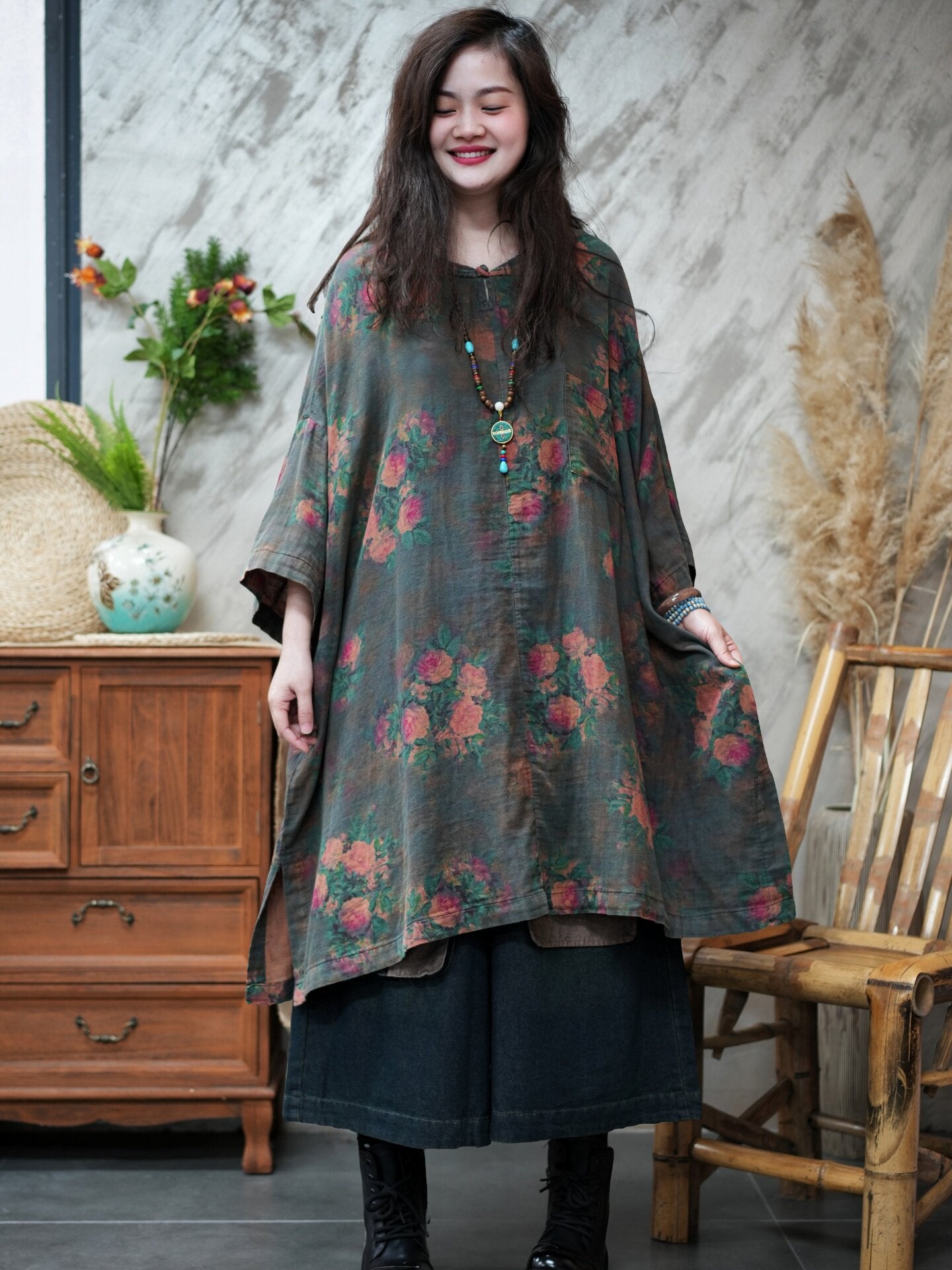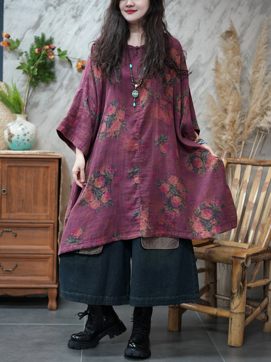 Ženska ljetna vintage cvjetna duga košulja s O-izrezom