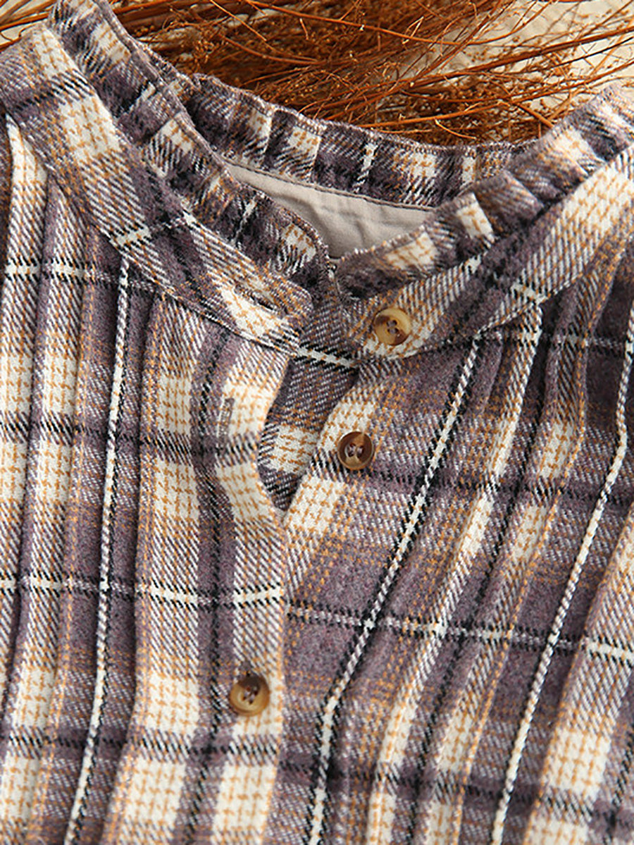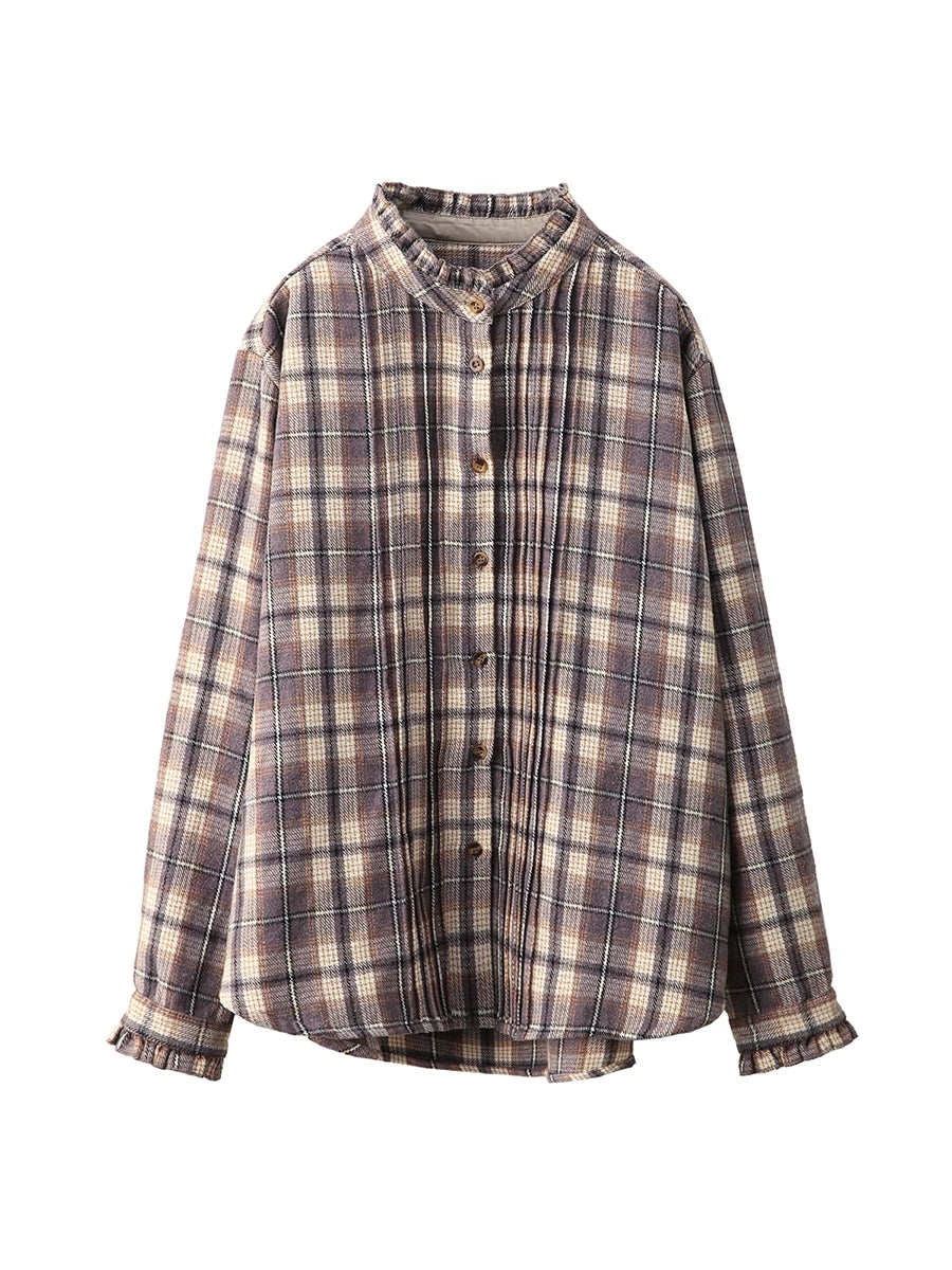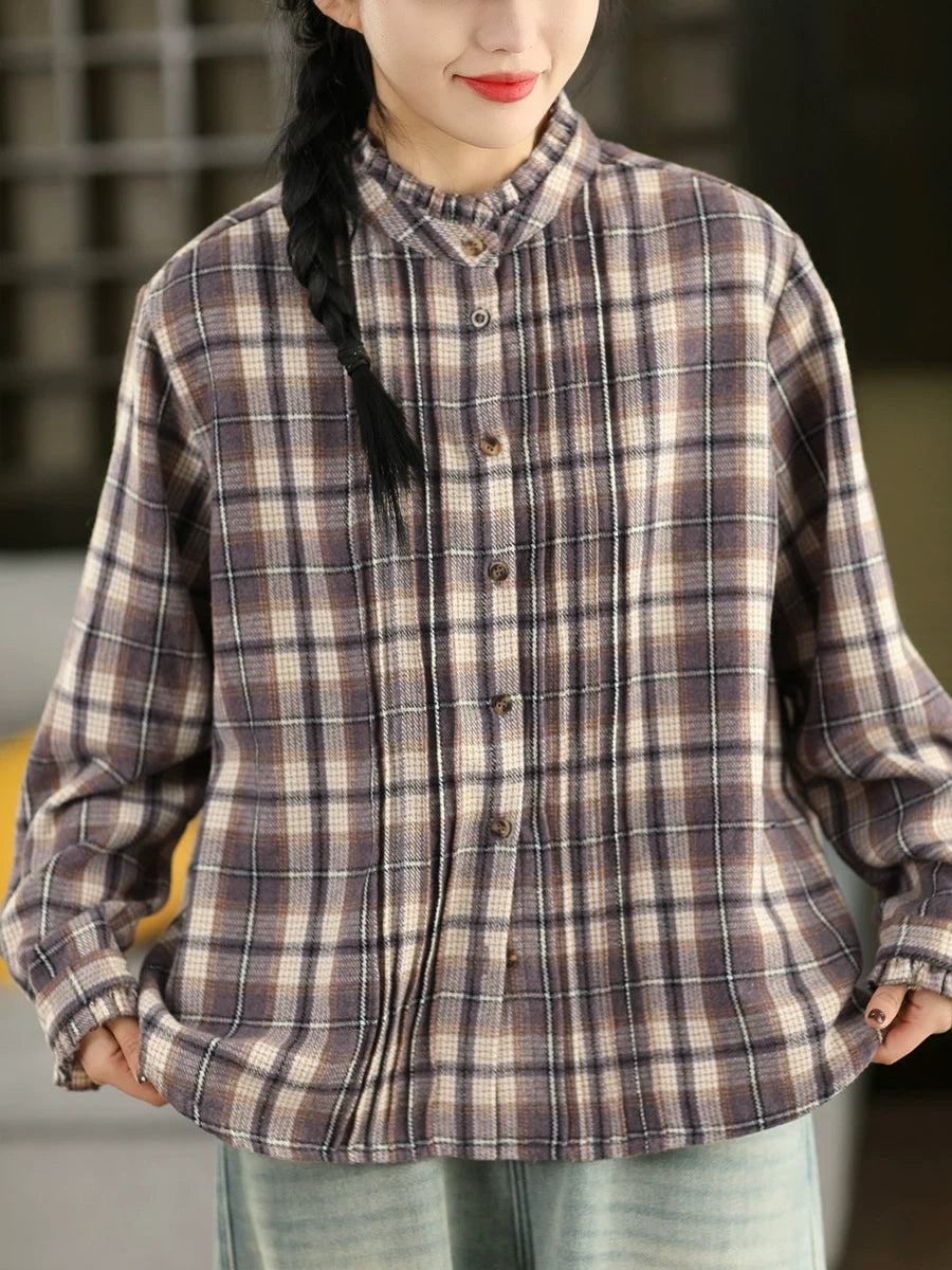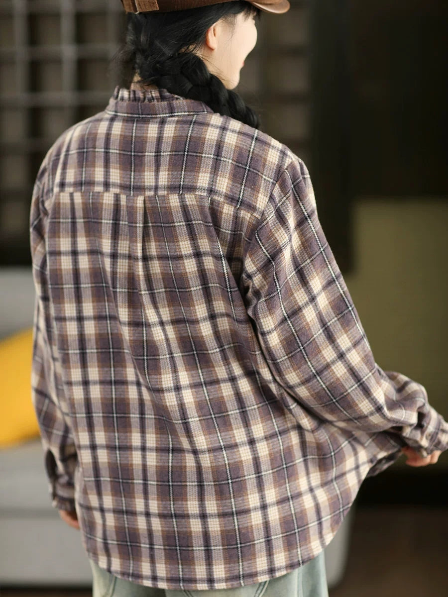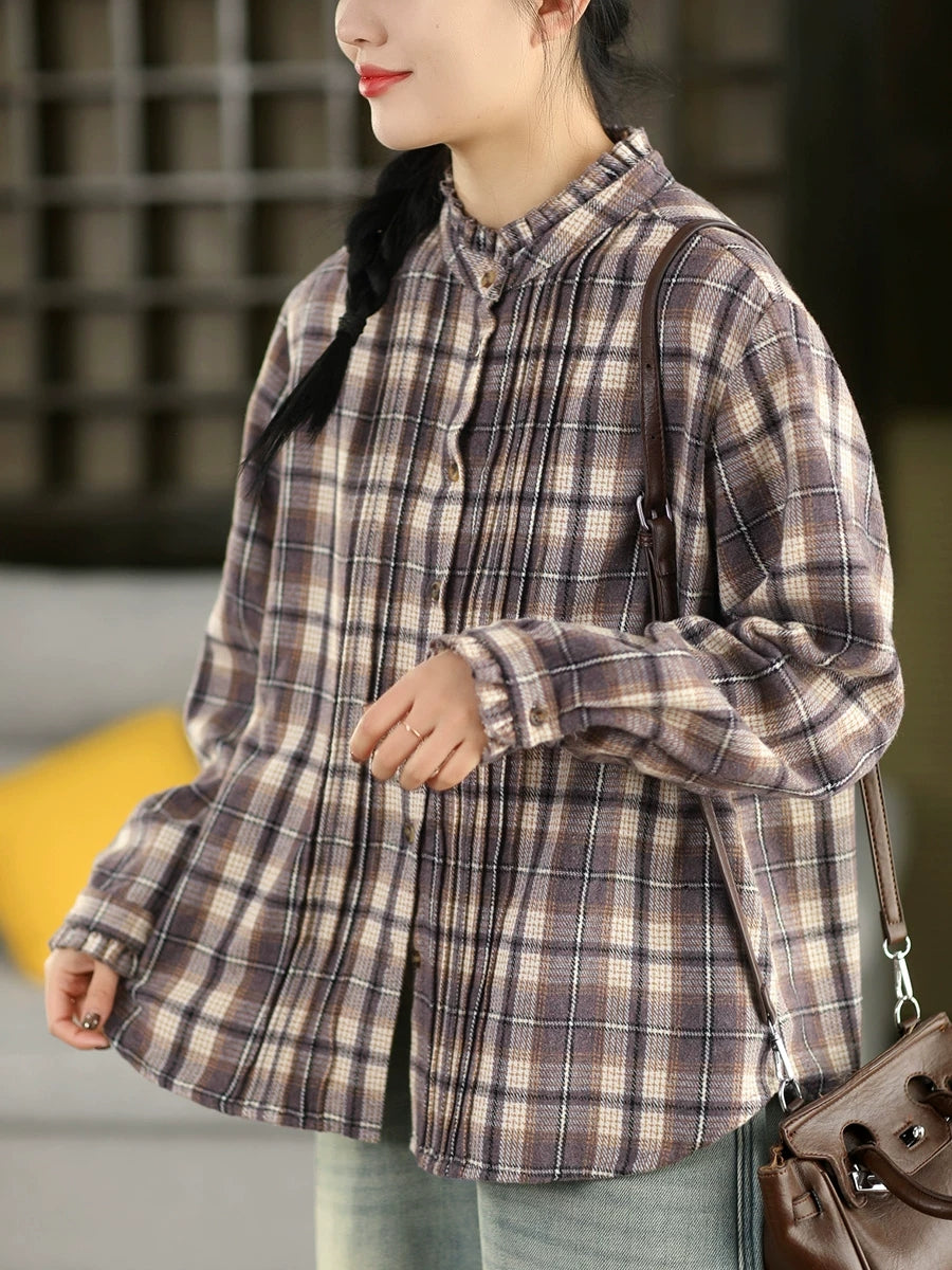 Ženska proljetna vintage karirana košulja s odloženim ovratnikom