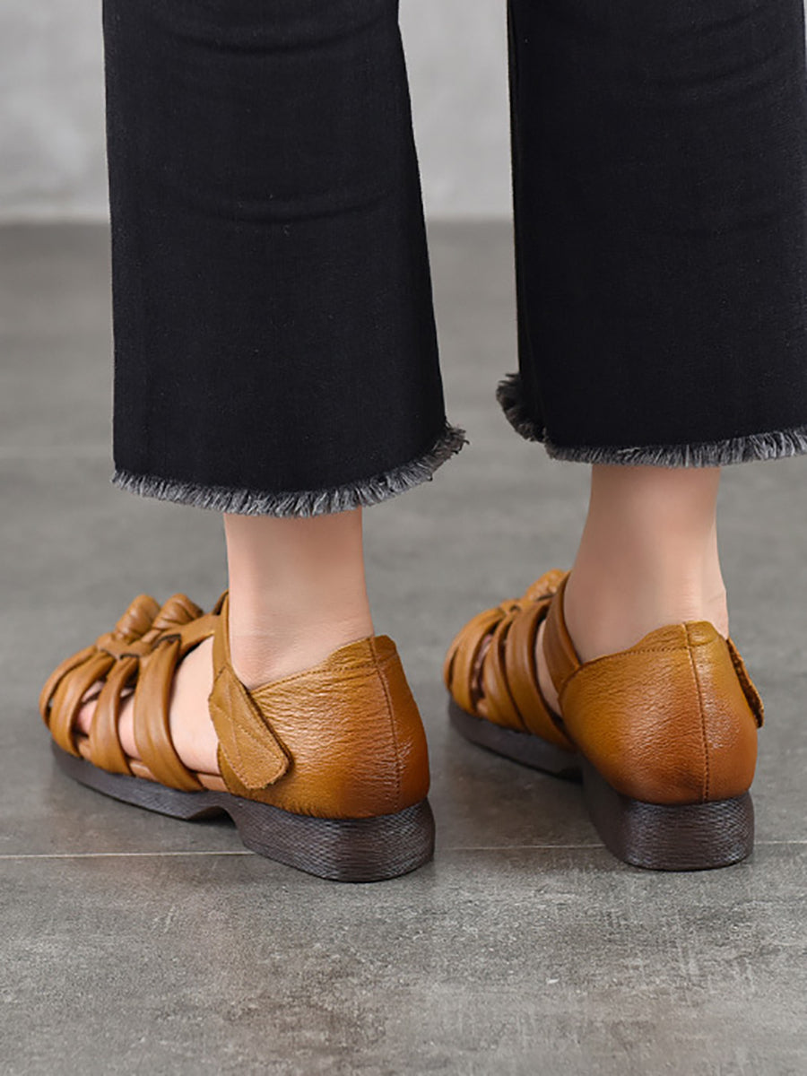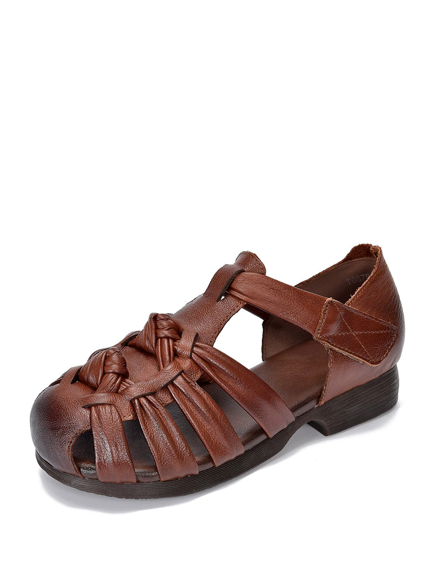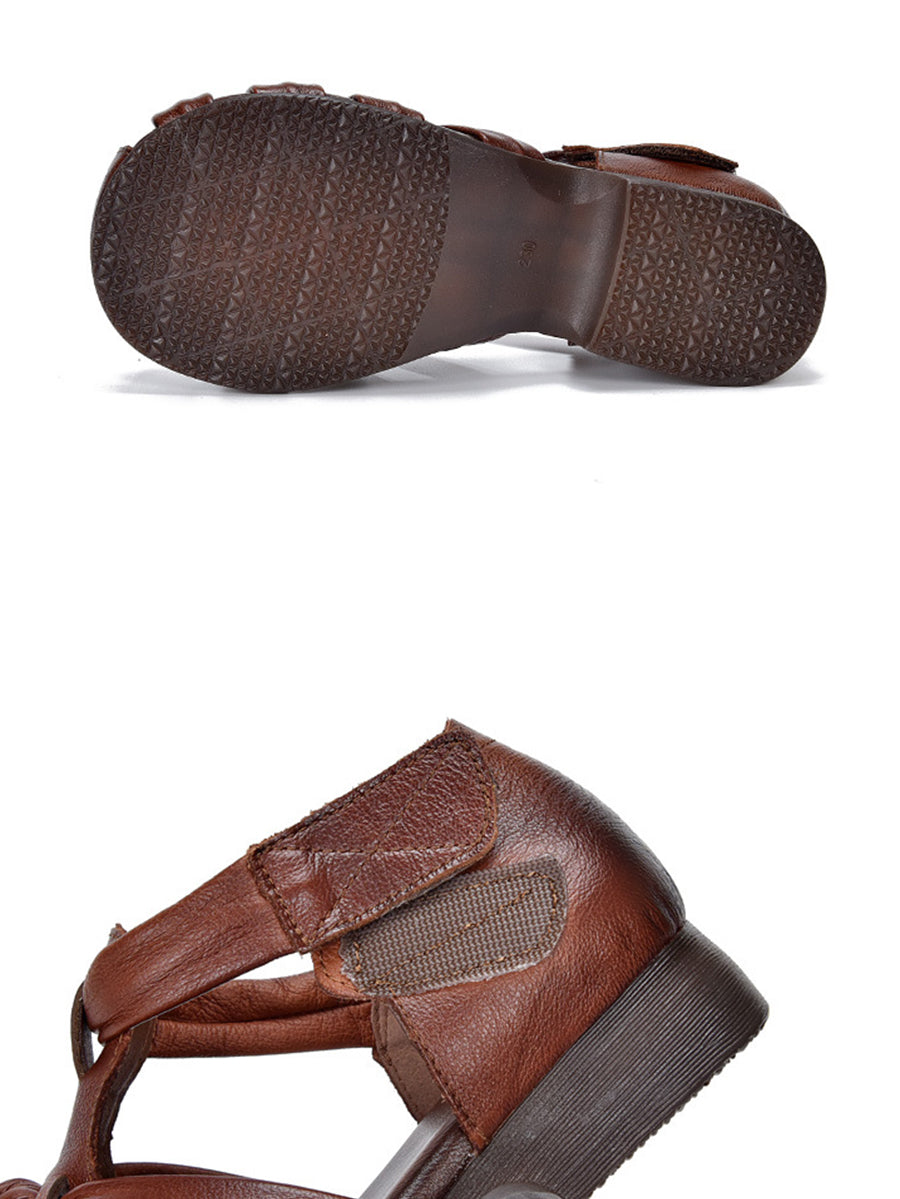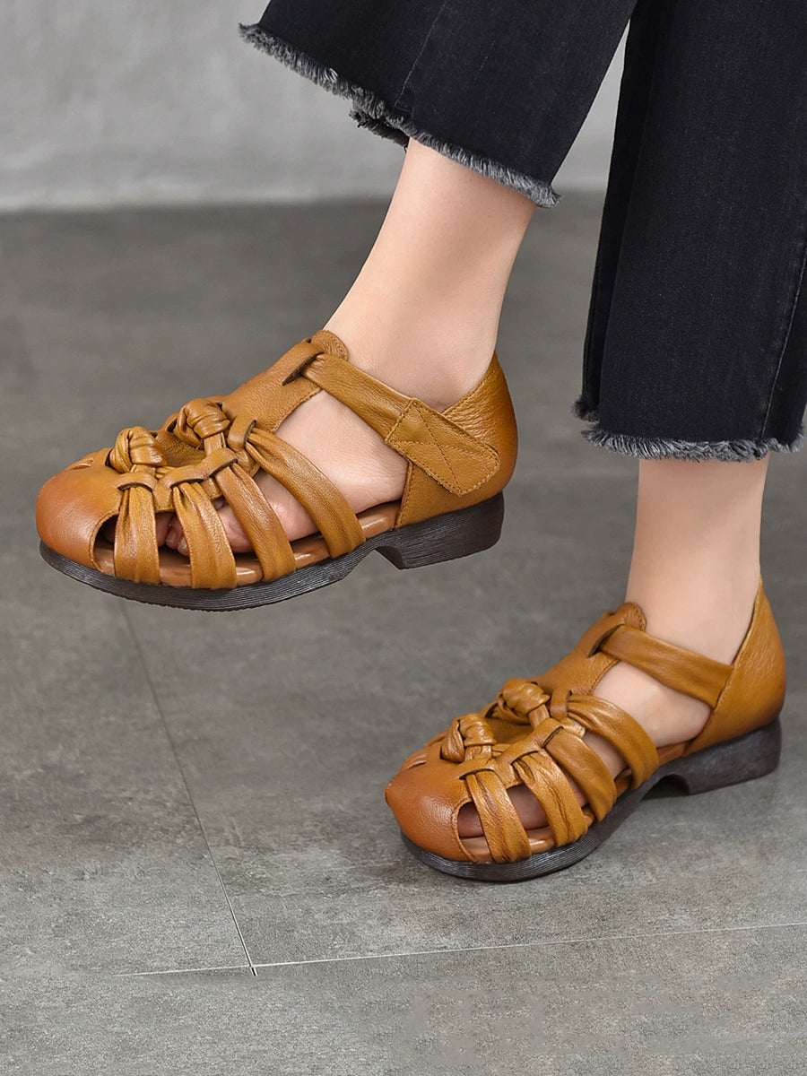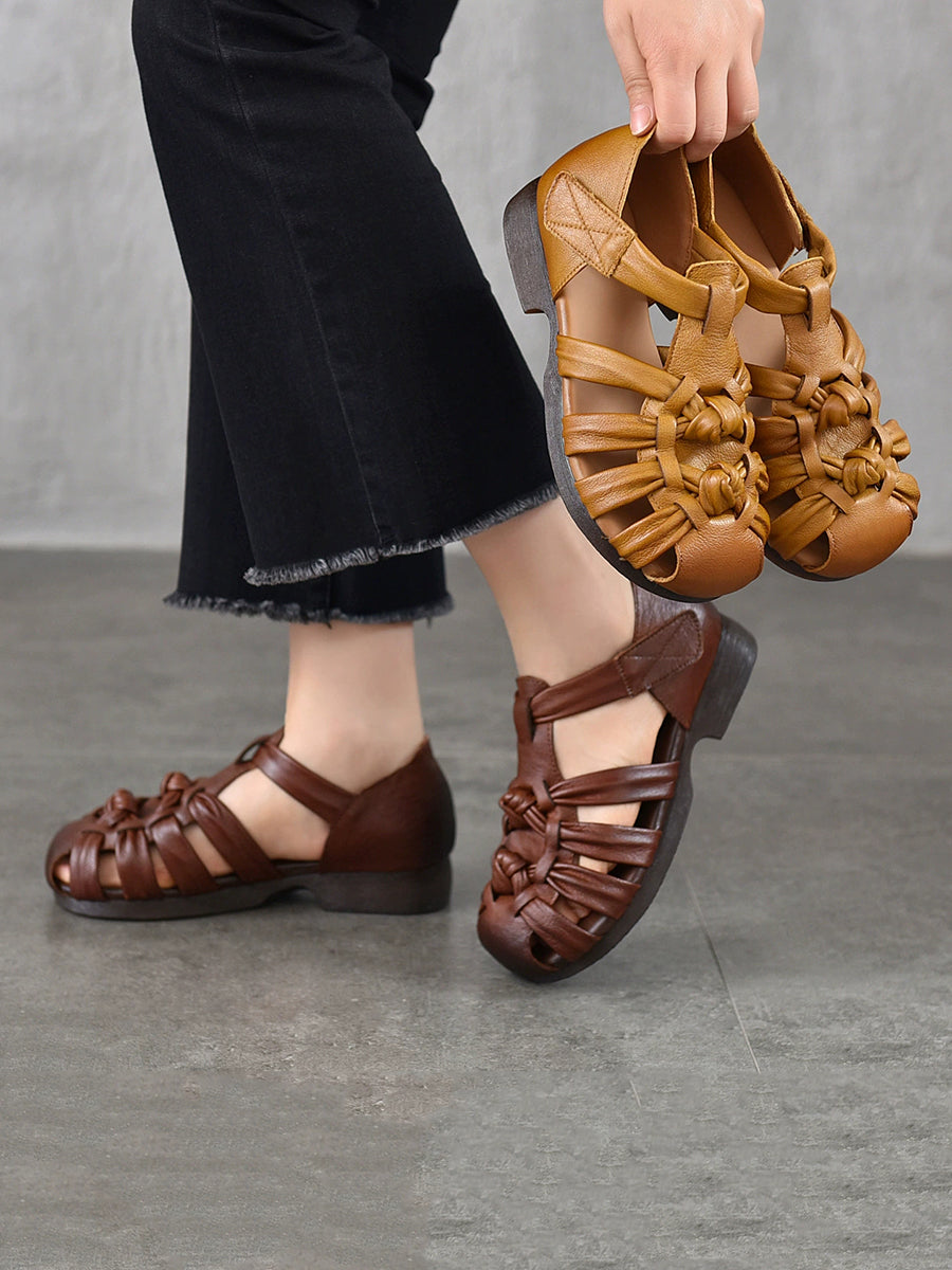 Ženske ljetne sandale s niskom petom od prave kože