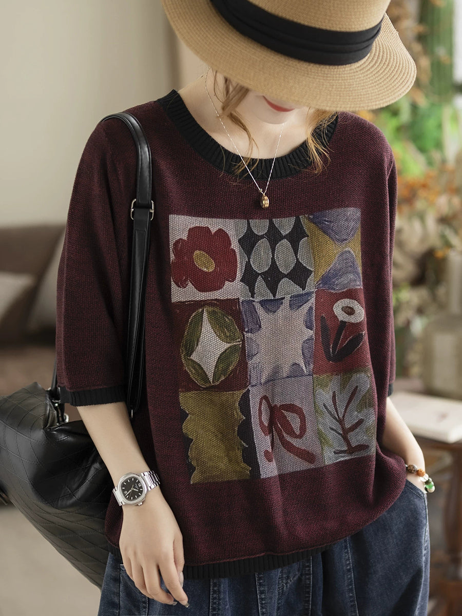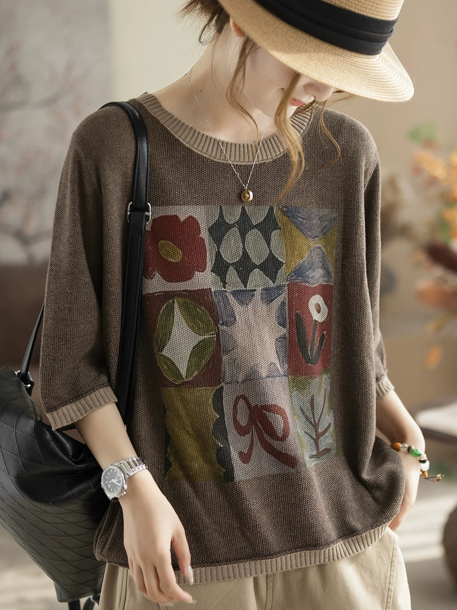 Ženska ljetna umjetnička pamučna pletena bluza s O-izrezom