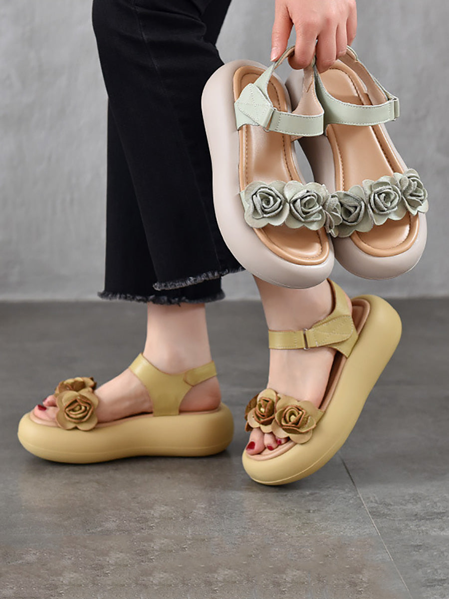 Ženske ljetne umjetničke cvjetne kožne sandale na platformi