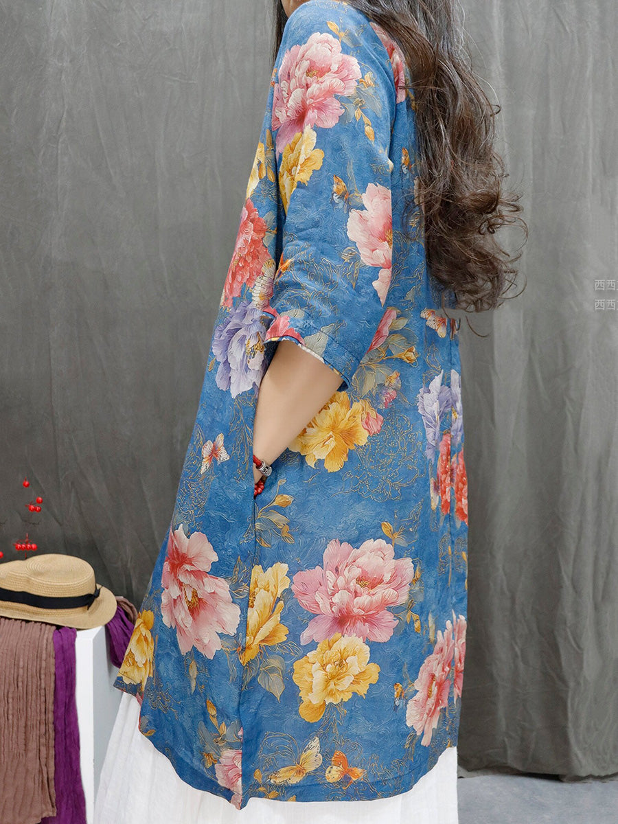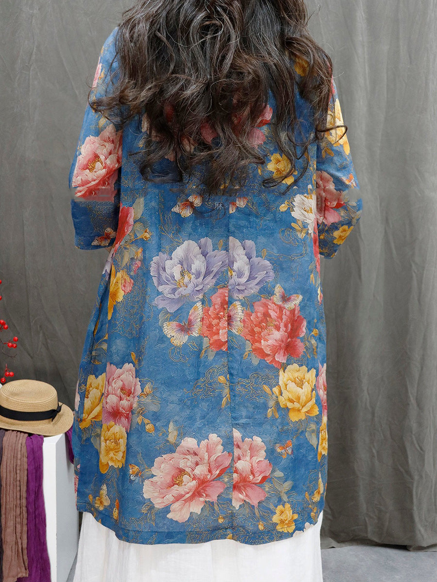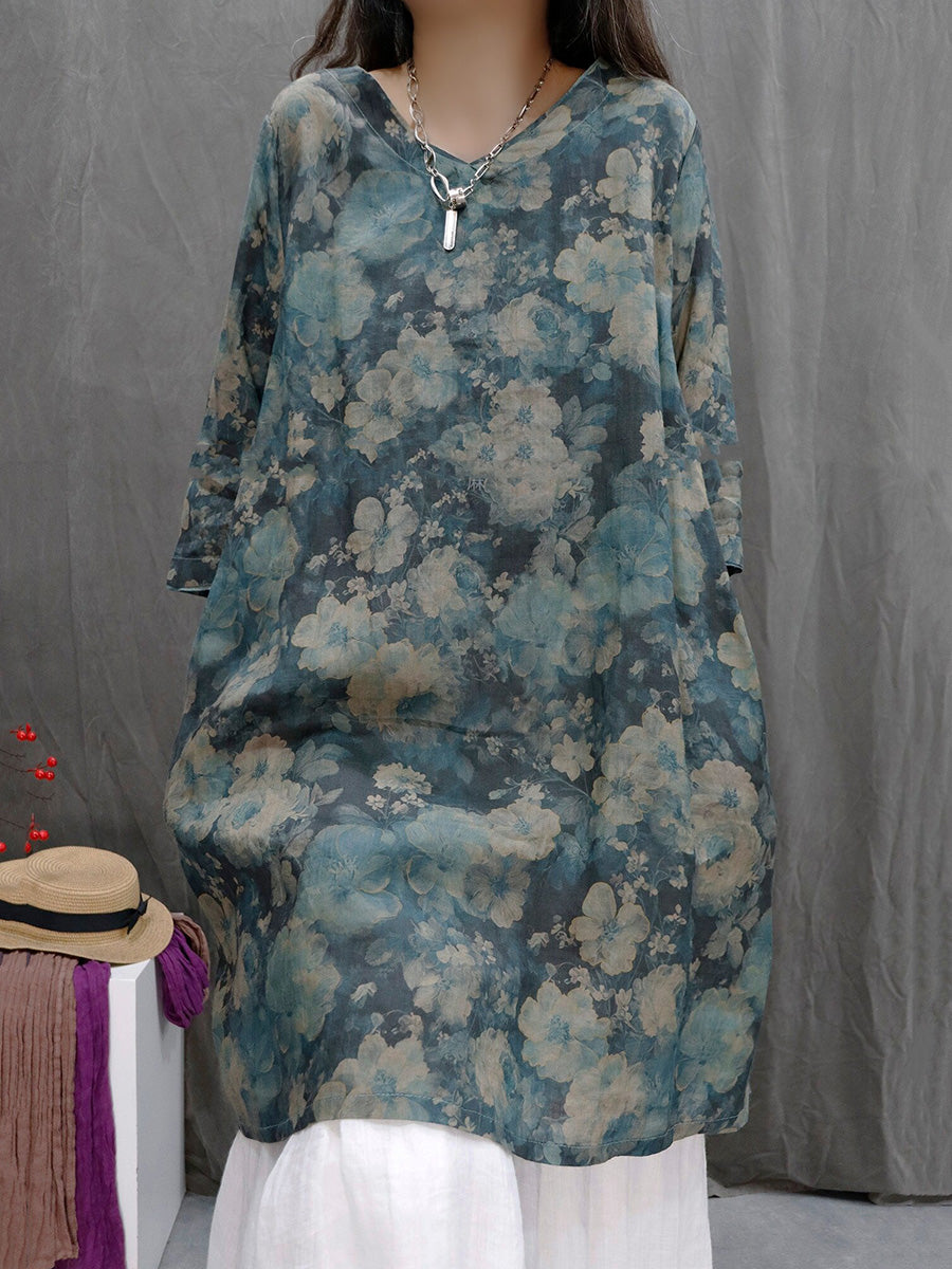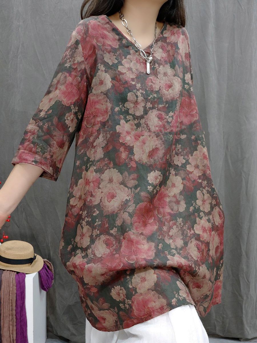 Ženska ljetna umjetnička cvjetna košulja s V-izrezom od 100% ramije
