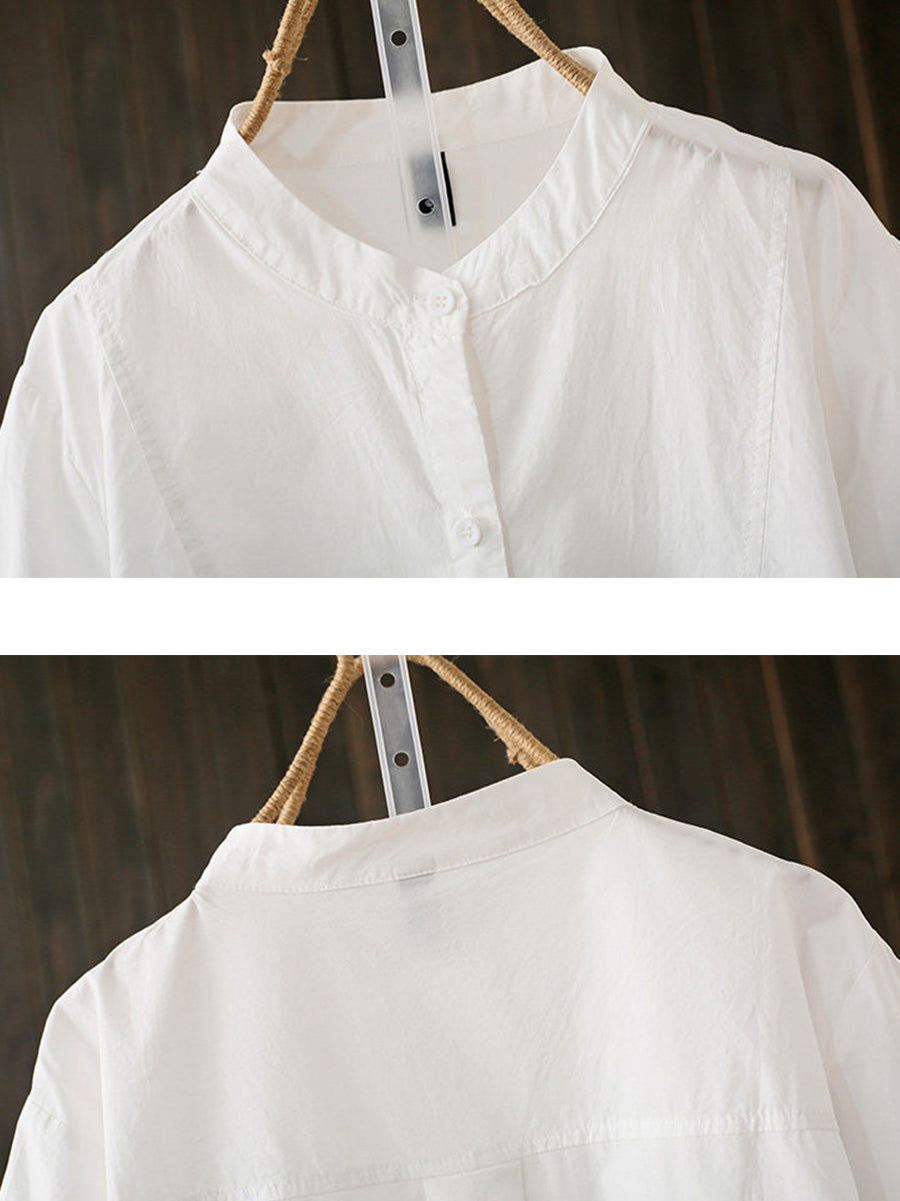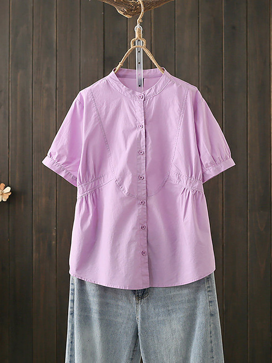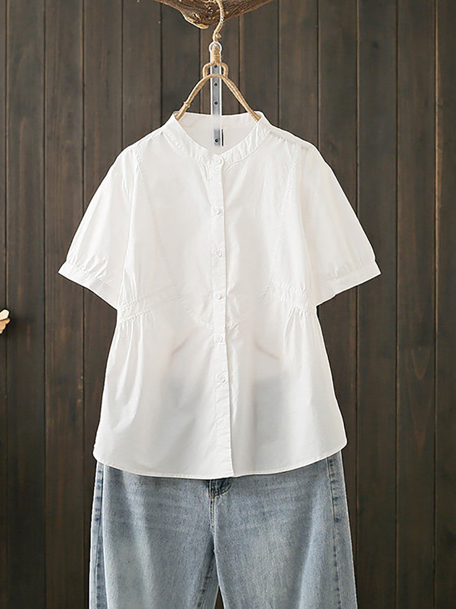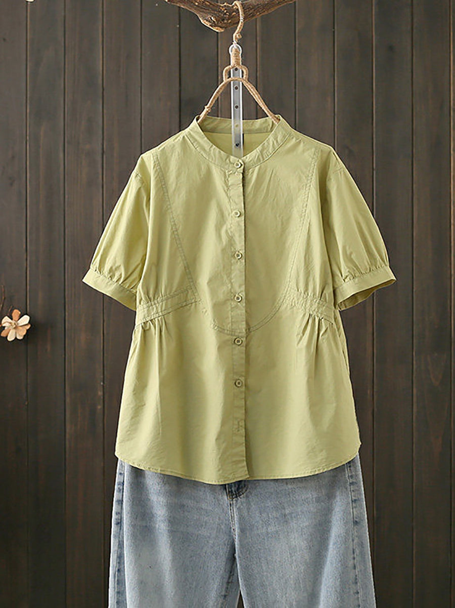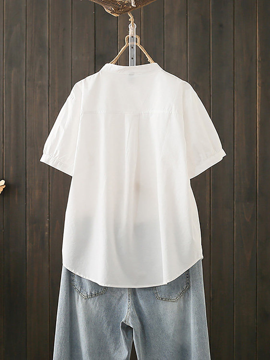 Ženska ljetna pamučna bluza s umjetničkim ovratnikom i stojećim ovratnikom