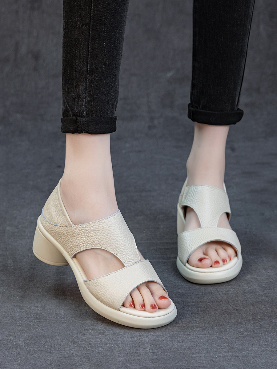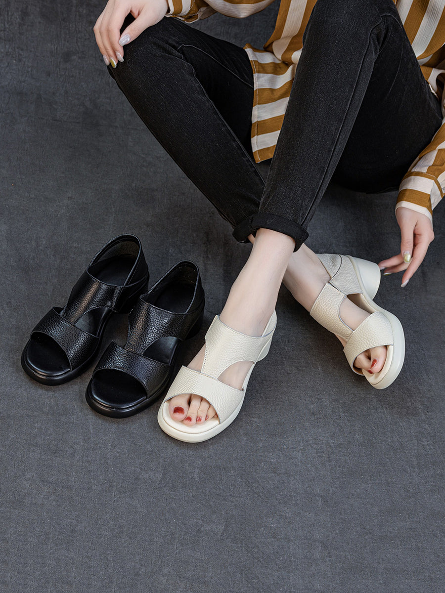 Ženske ljetne ležerne sandale od prave kože na platformi