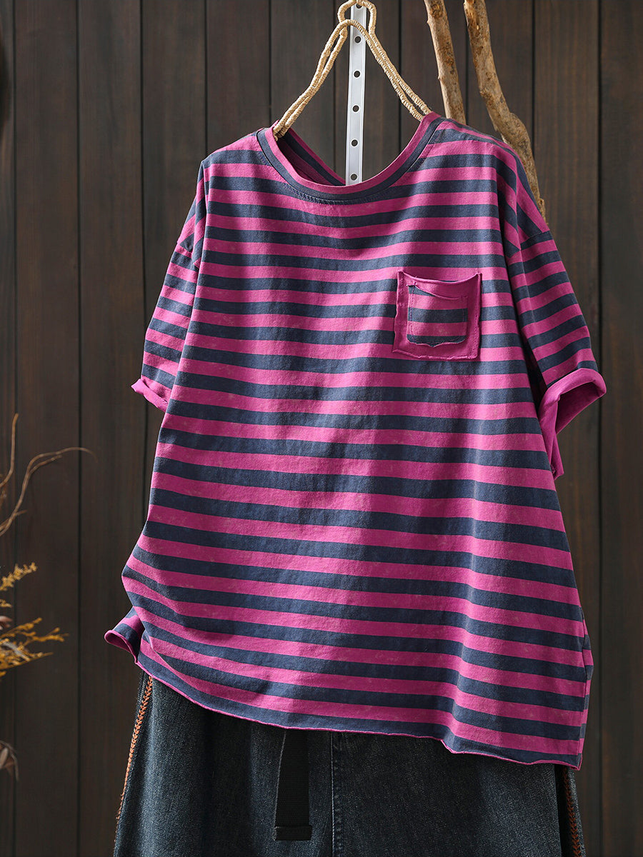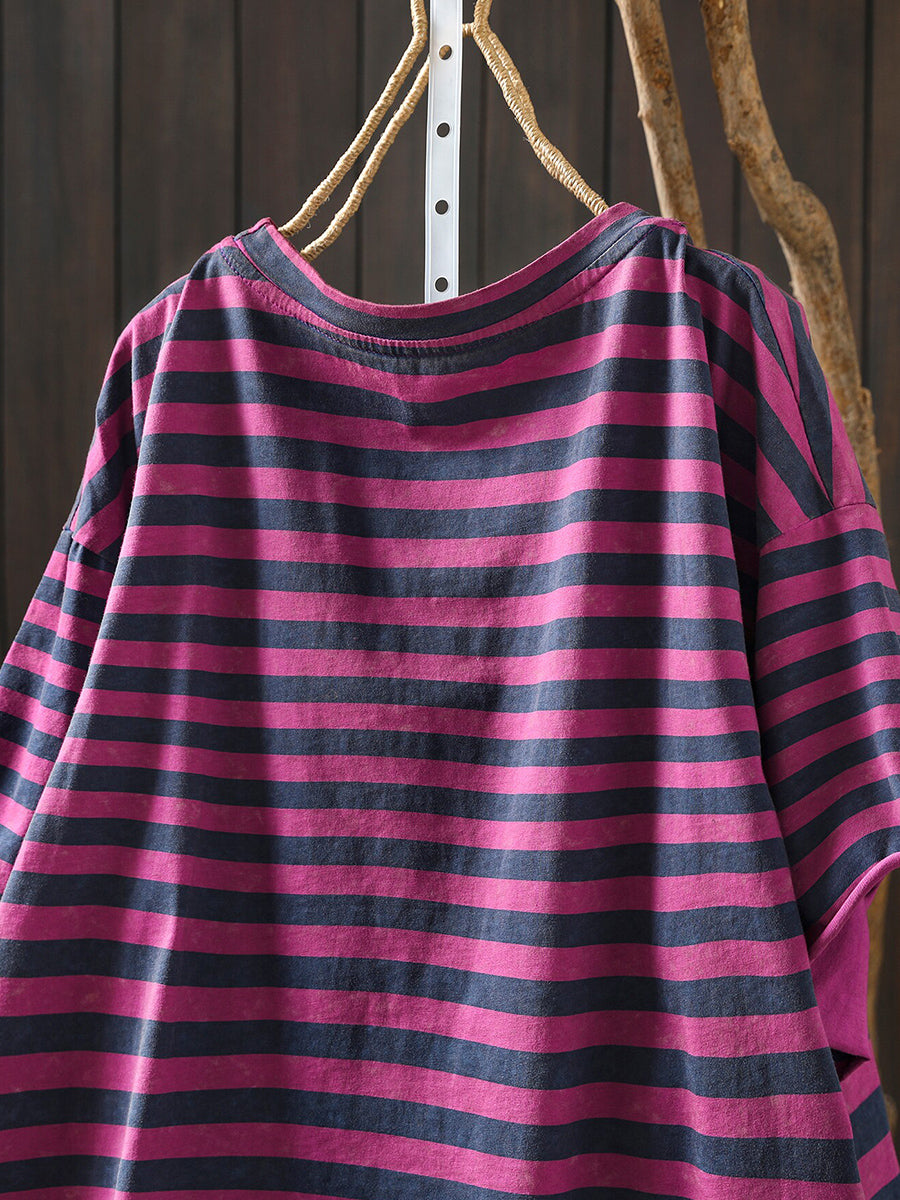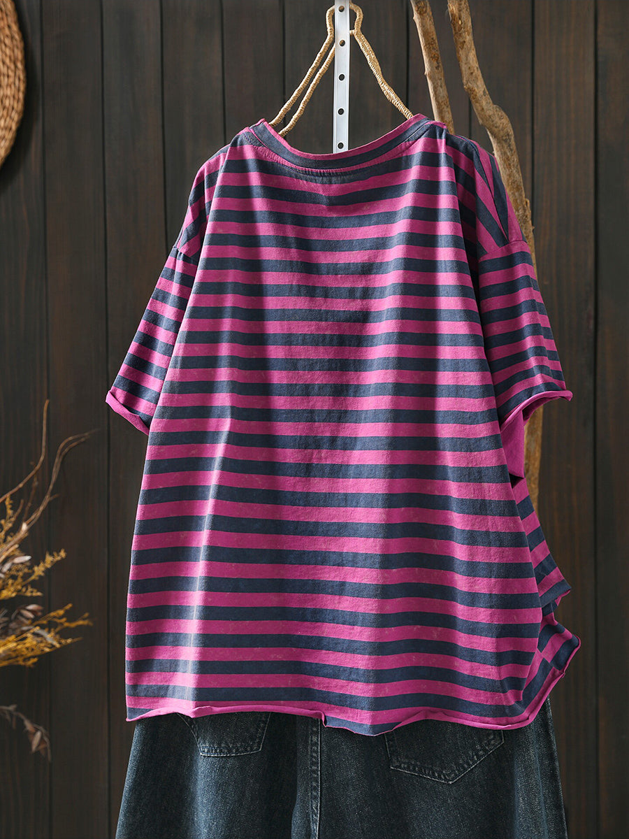 Ženska ljetna ležerna prugasta majica s O-izrezom