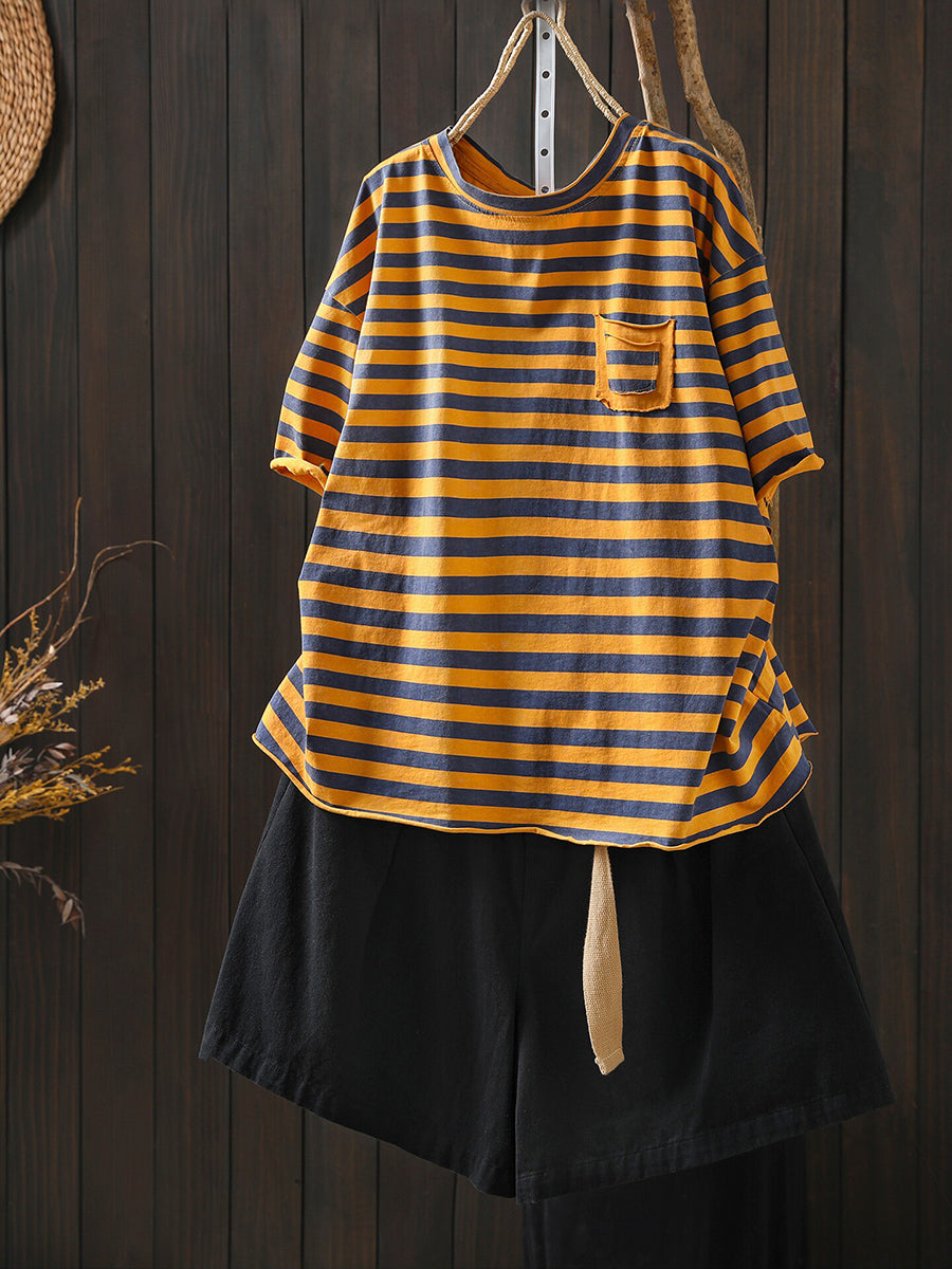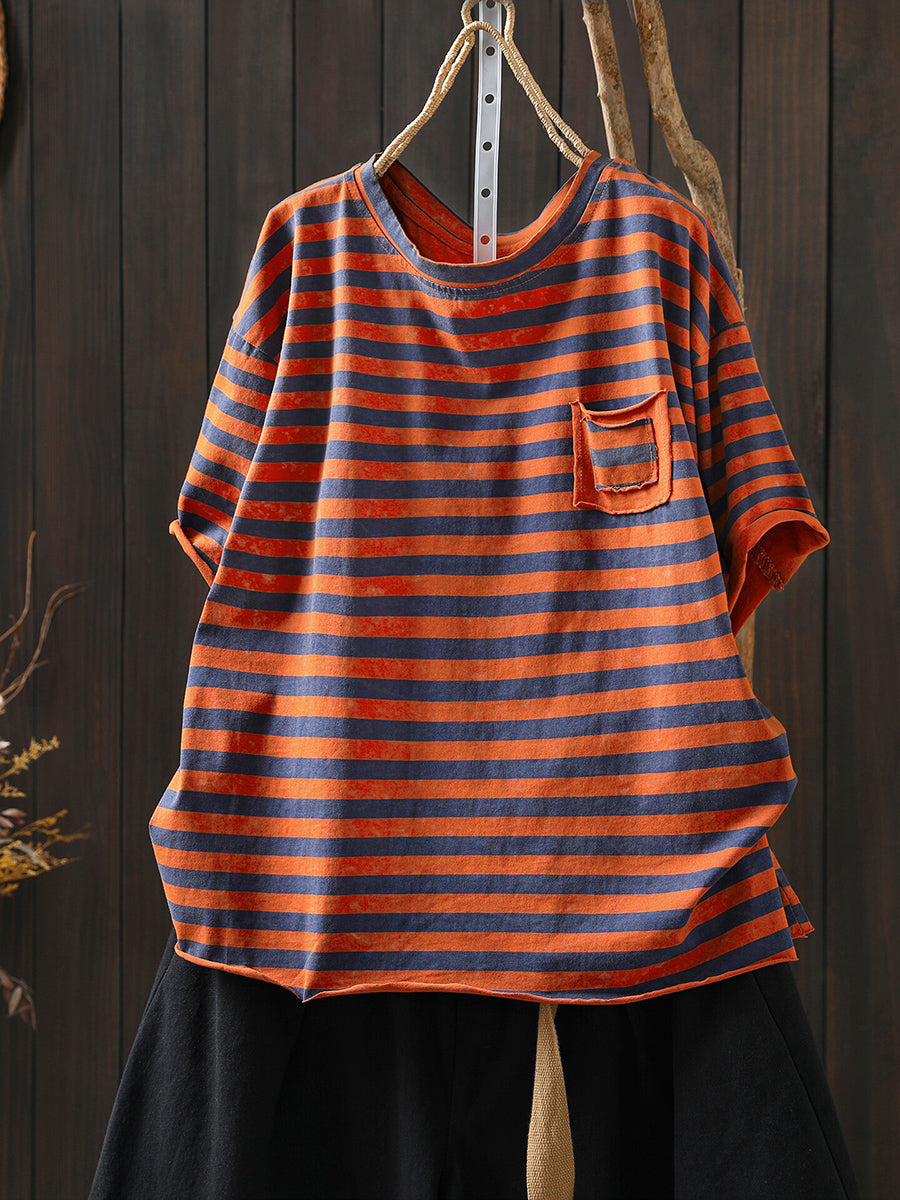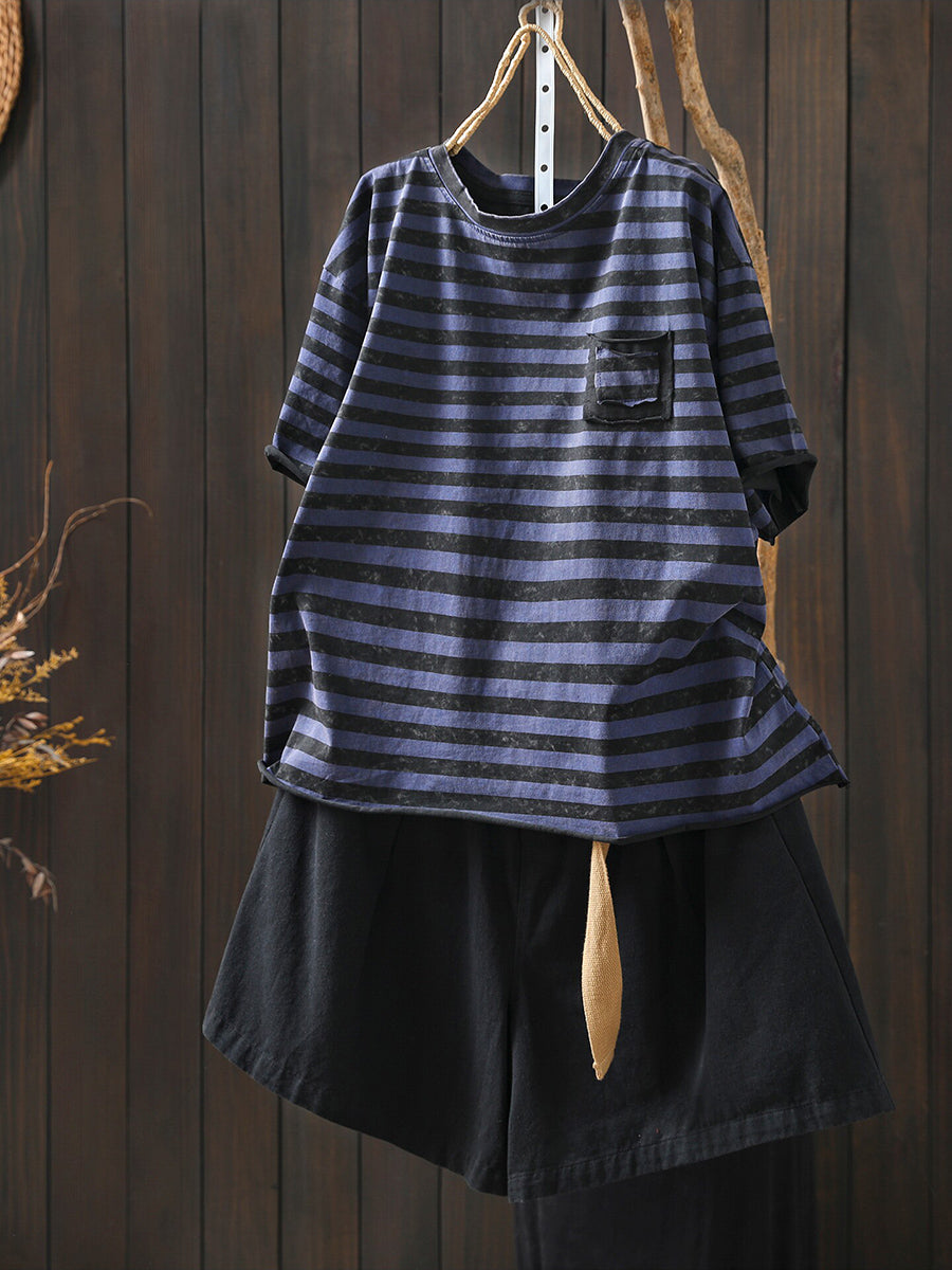 Ženska ljetna ležerna prugasta majica s O-izrezom