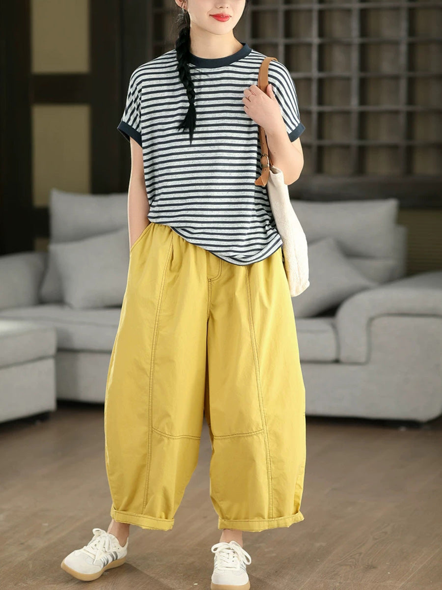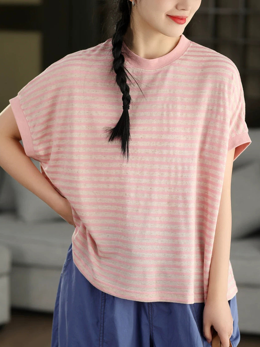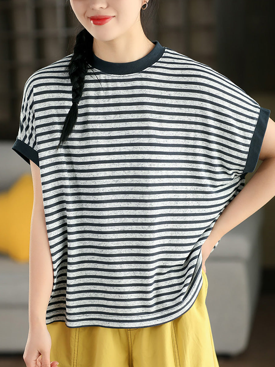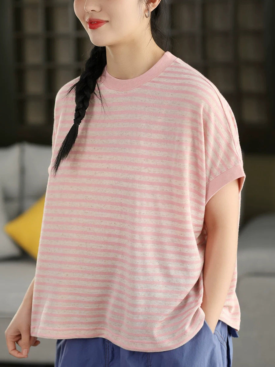 Ženska ljetna ležerna prugasta majica s O-izrezom