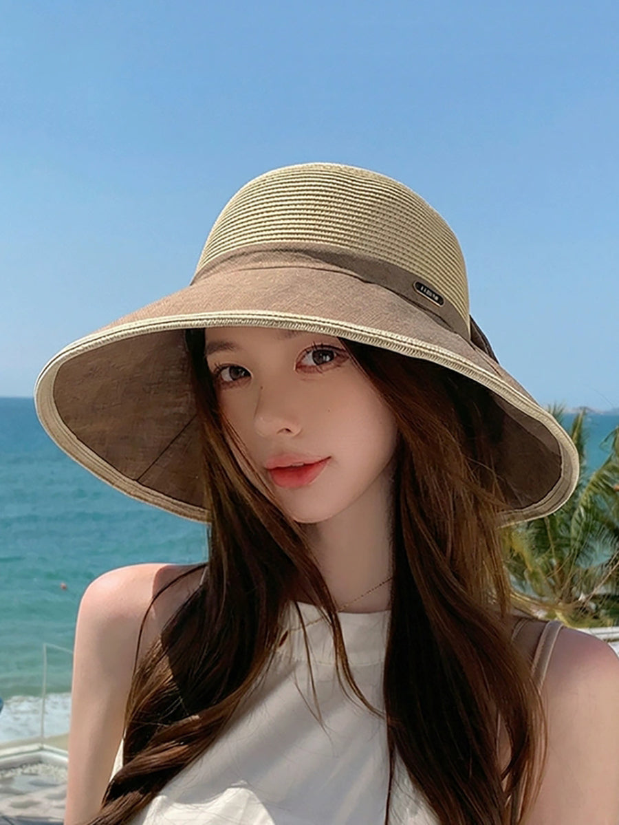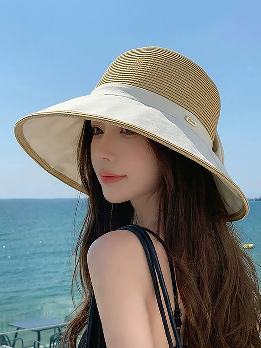 Ženski ljetni šešir s blokovima boja i mašnom, otporan na sunce