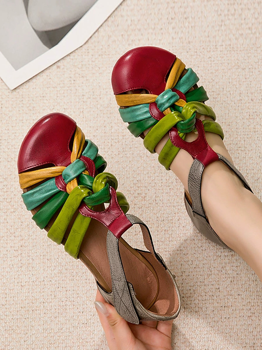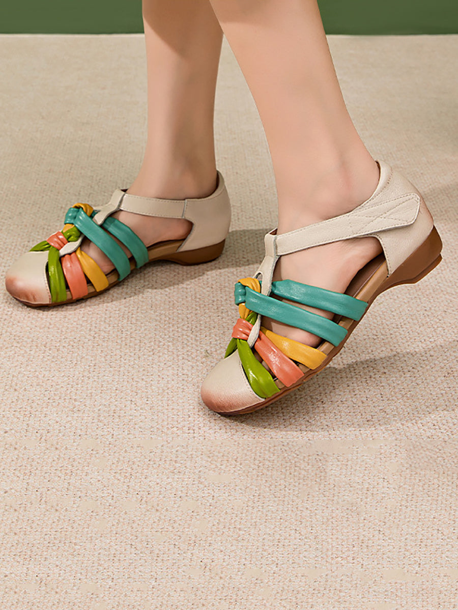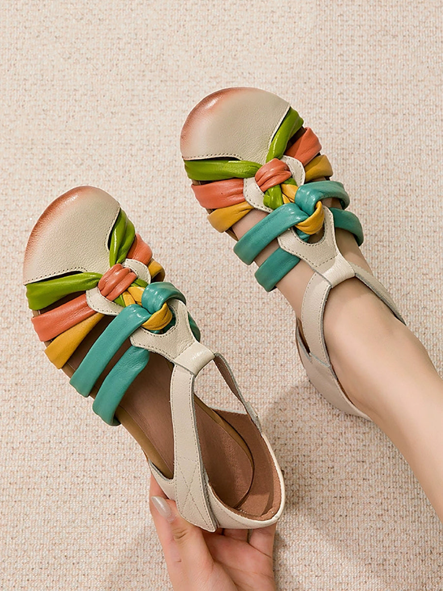 Ženske ljetne sandale od prave kože u boji