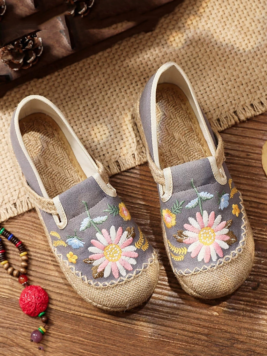 Ženske ljetne ravne platnene cipele s vezom i cvijećem
