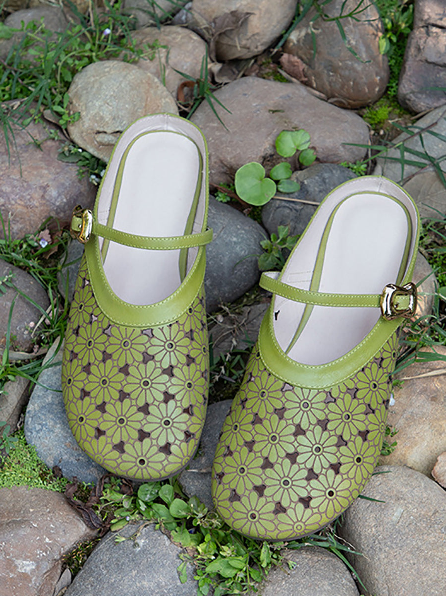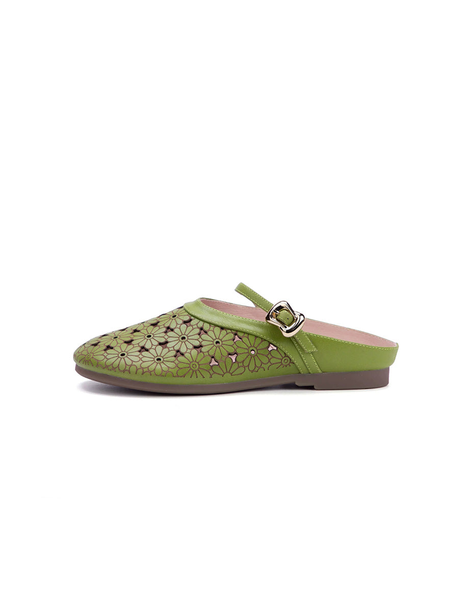 Ženske ljetne papuče od prave kože s izdubljenim rubom