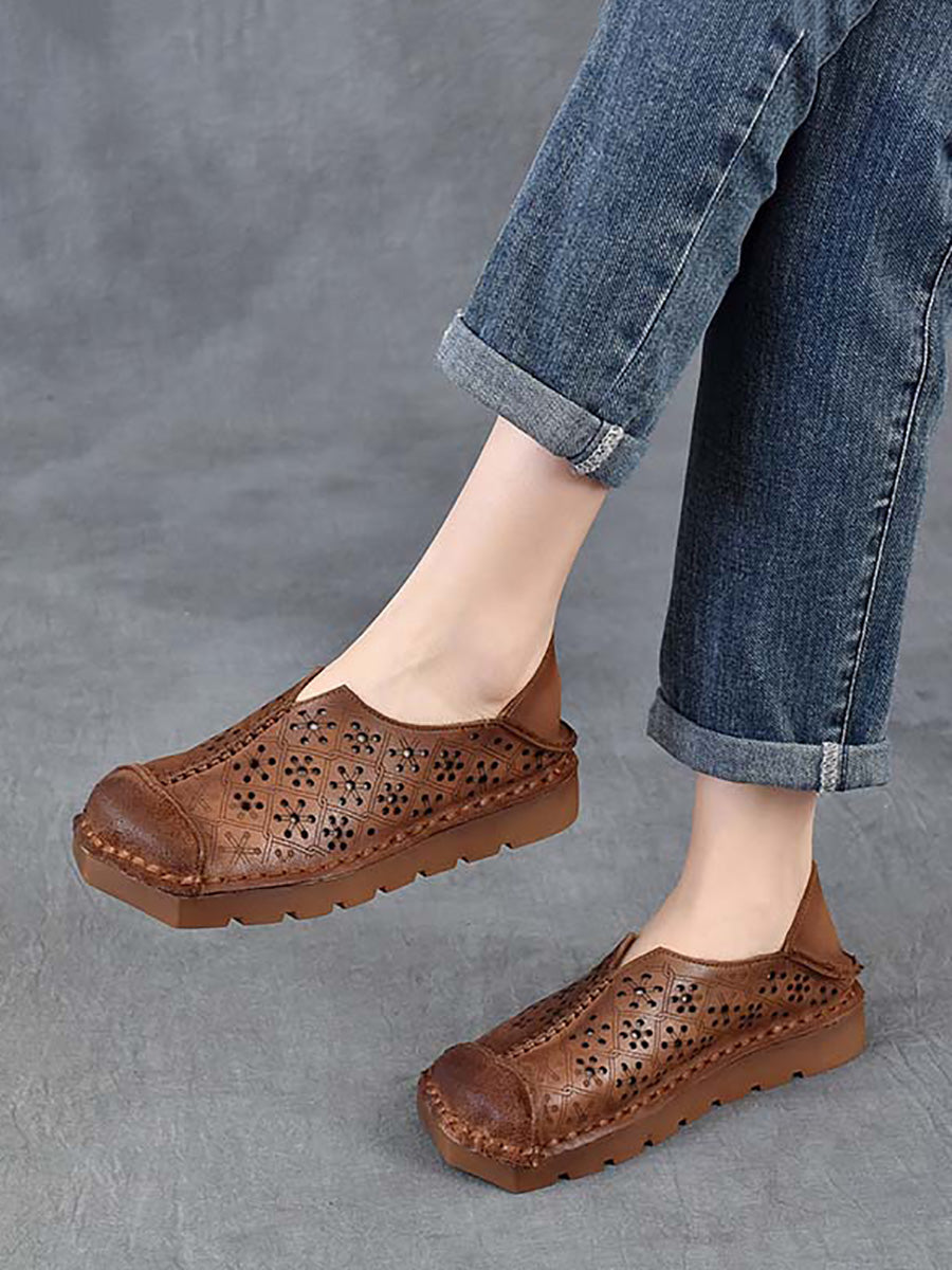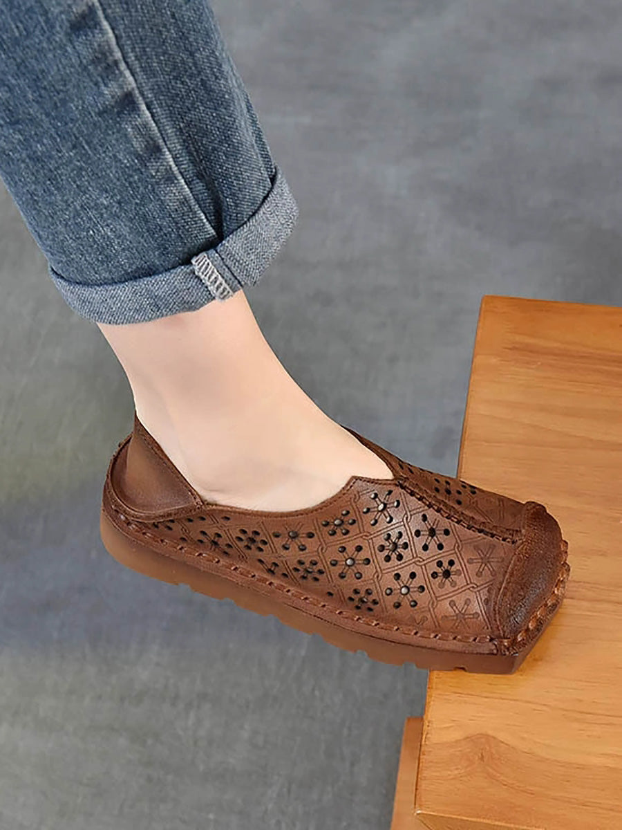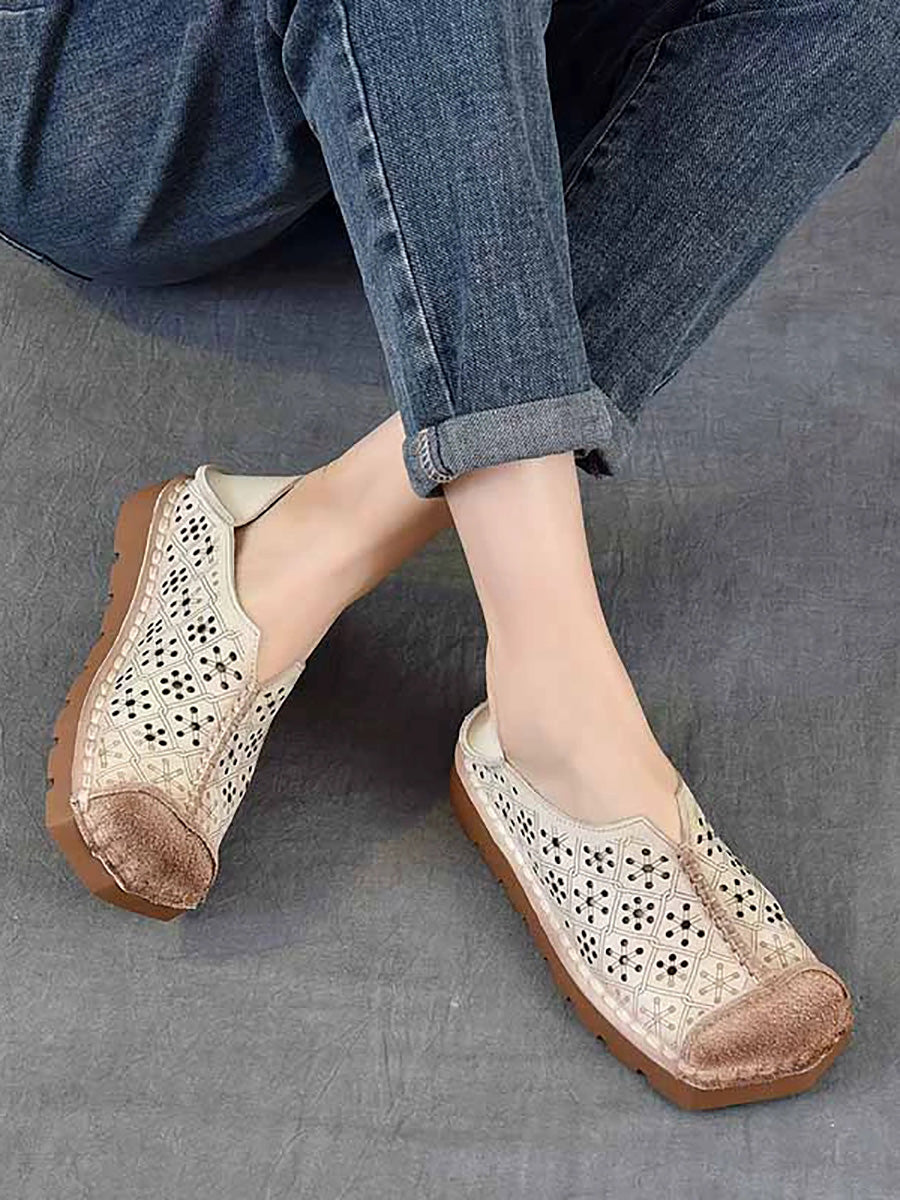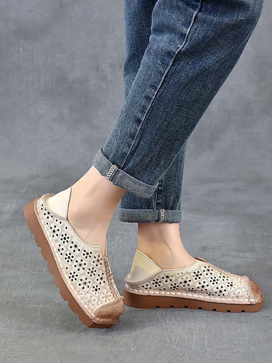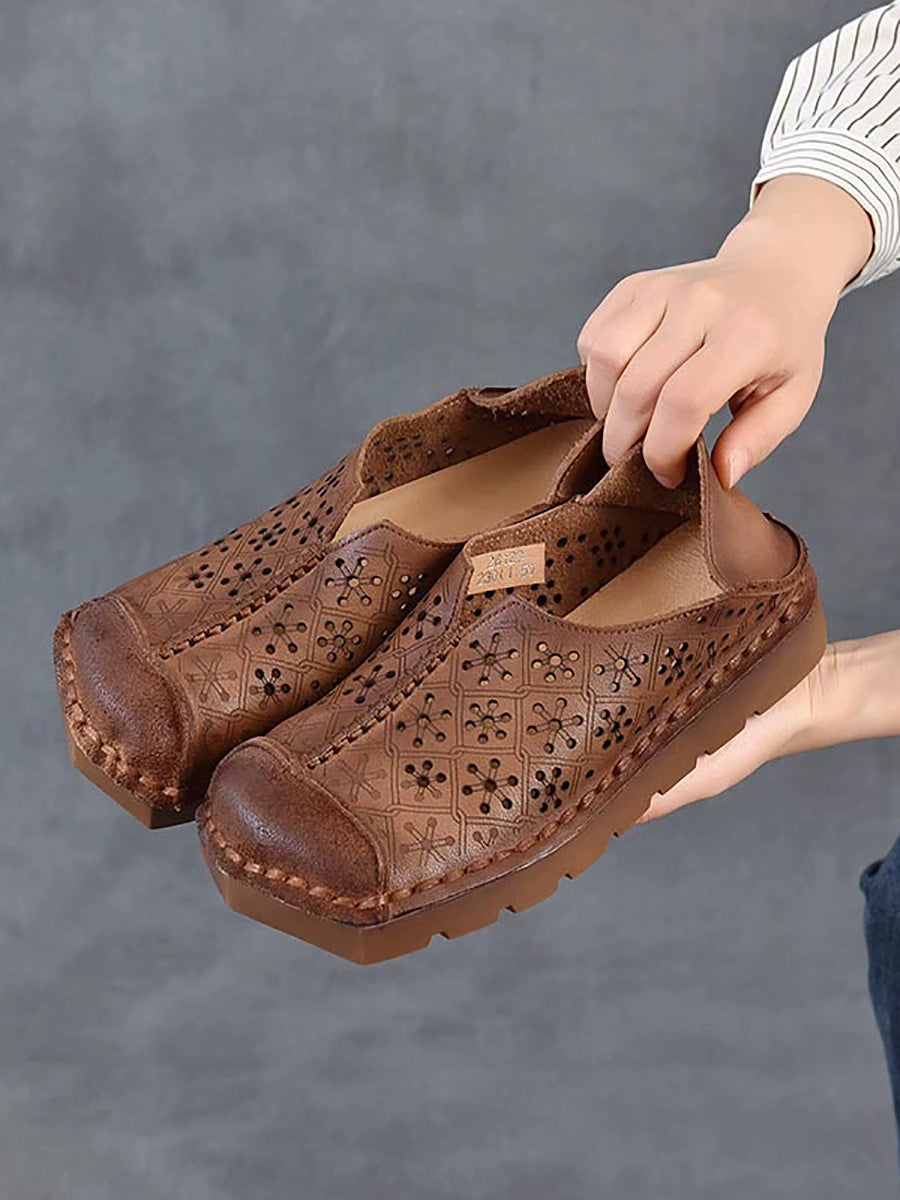 Ženske ljetne cipele od prave kože s izdubljenim rubovima
