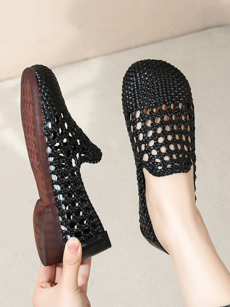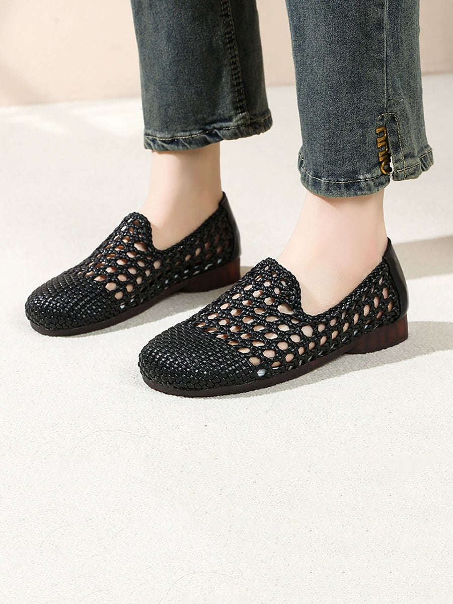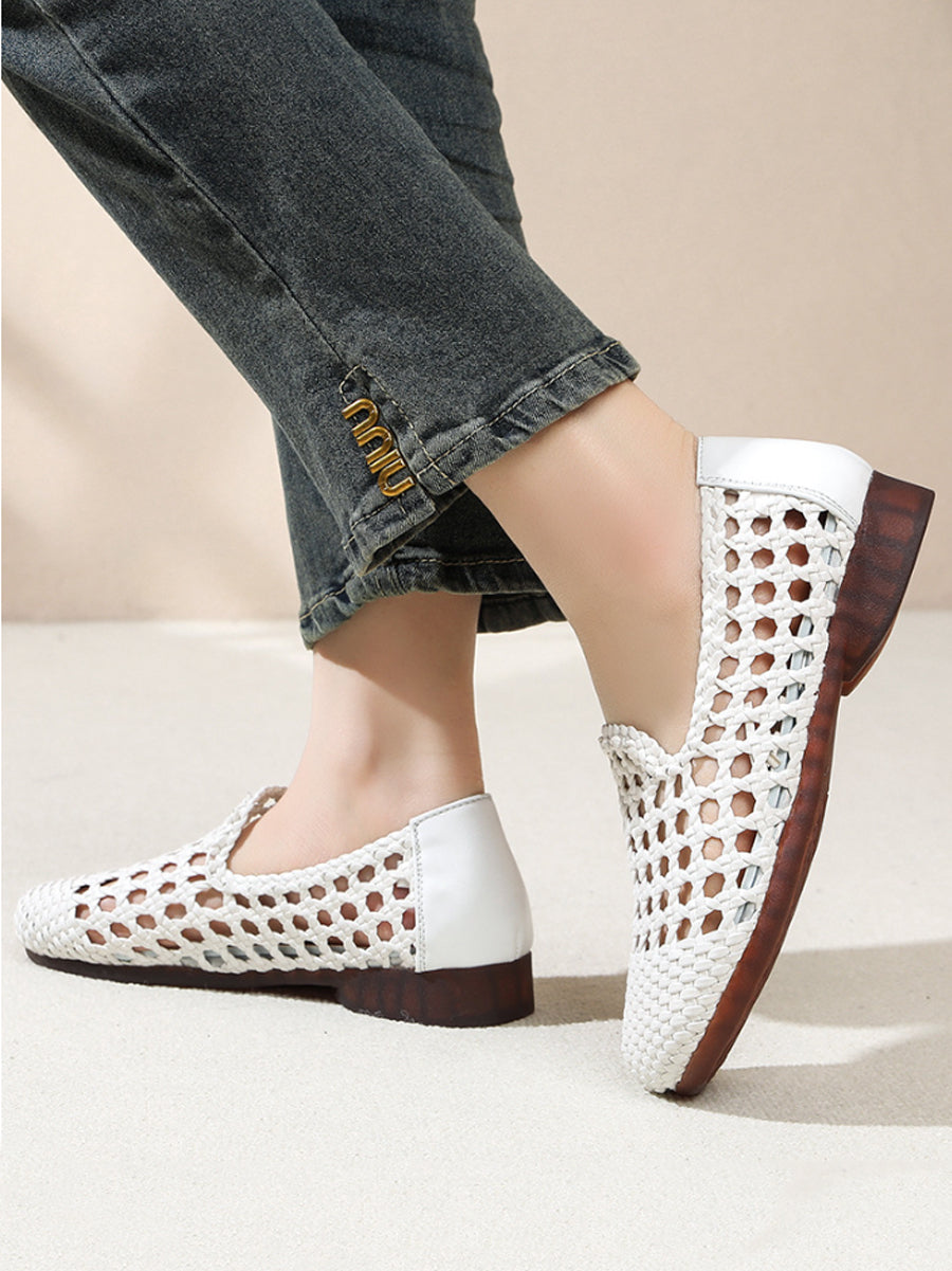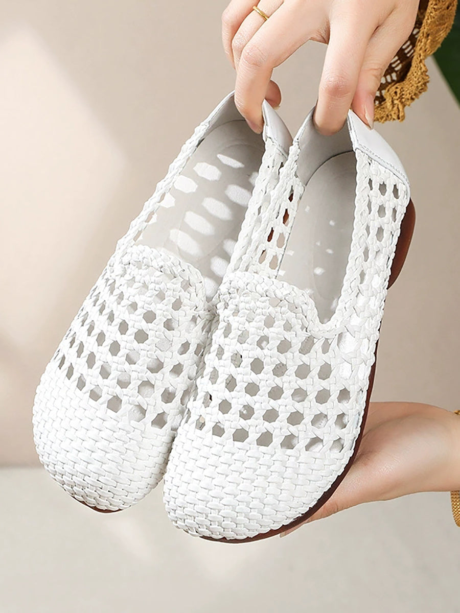 Ženske ljetne sandale s rupičastom kožnom tkaninom i niskom petom