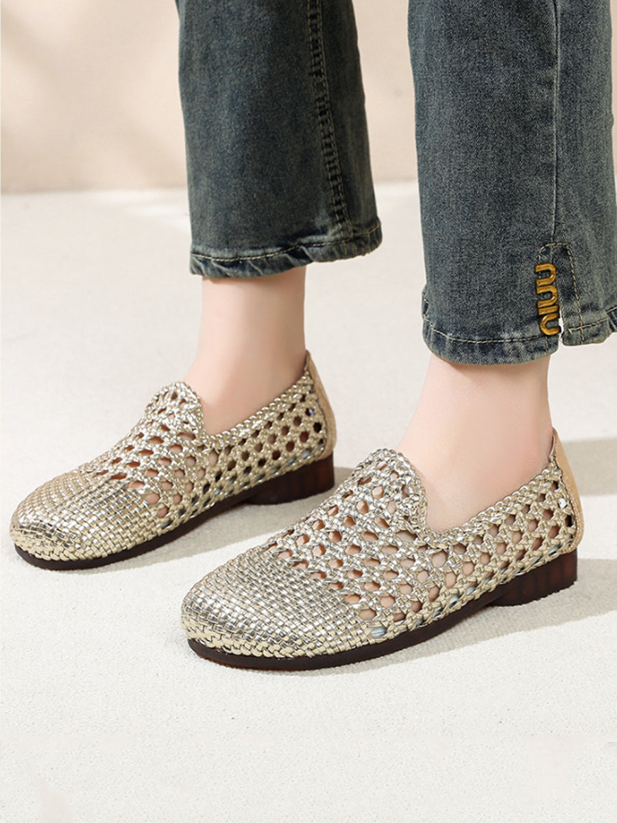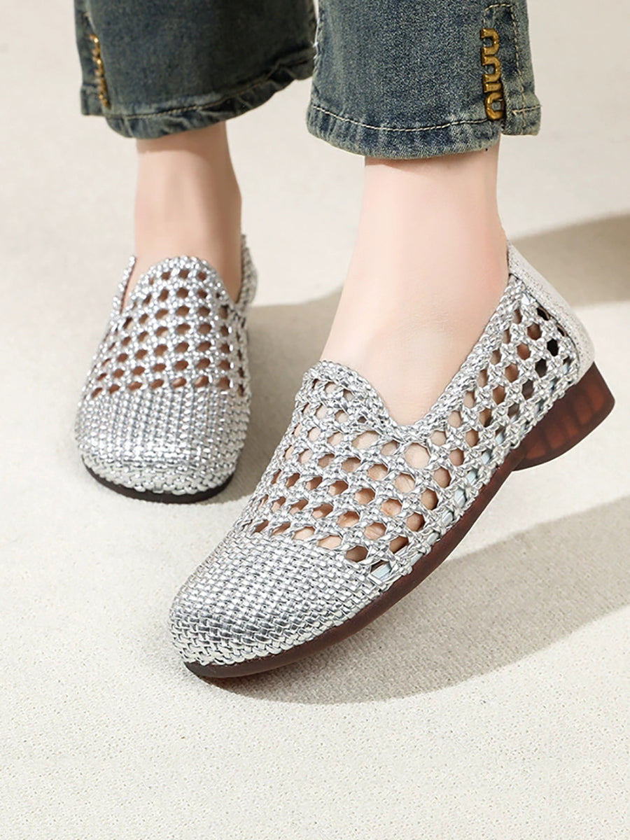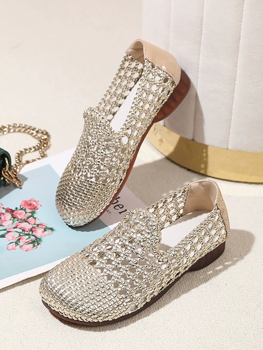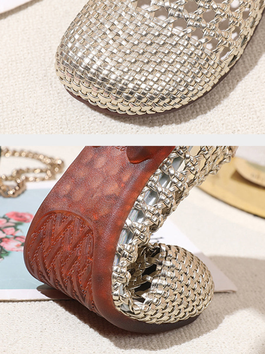 Ženske ljetne sandale s rupičastom kožnom tkaninom i niskom petom