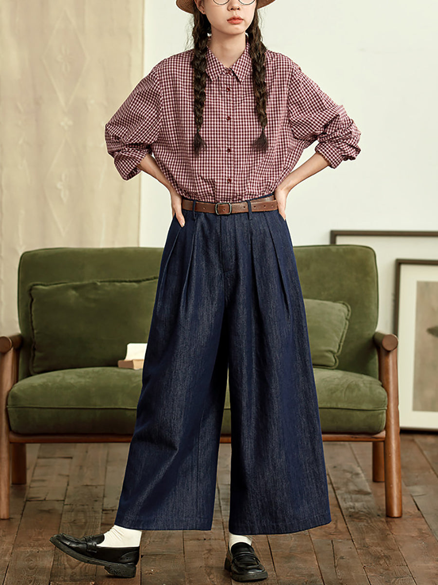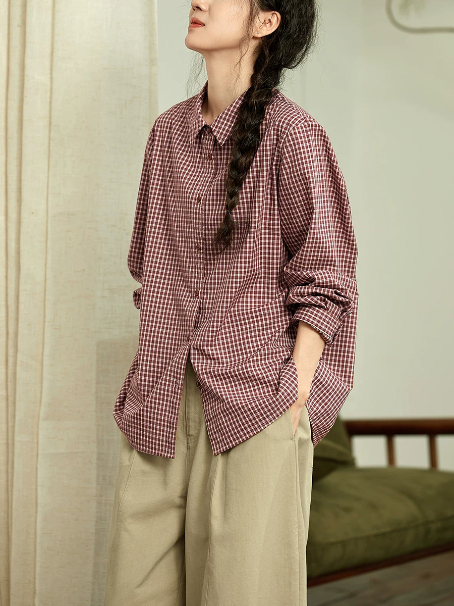 Ženska ljetna karirana bluza s odloženim ovratnikom od 100% pamuka