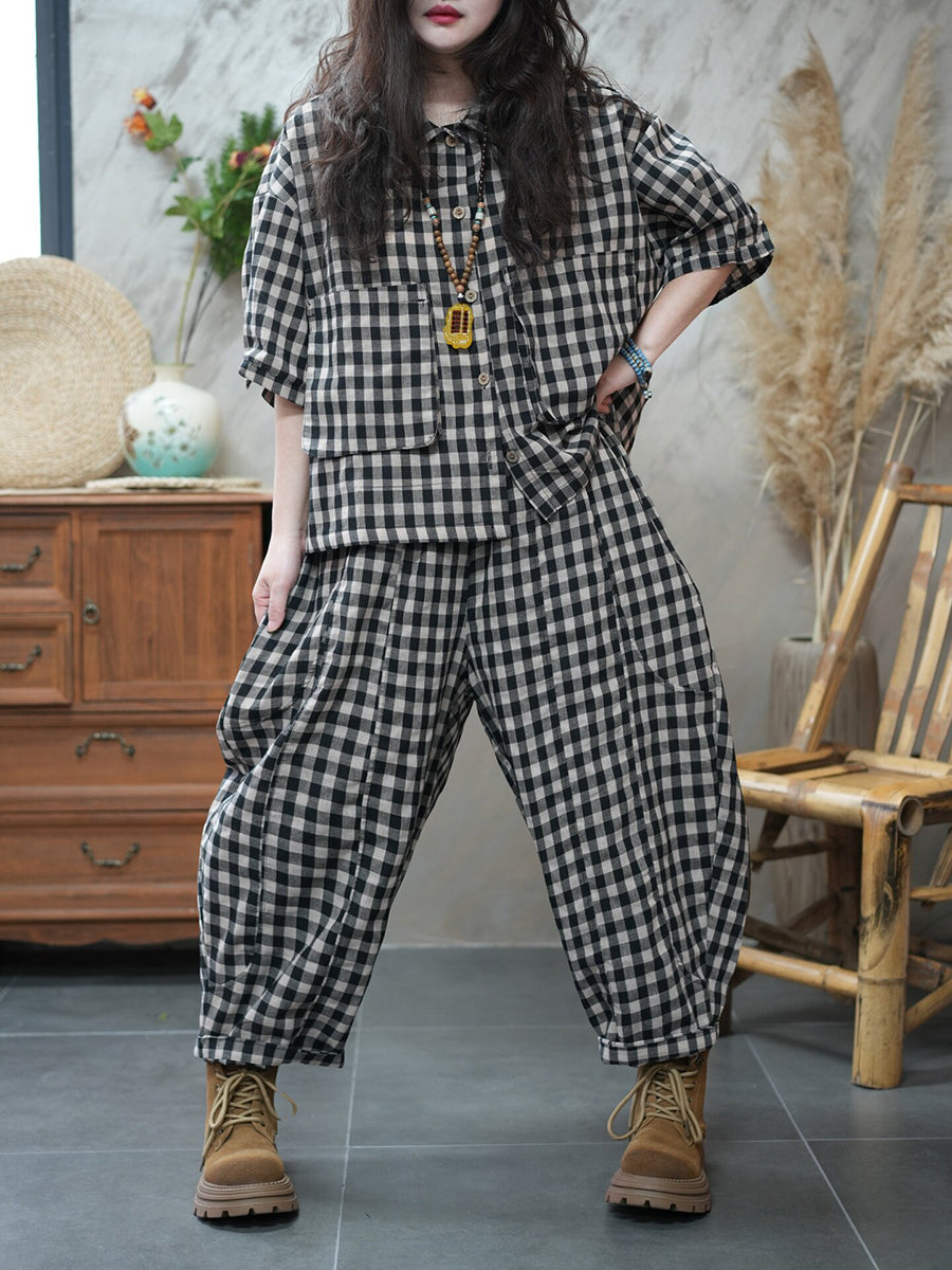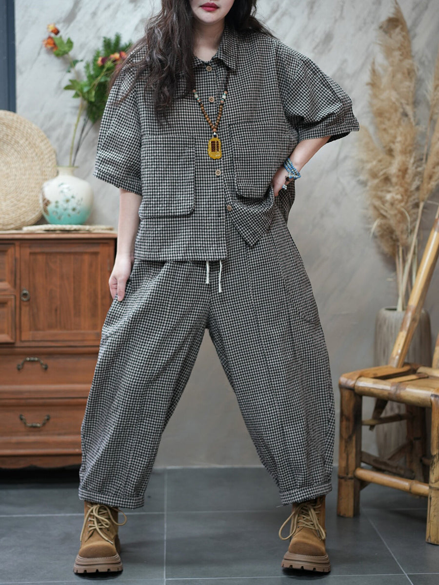 Ženska ljetna vintage rešetkasta široka odijela