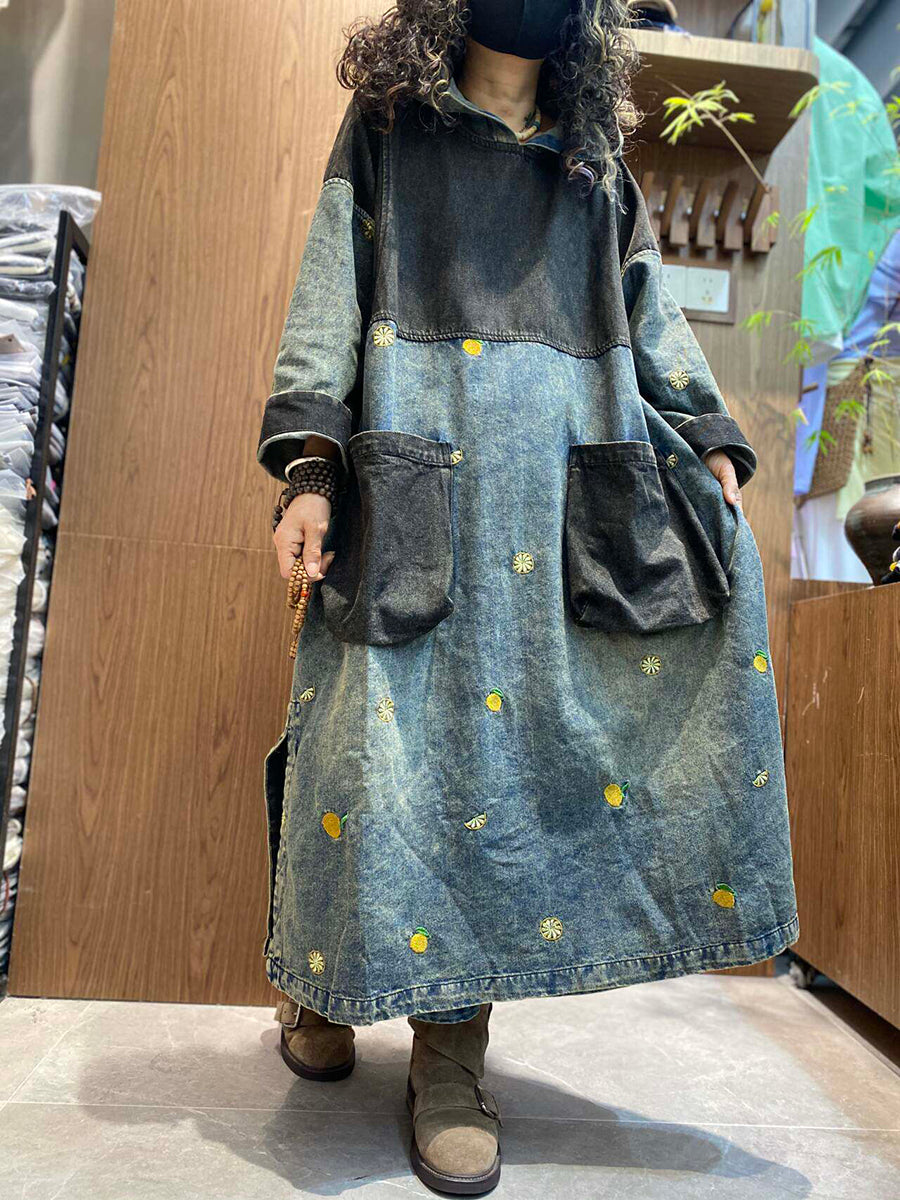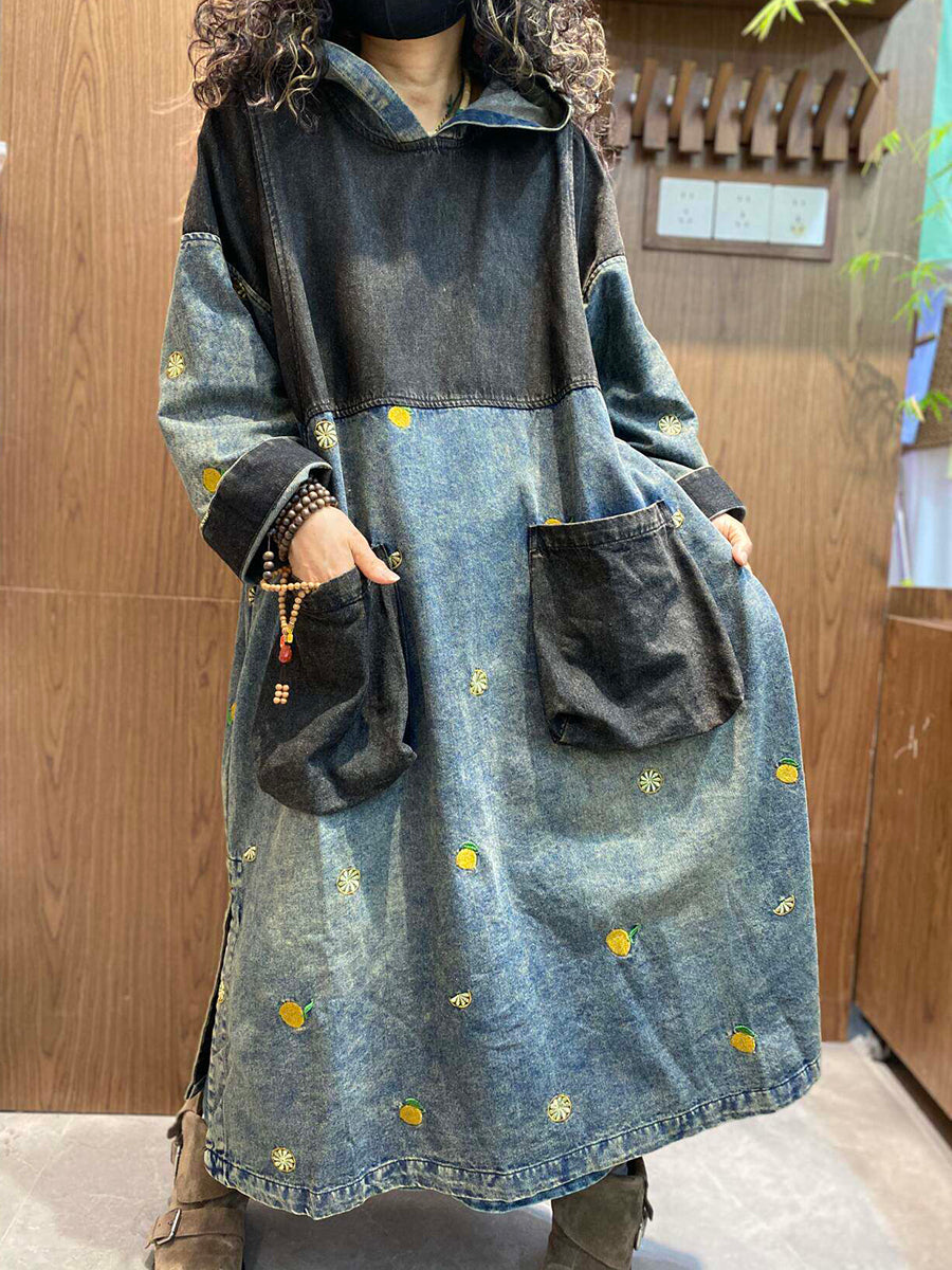 Ženska ljetna vintage traper haljina s kapuljačom