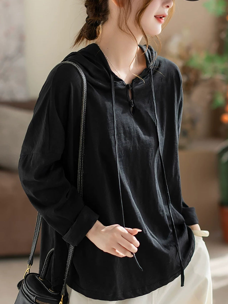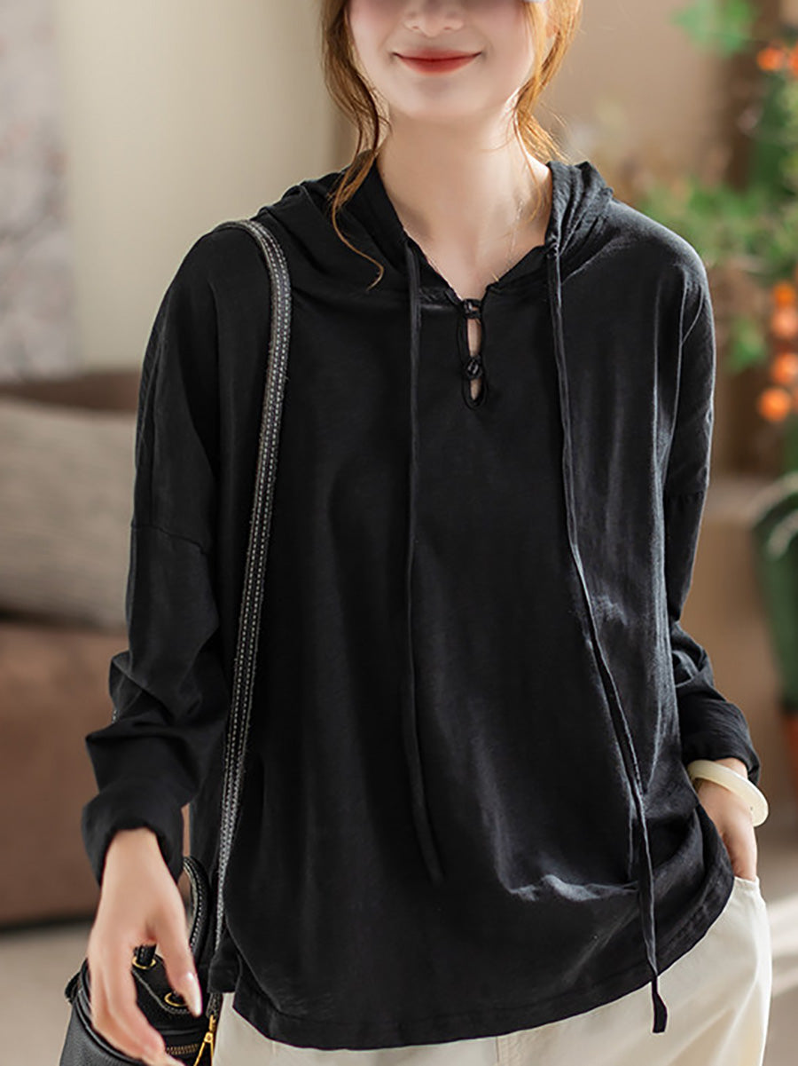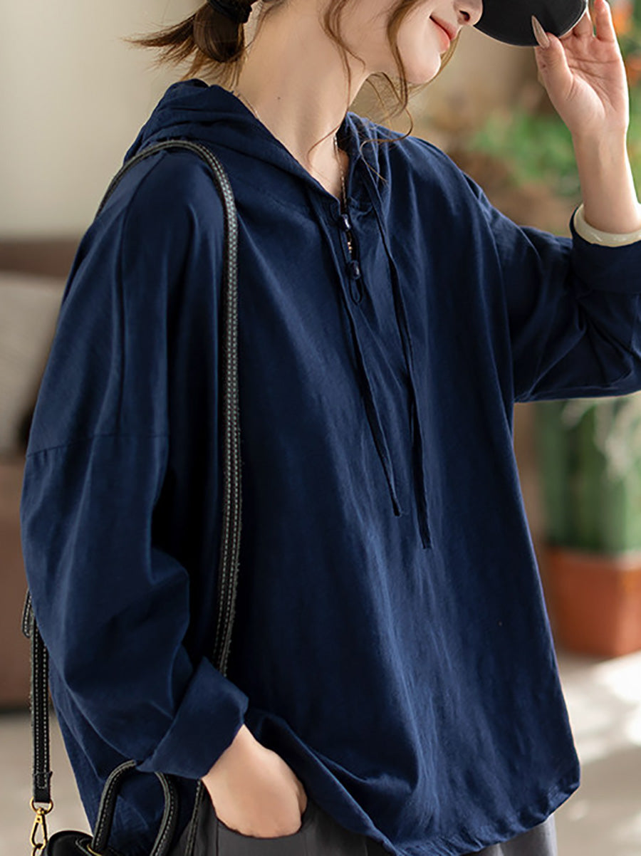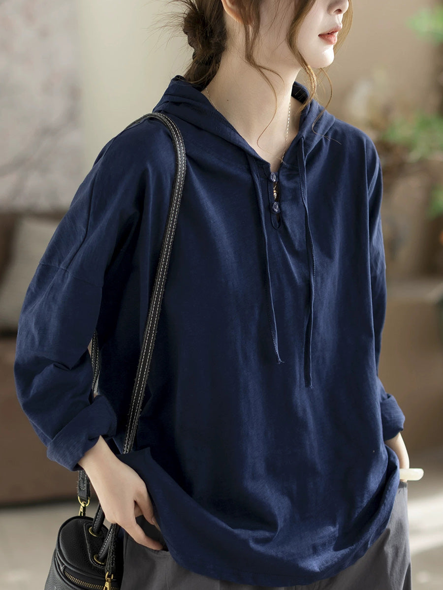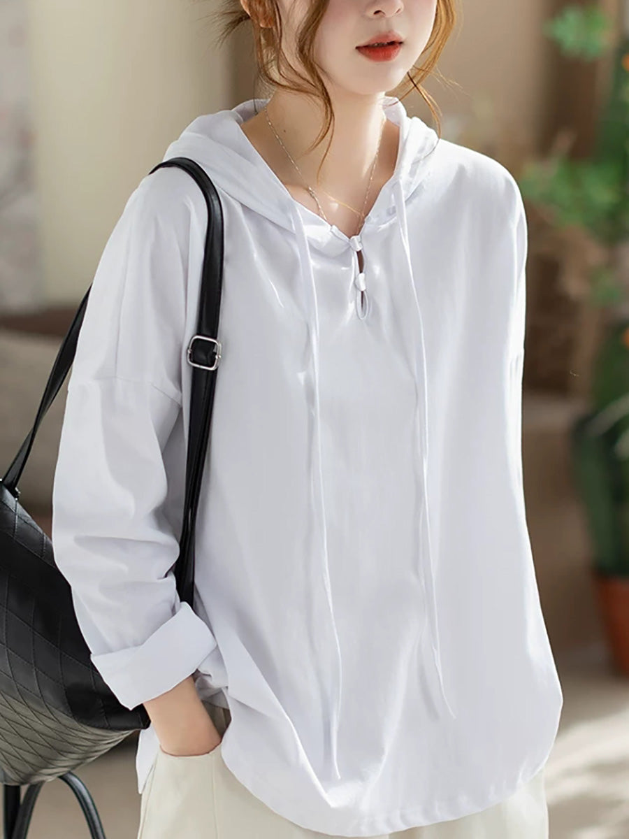 Ženska svestrana proljetna pamučna majica s kapuljačom od čistog materijala