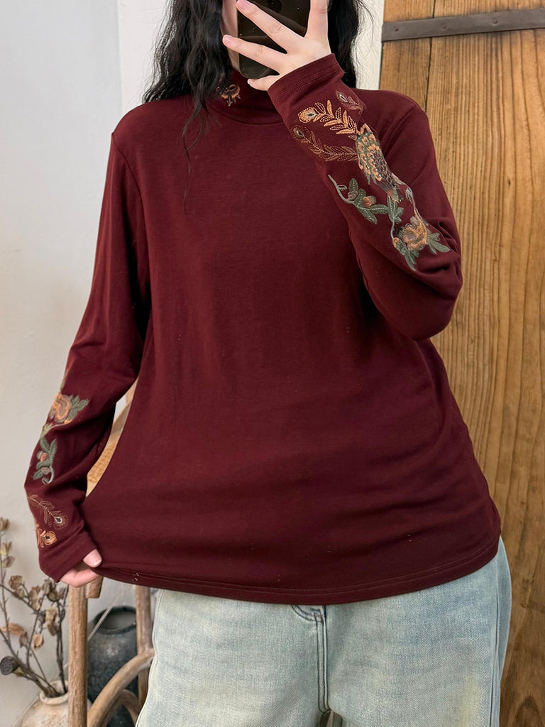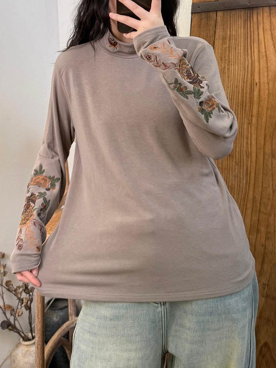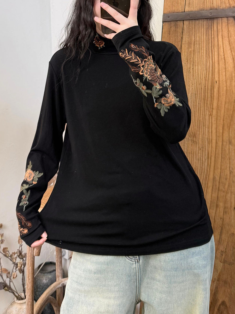 Ženska vintage jesenska bluza s polu-rolkom i vezom
