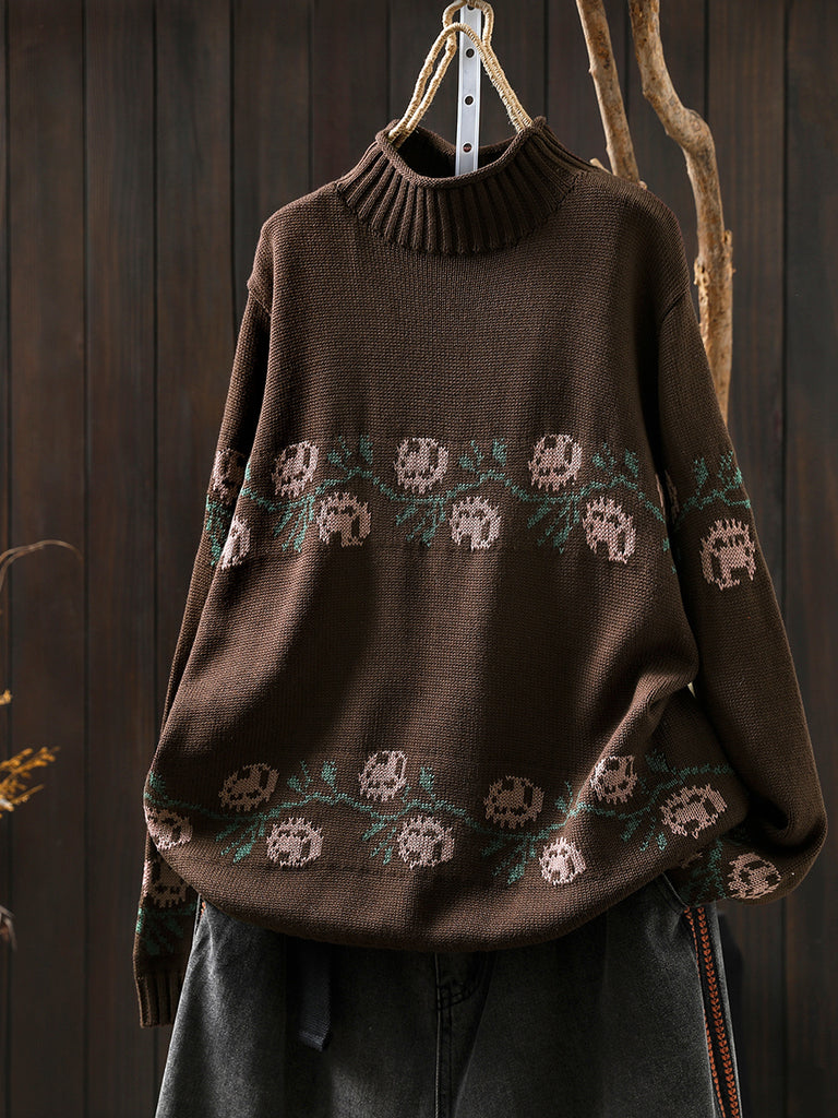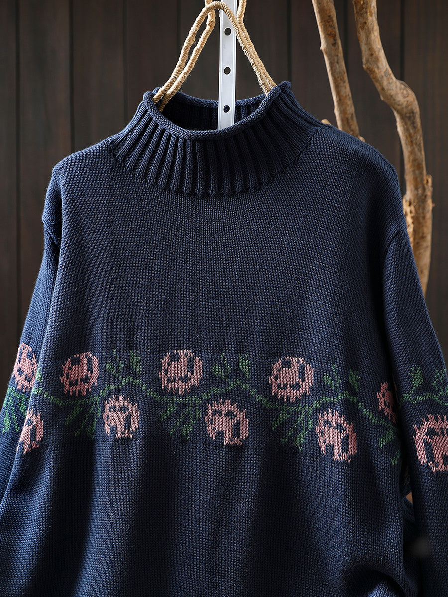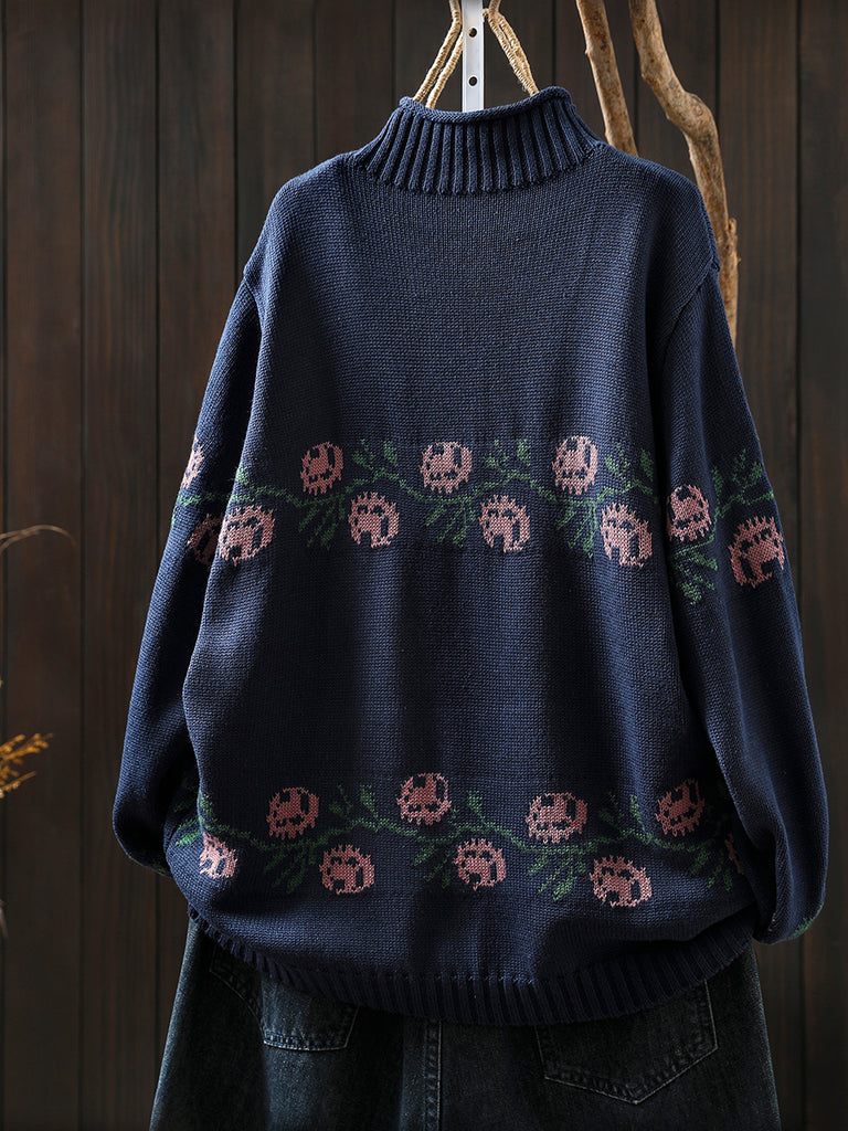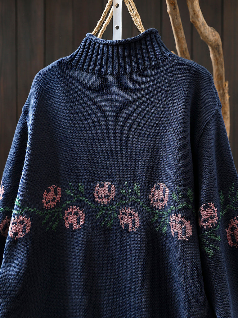 Ženski vintage jesenski cvjetni pulover s polu-rolkom