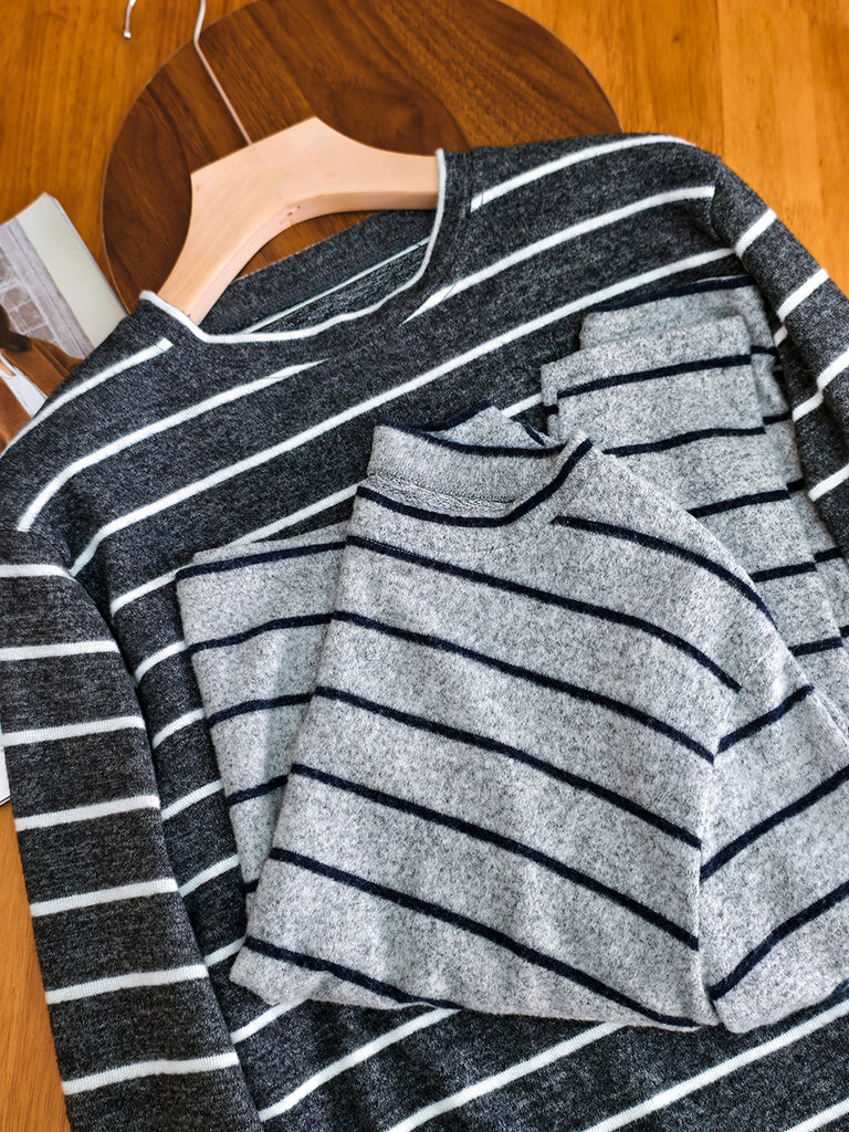 Ženska vintage jesenska prugasta bluza s O-izrezom