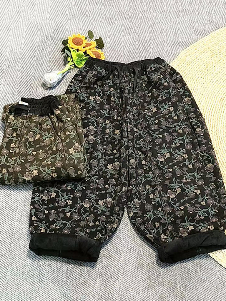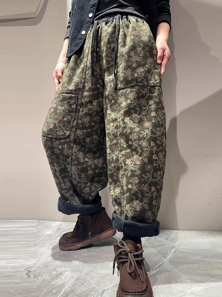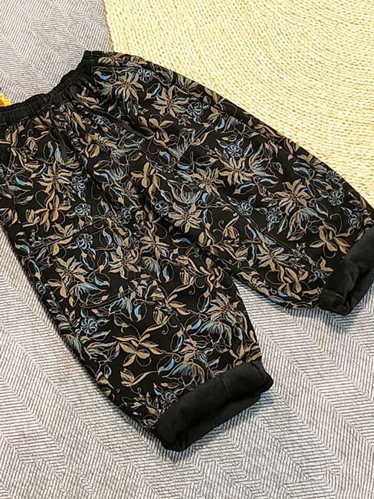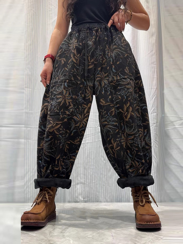 Ženske vintage cvjetne harem hlače s flis podstavom, široke