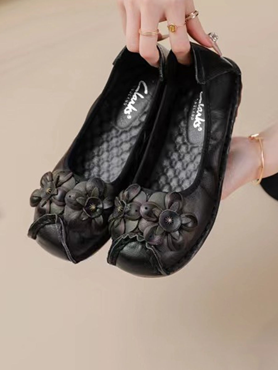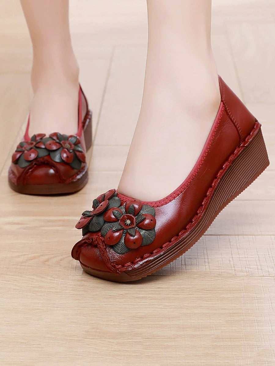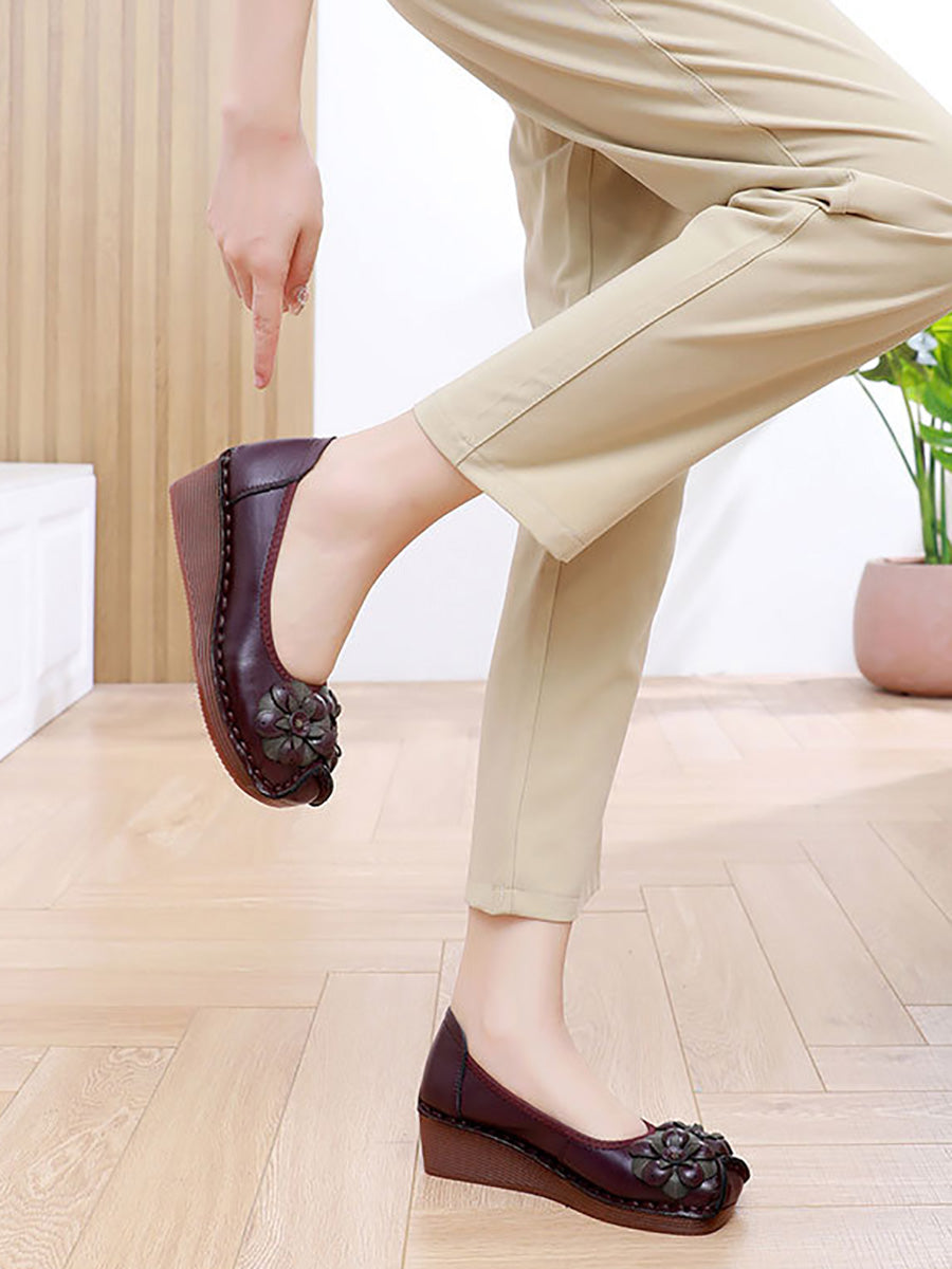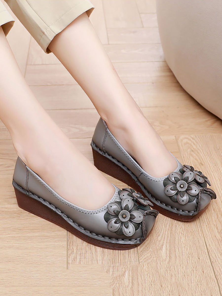 Ženske vintage kožne cipele s platformom i cvjetnim uzorkom