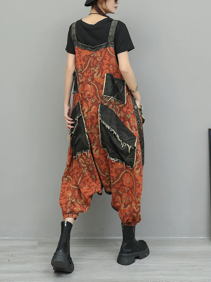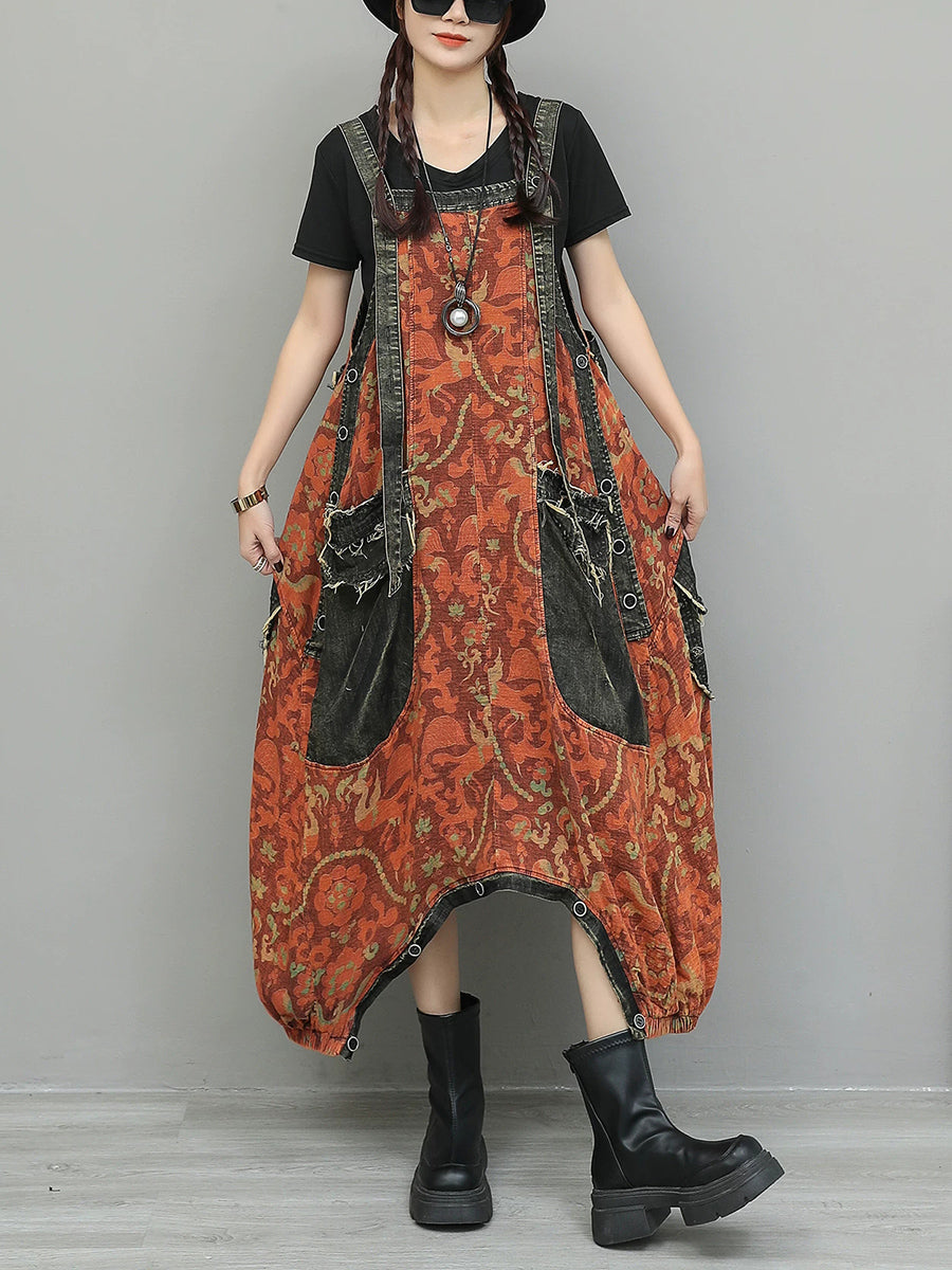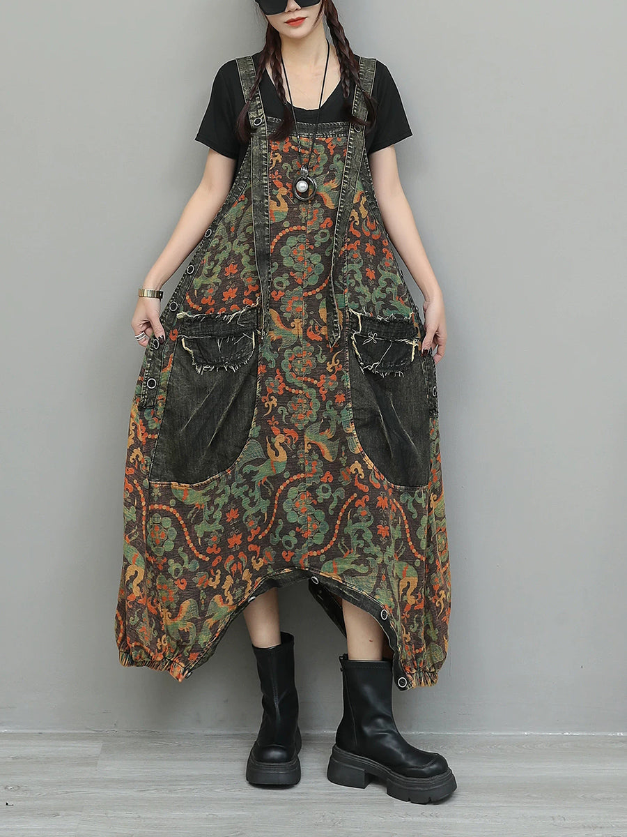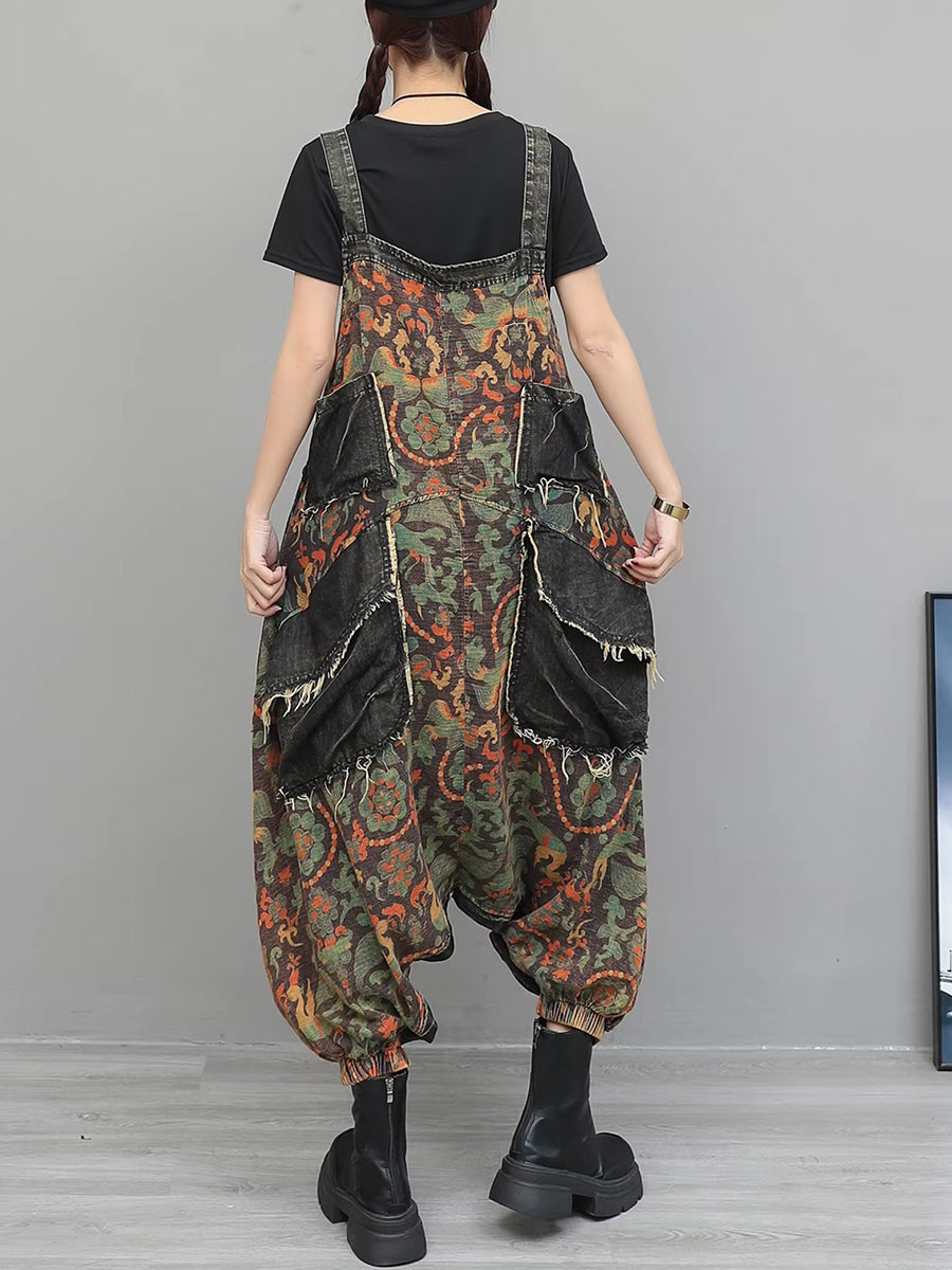 Ženski vintage traper kombinezoni s cvjetnim uzorkom