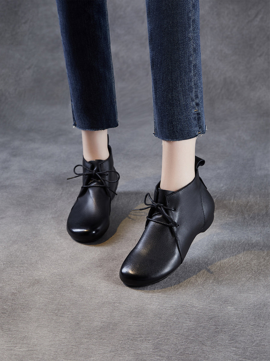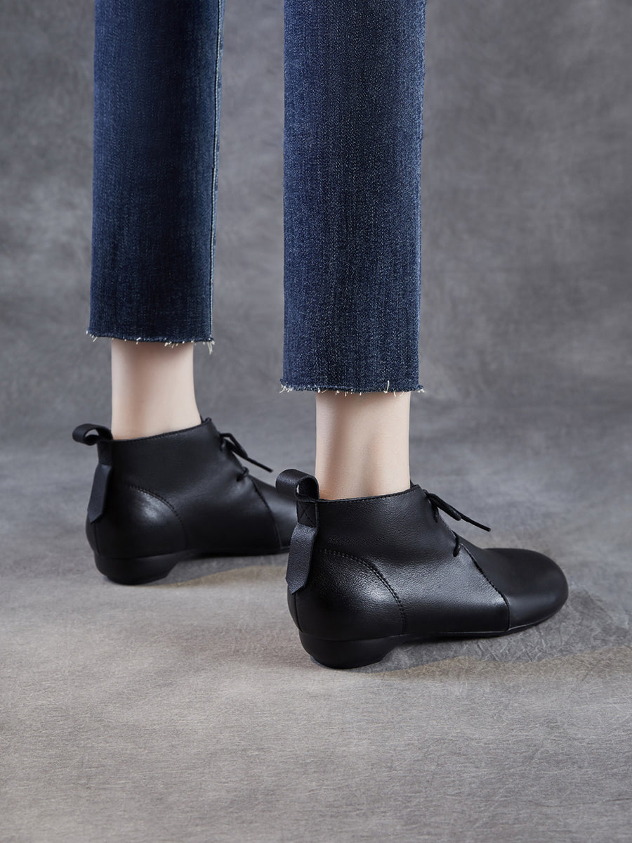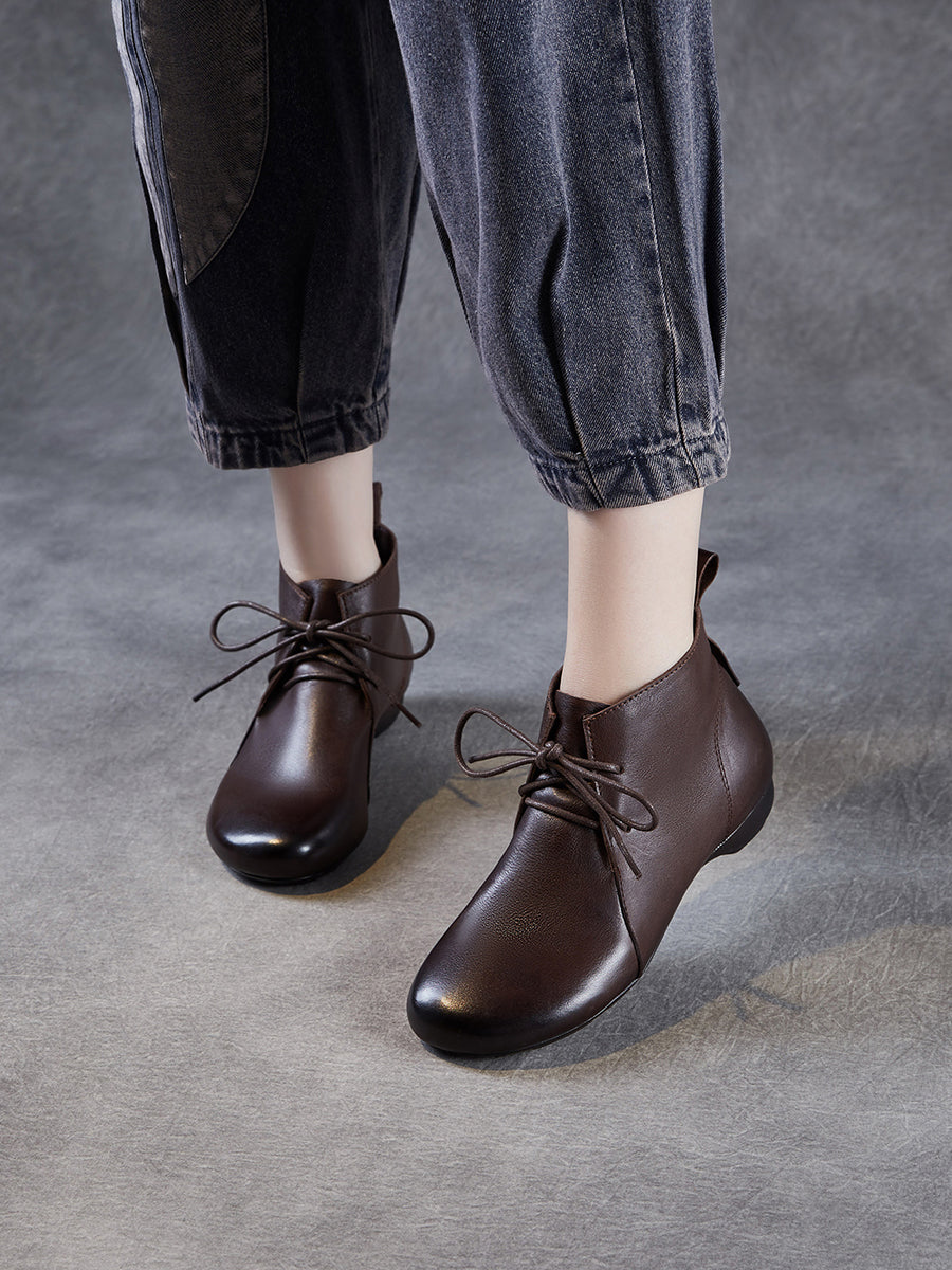 Ženske vintage čizme za gležnjače od prave kože s niskom petom