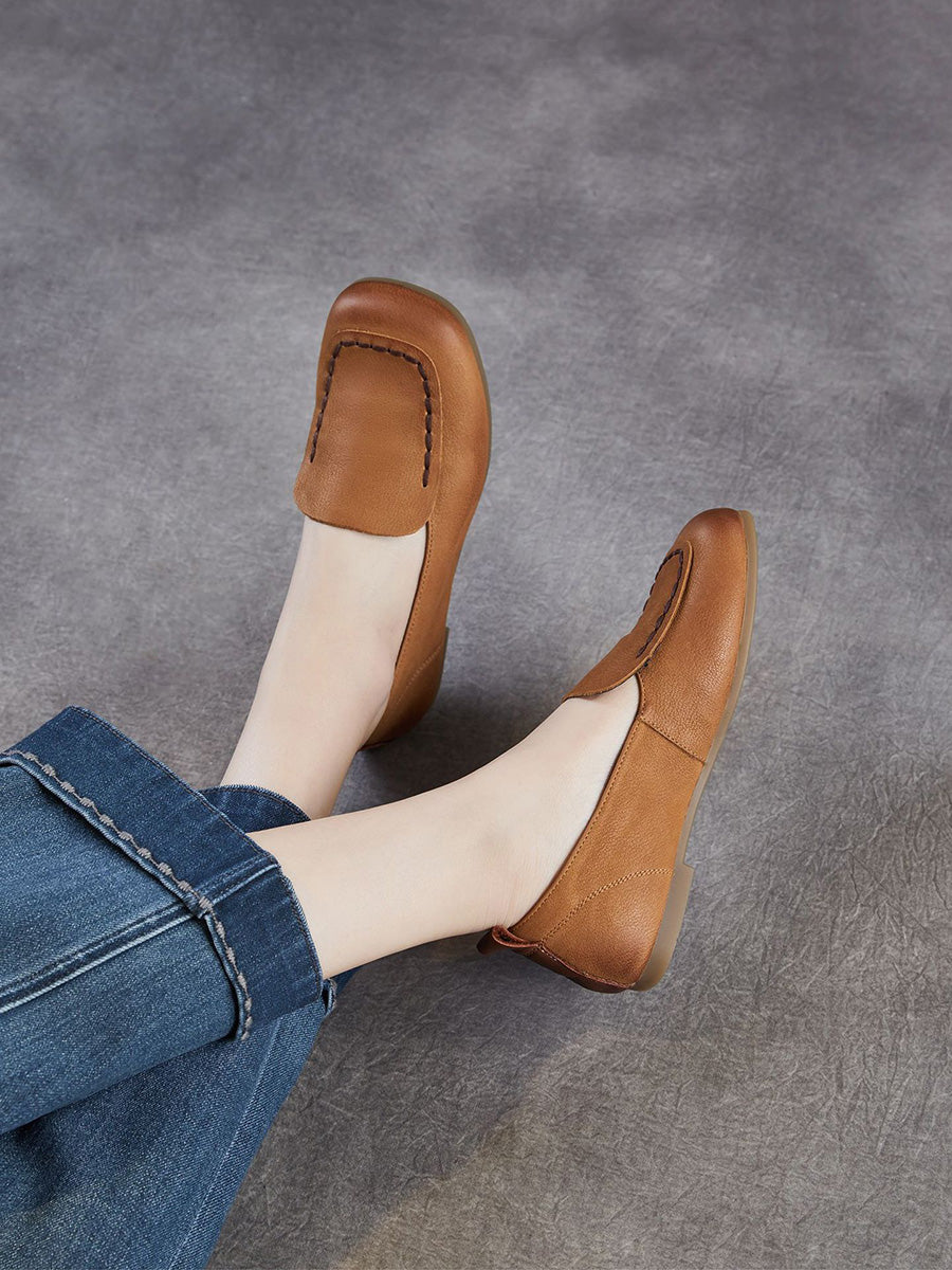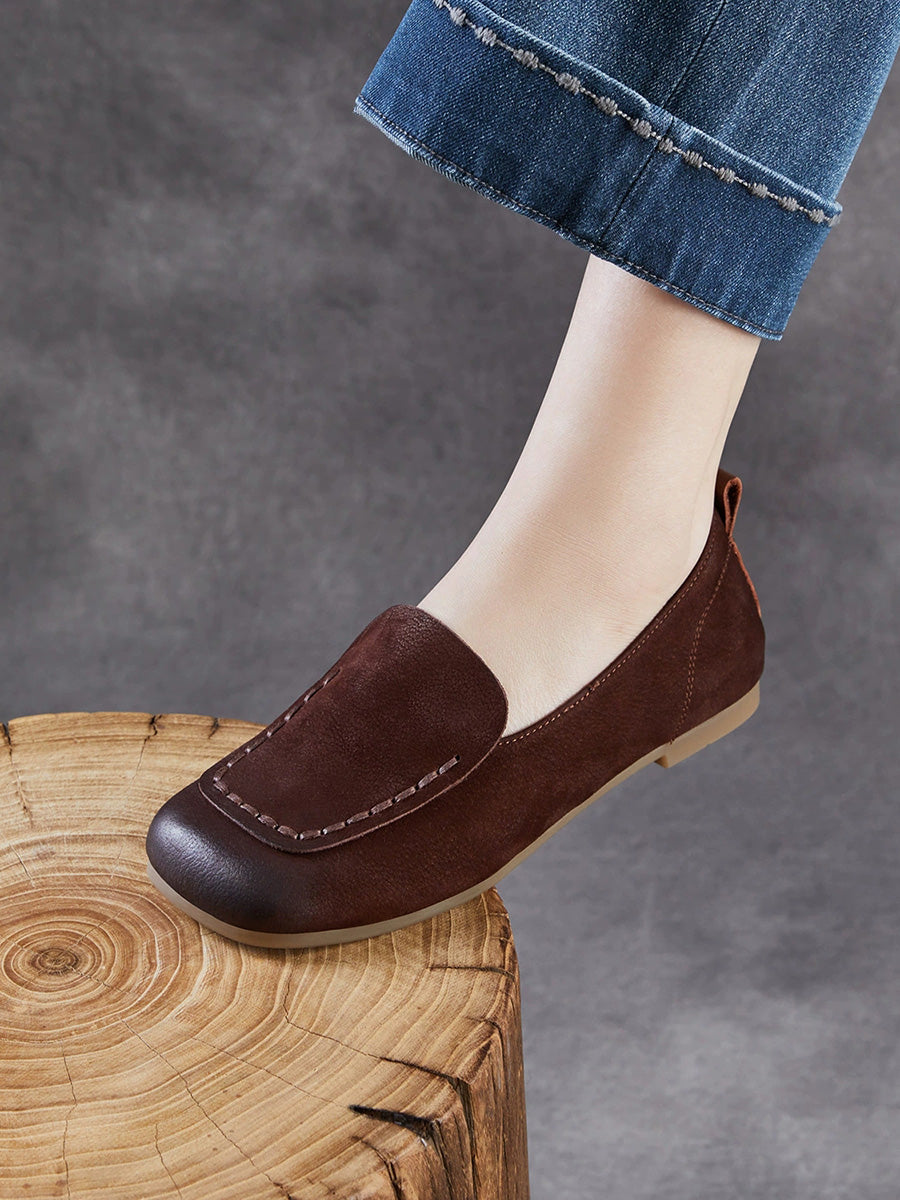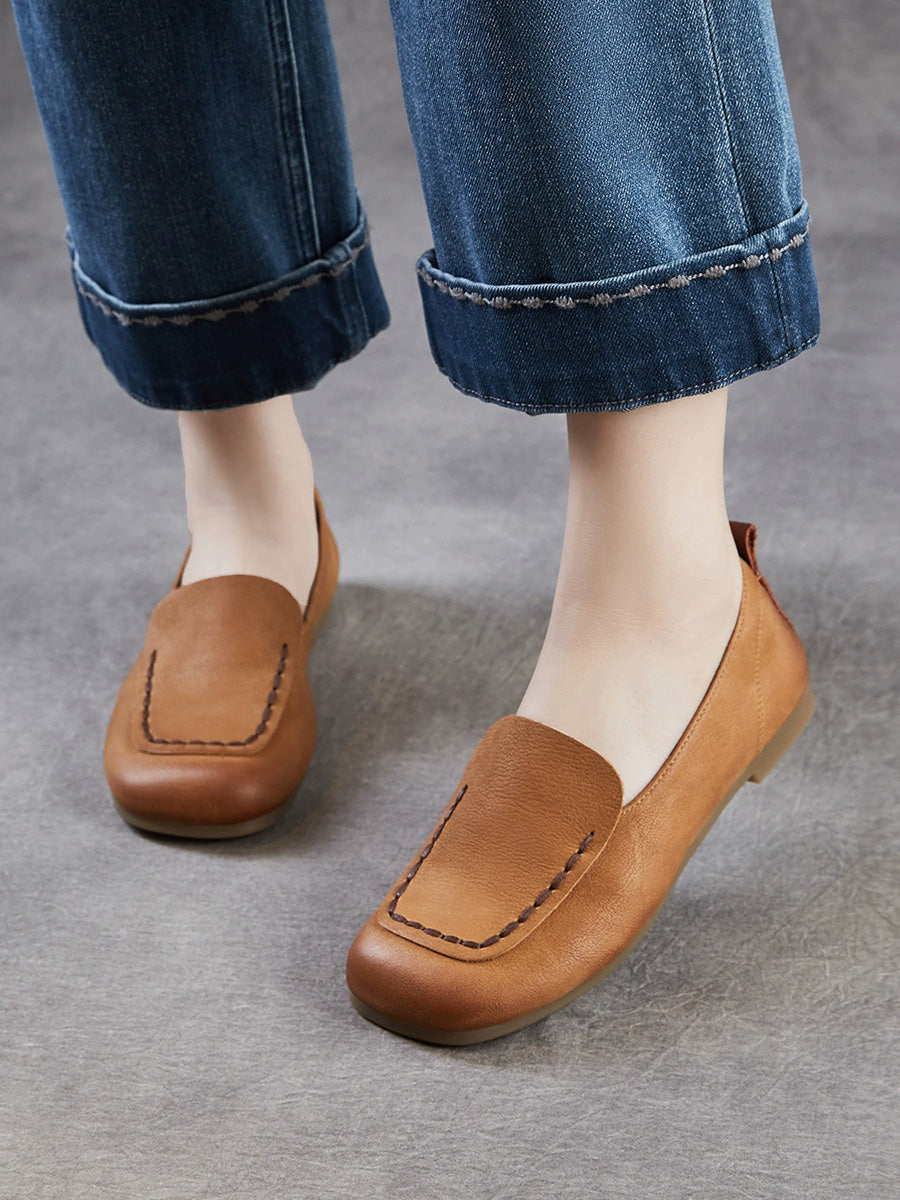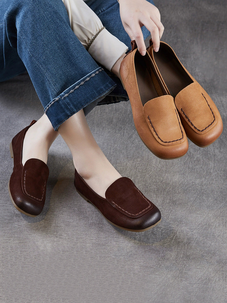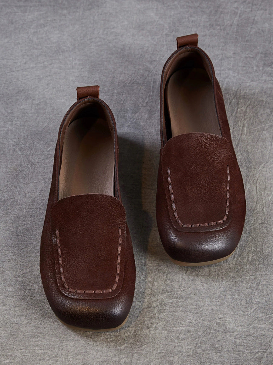 Ženske vintage cipele od prave kože s četvrtastim vrhom