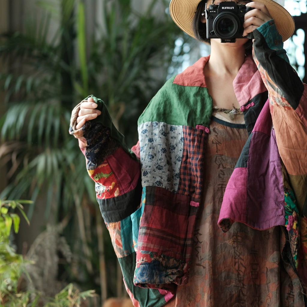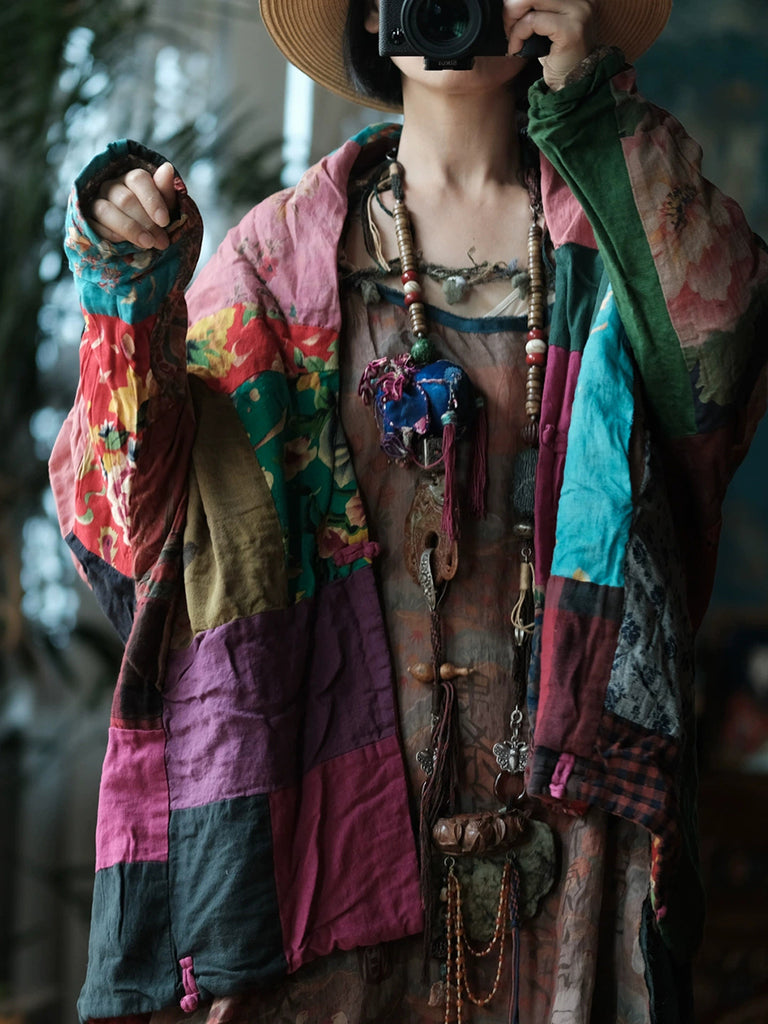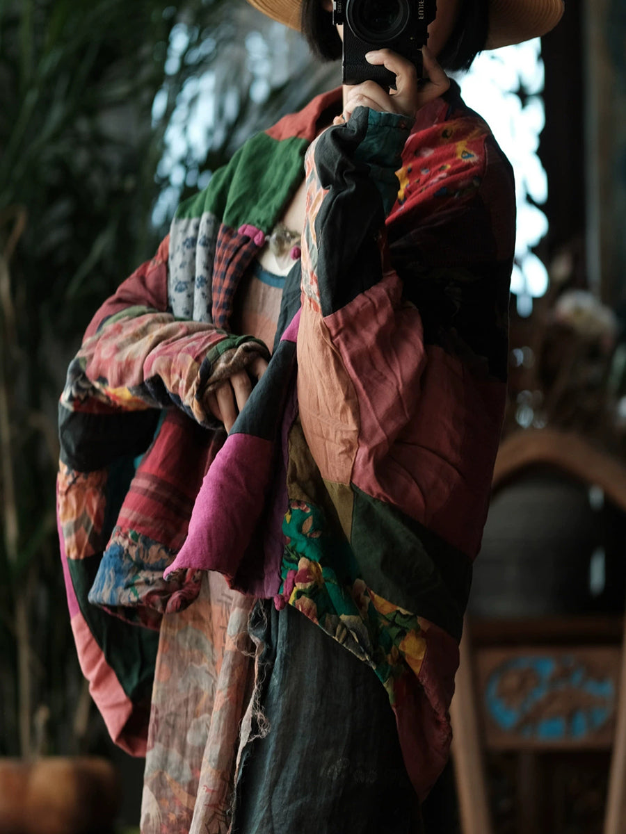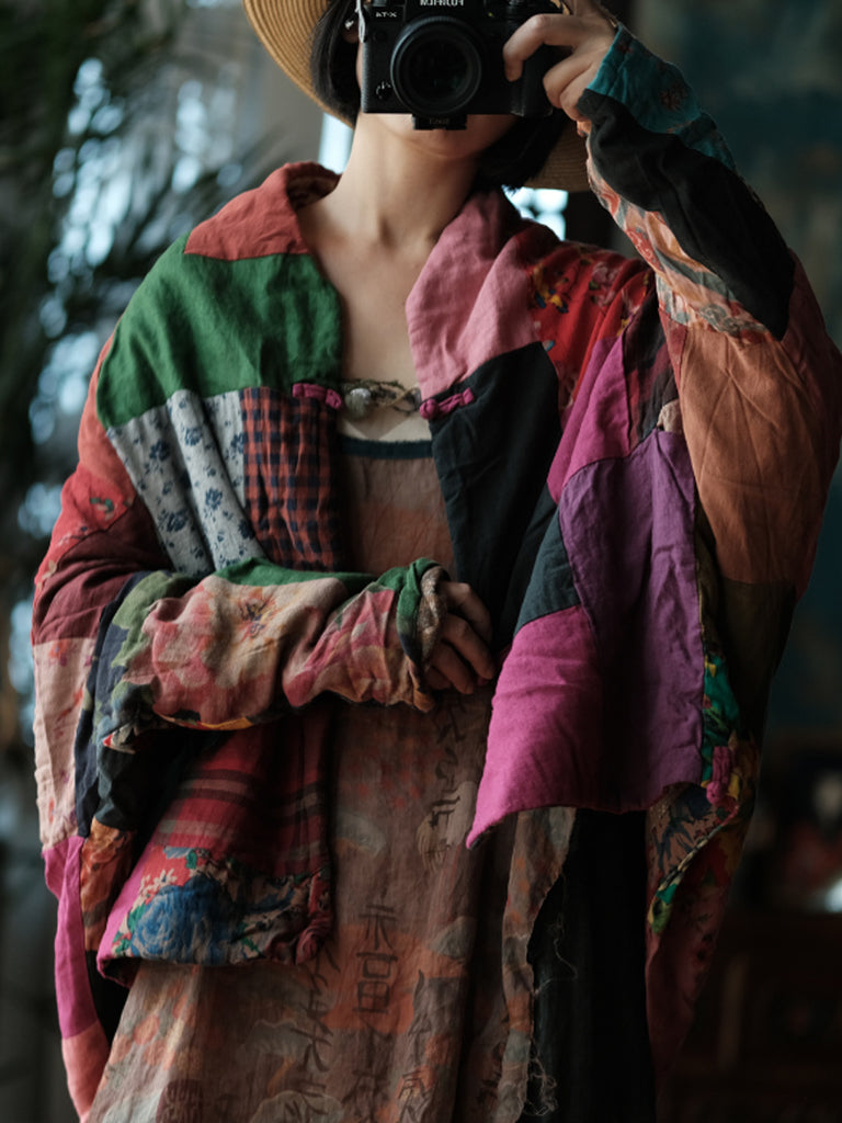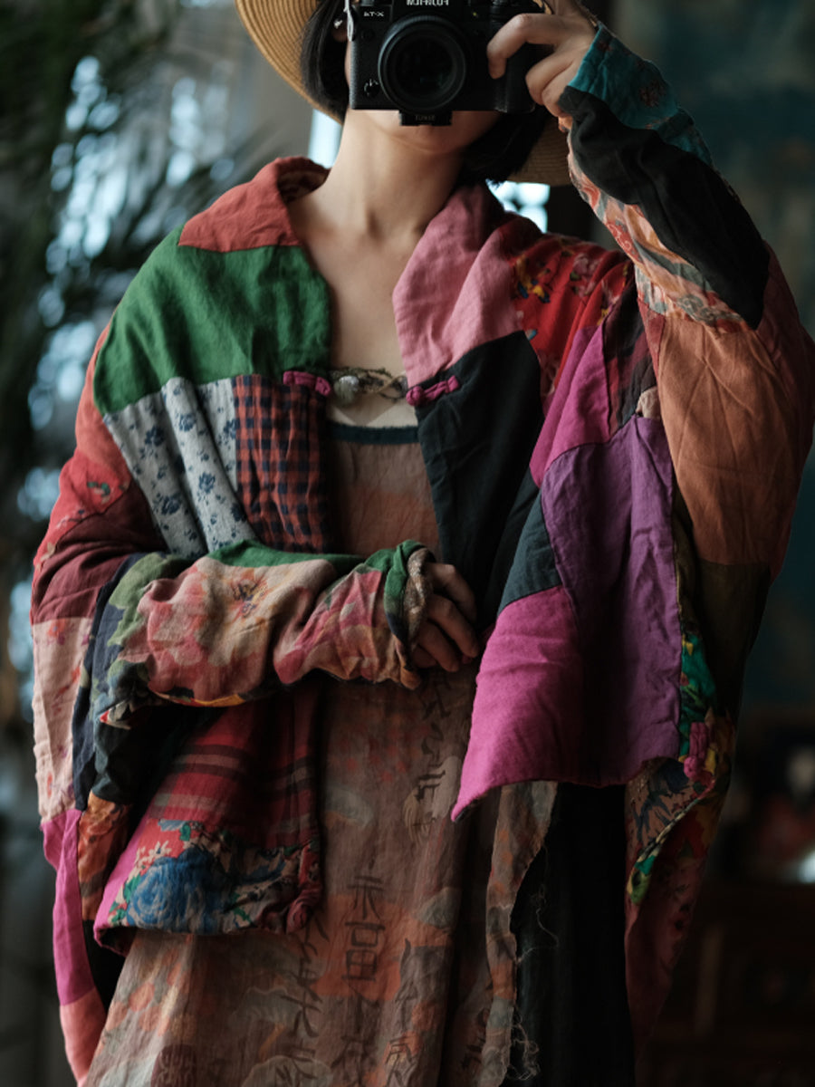 Ženski vintage pamučni kaput s pamučnim rukavima i pamučnim patchworkom