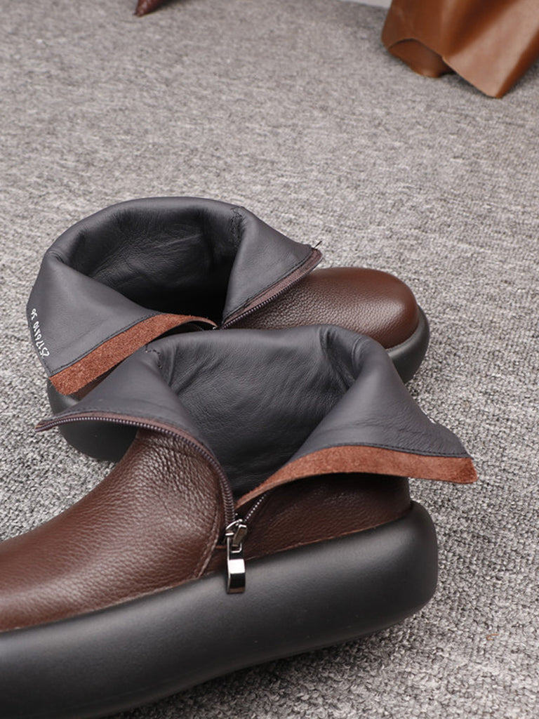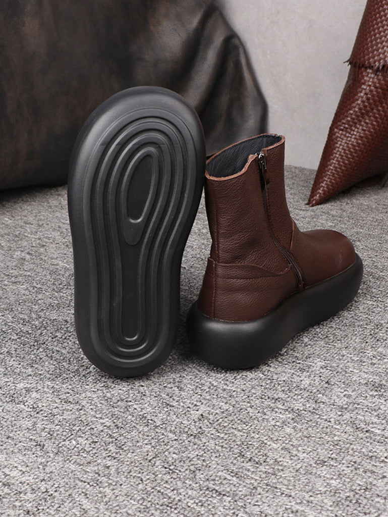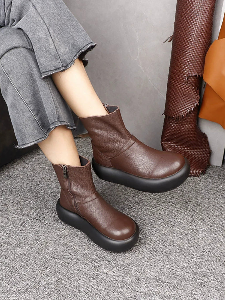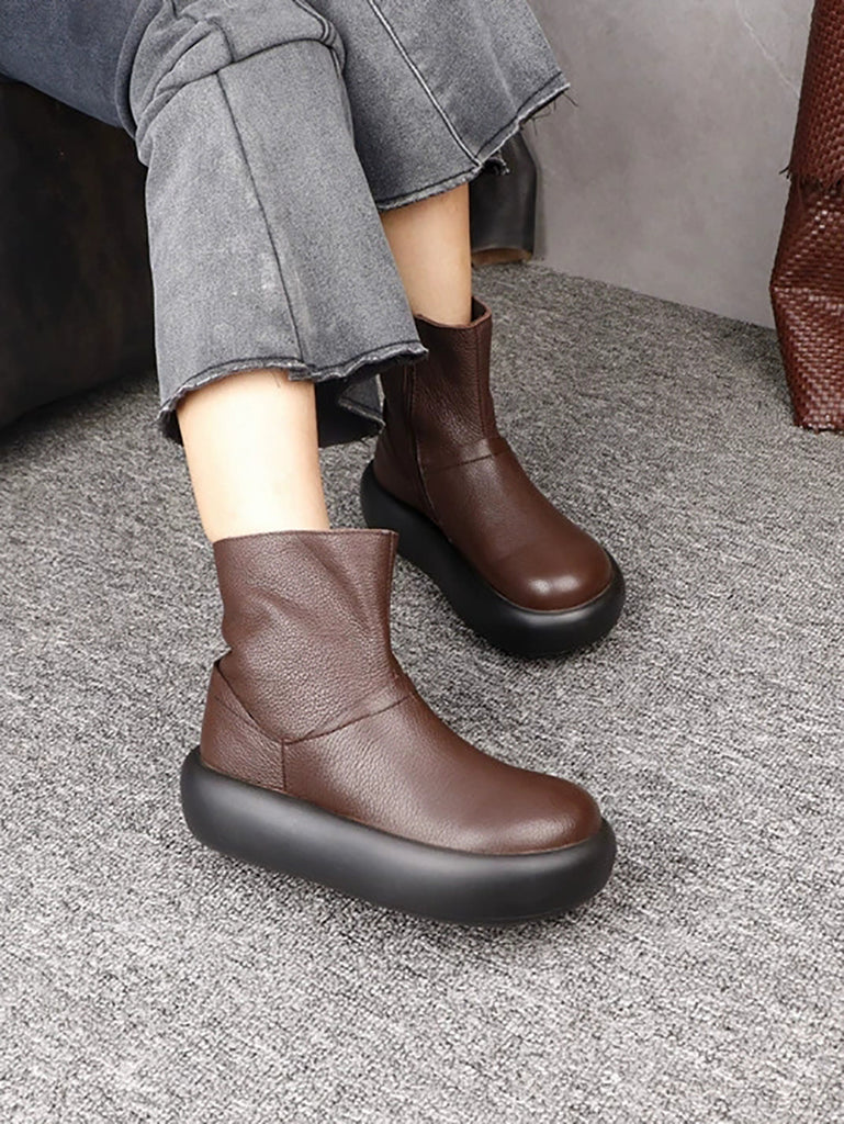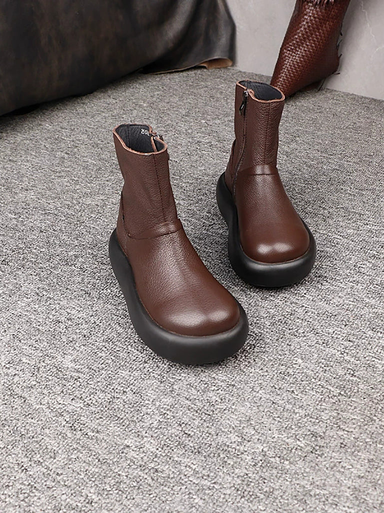 Ženske vintage čizme za gležnjače od prave kože u čistoj boji
