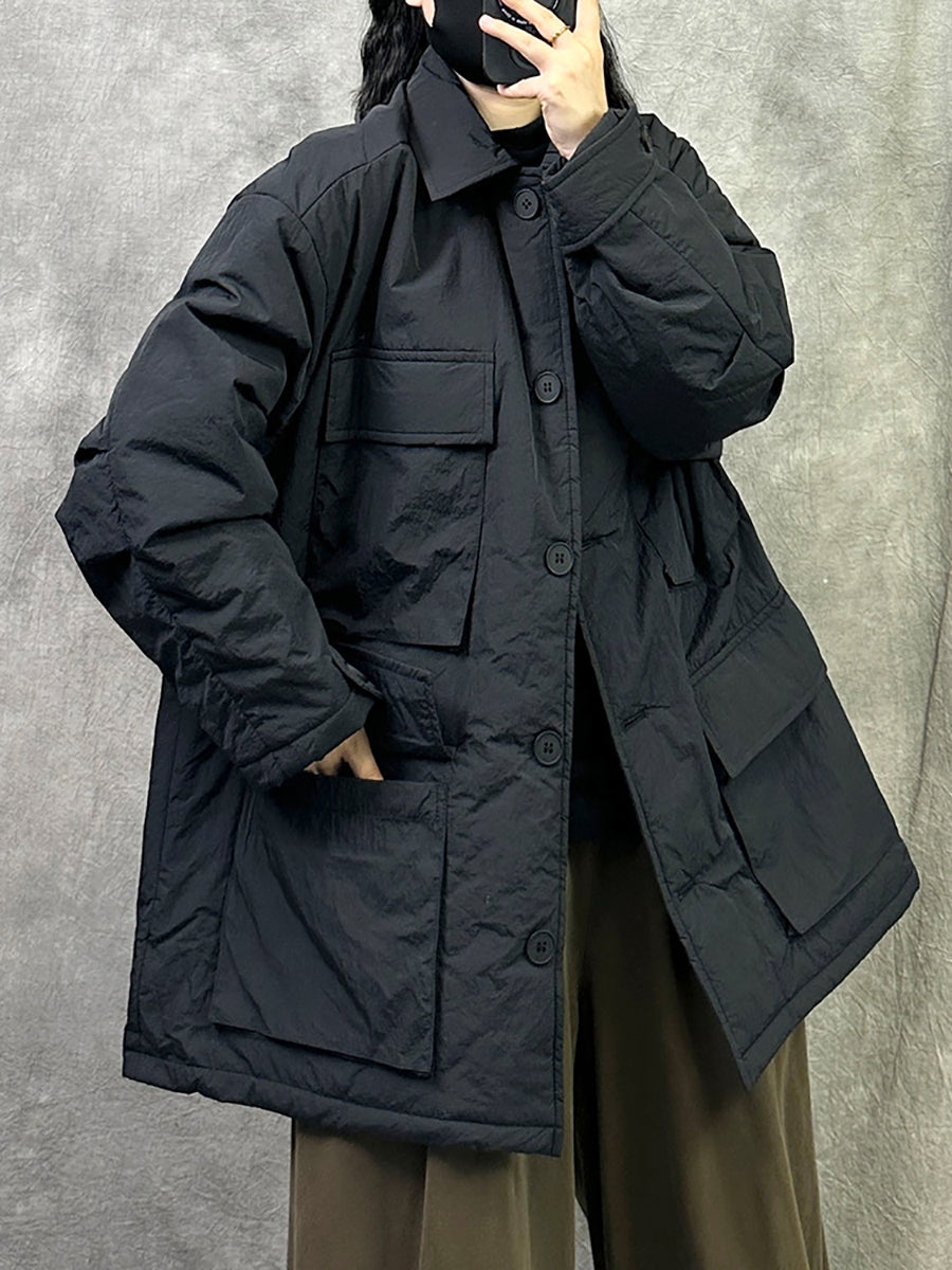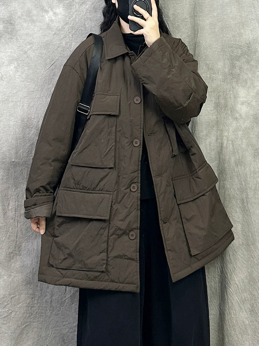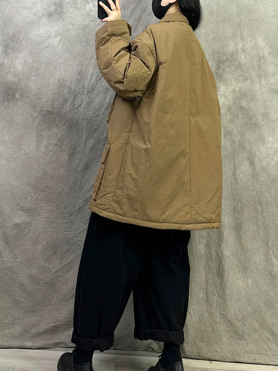 Izrađen od pamuka, ovaj vintage inspirirani podstavljeni kaput ima jednobojni dizajn sa stojećim ovratnikom. Nudi pune raglan rukave s klasičnom retro siluetom, savršenim za jesensko i zimsko nošenje.