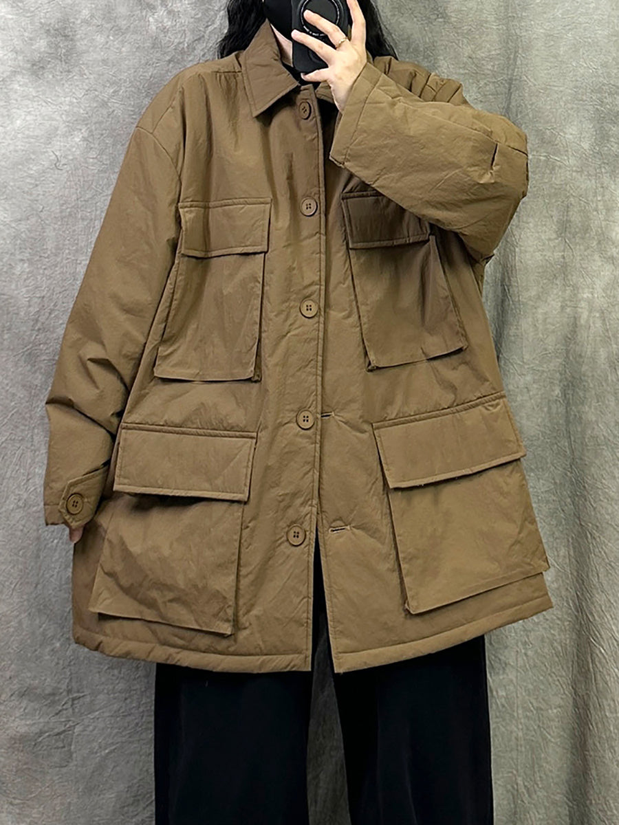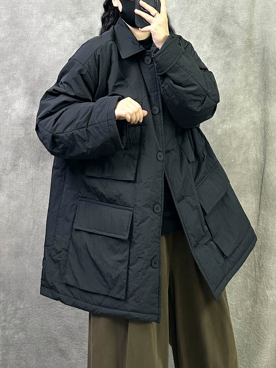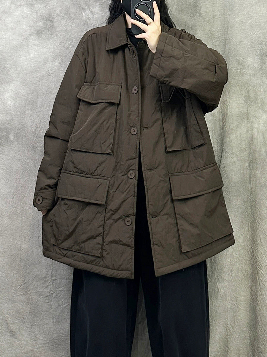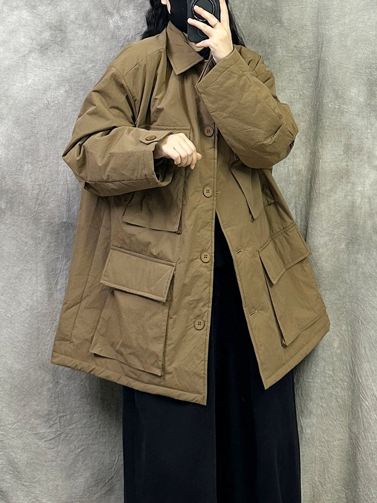 Izrađen od pamuka, ovaj vintage inspirirani podstavljeni kaput ima jednobojni dizajn sa stojećim ovratnikom. Nudi pune raglan rukave s klasičnom retro siluetom, savršenim za jesensko i zimsko nošenje.
