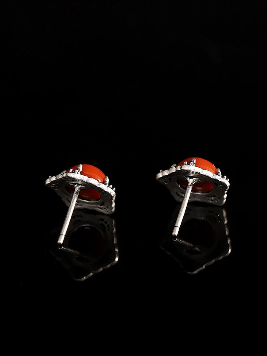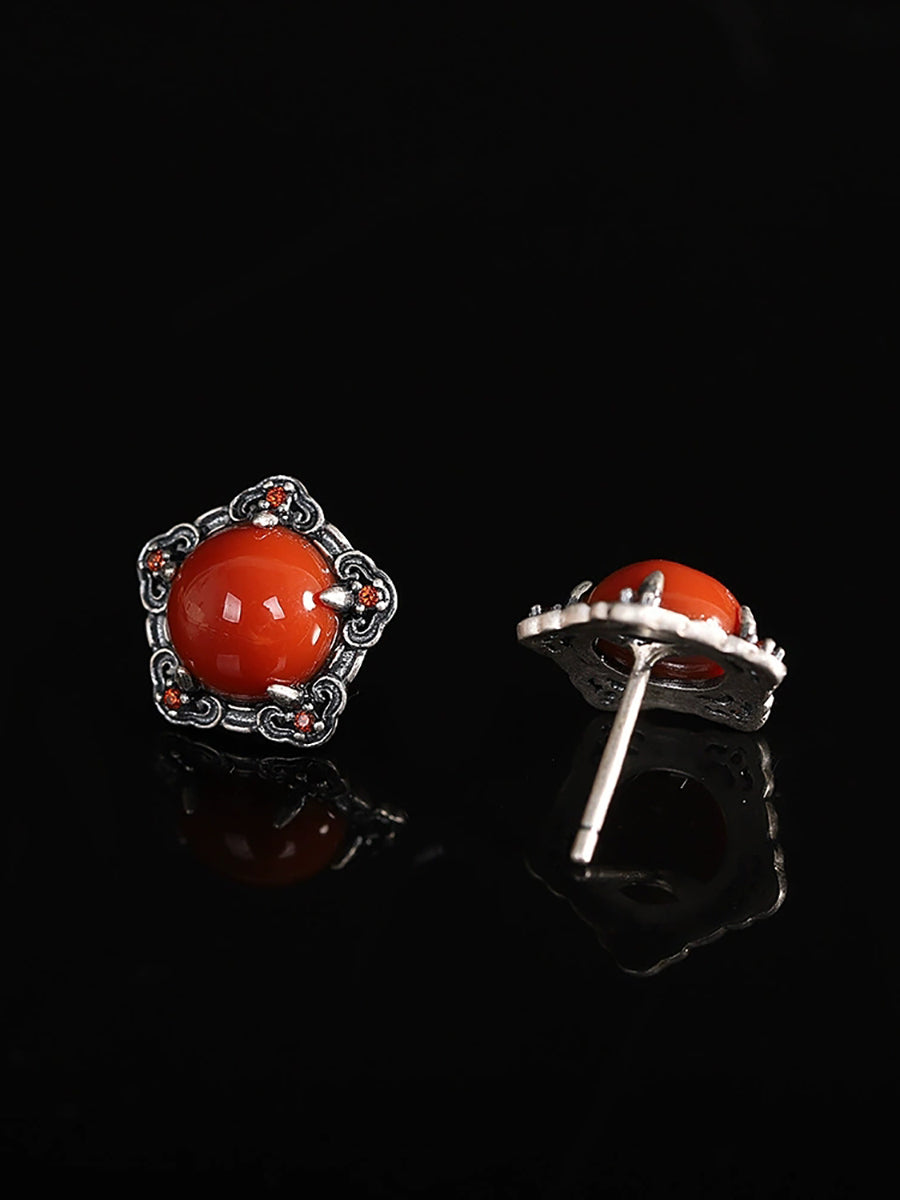 Ženske vintage naušnice od srebrnog crvenog ahata S925
