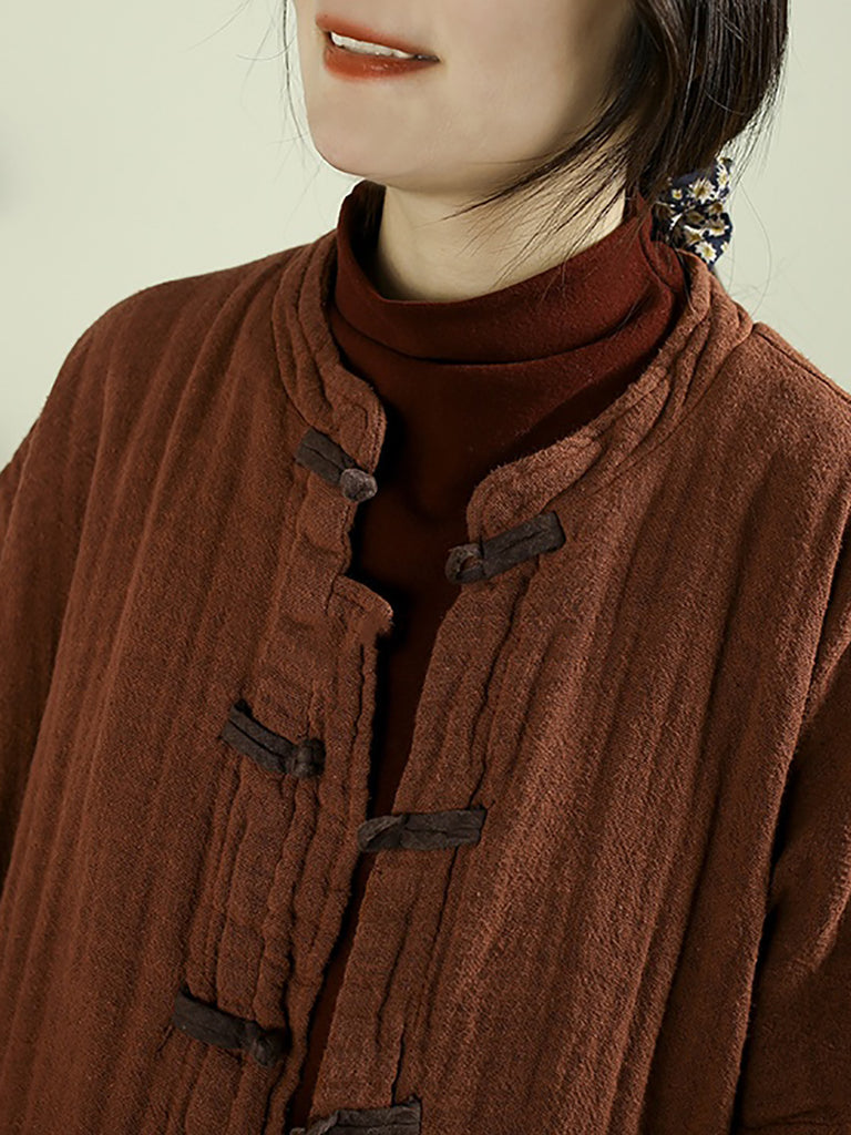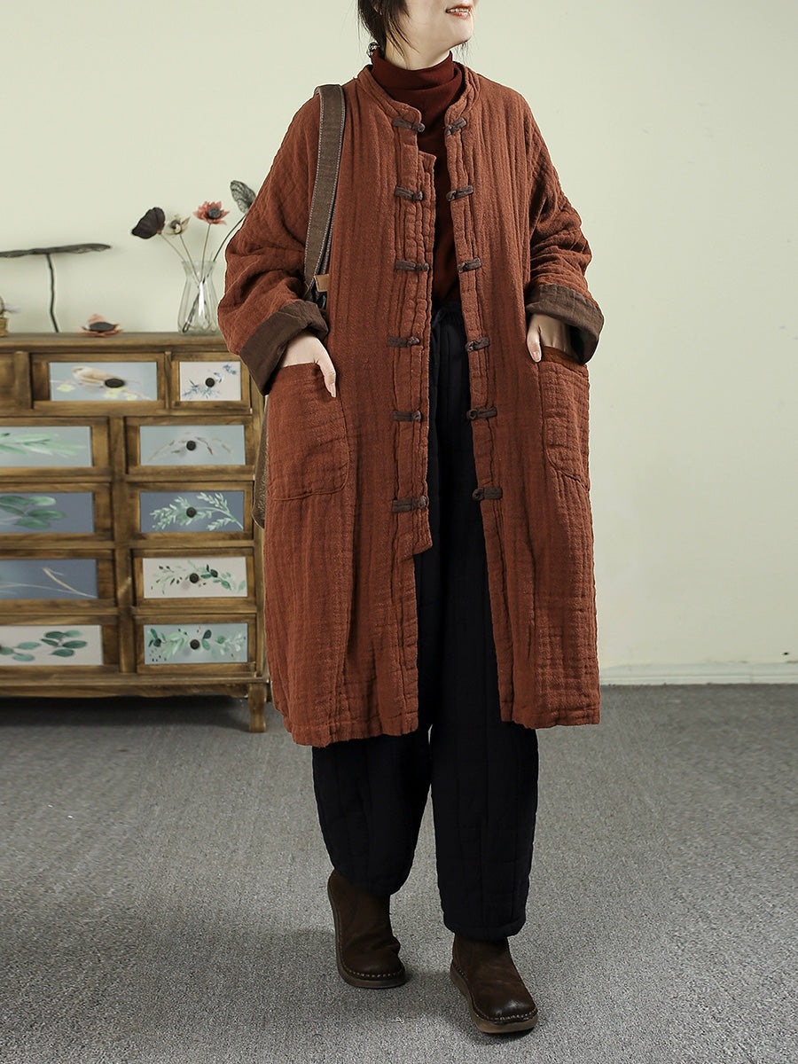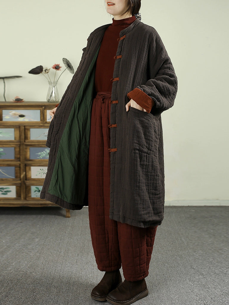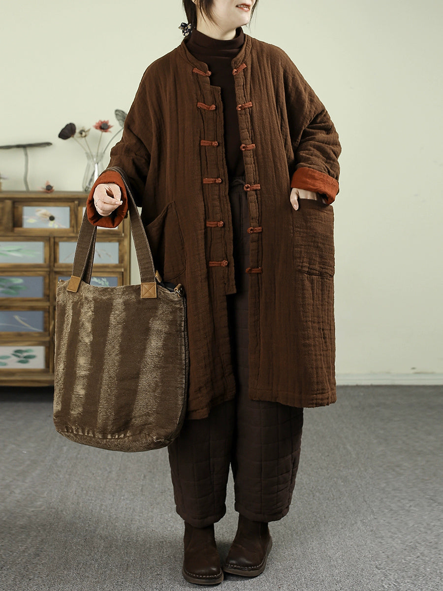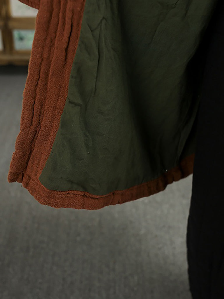 Ženski vintage zimski kaput od 100% lana s ovratnikom
