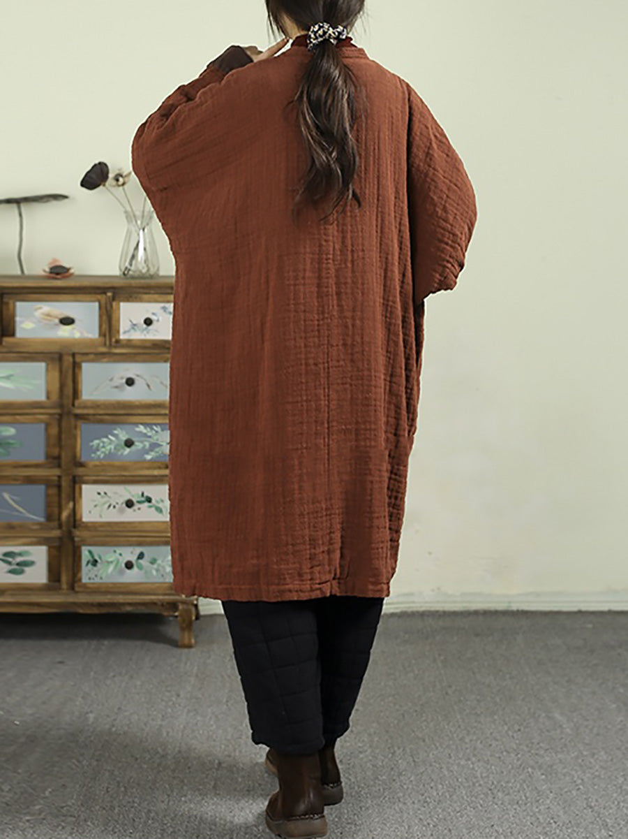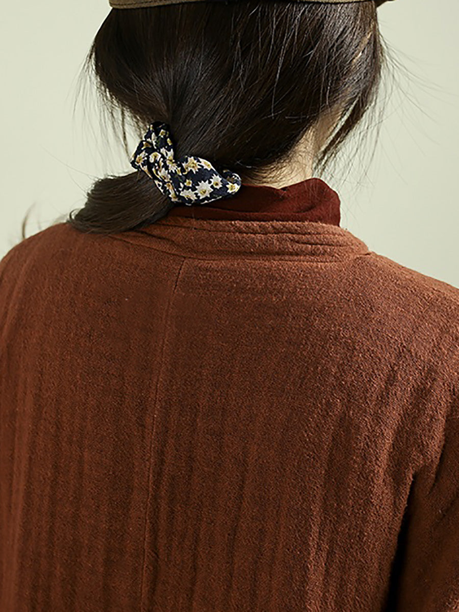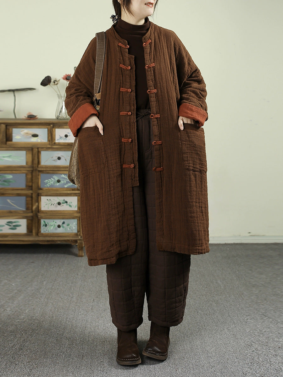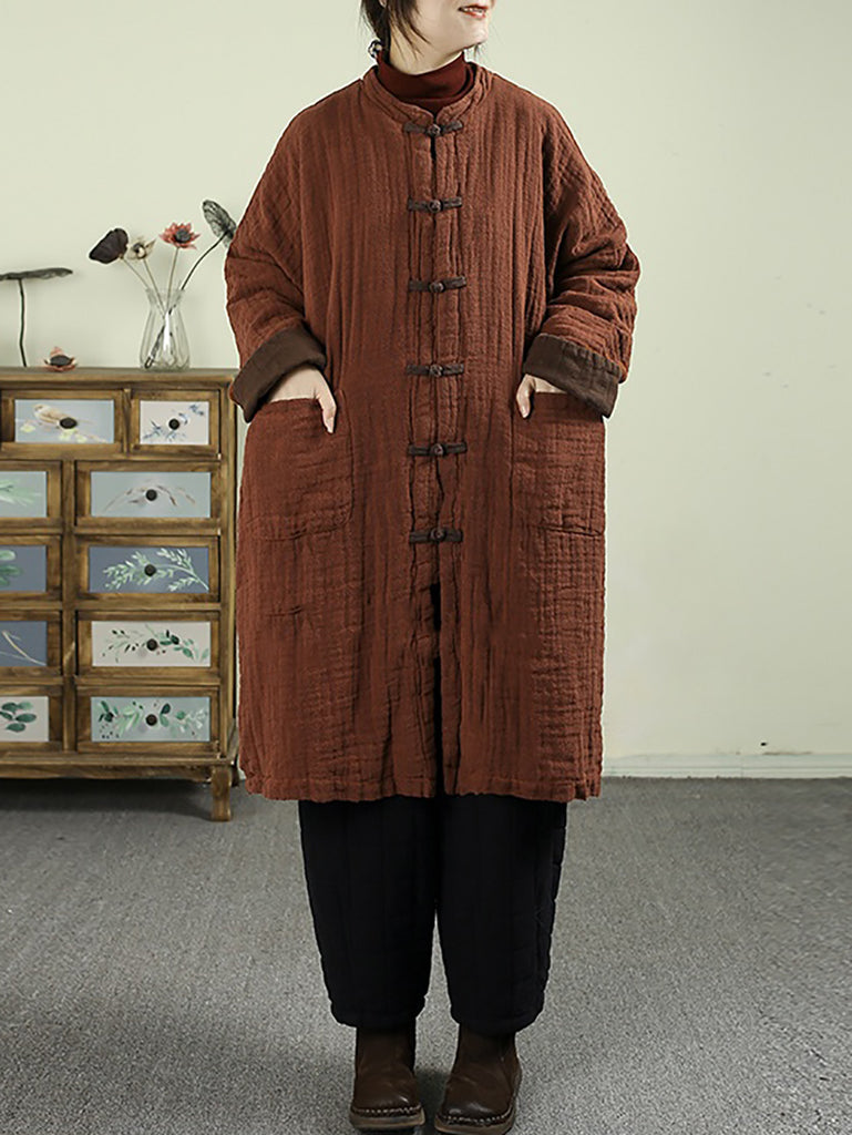 Ženski vintage zimski kaput od 100% lana s ovratnikom