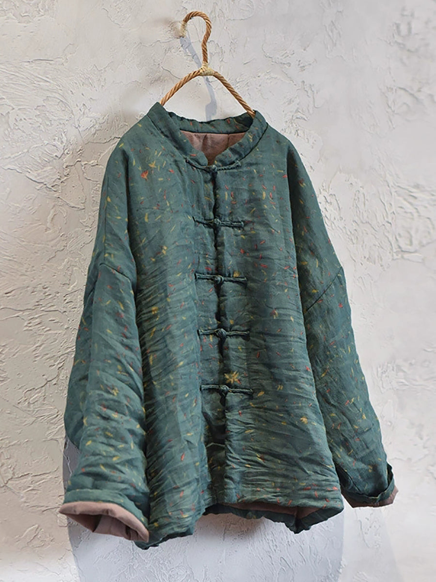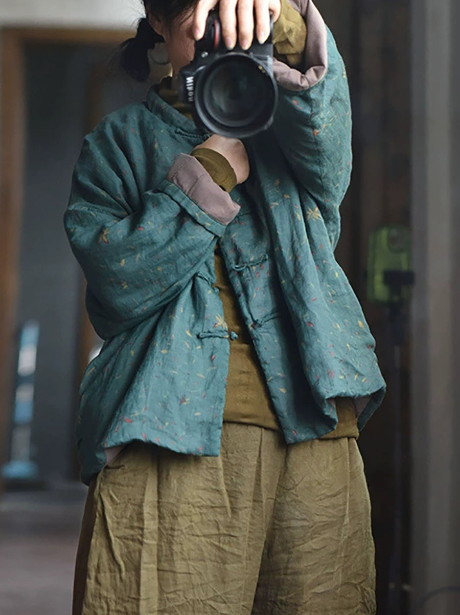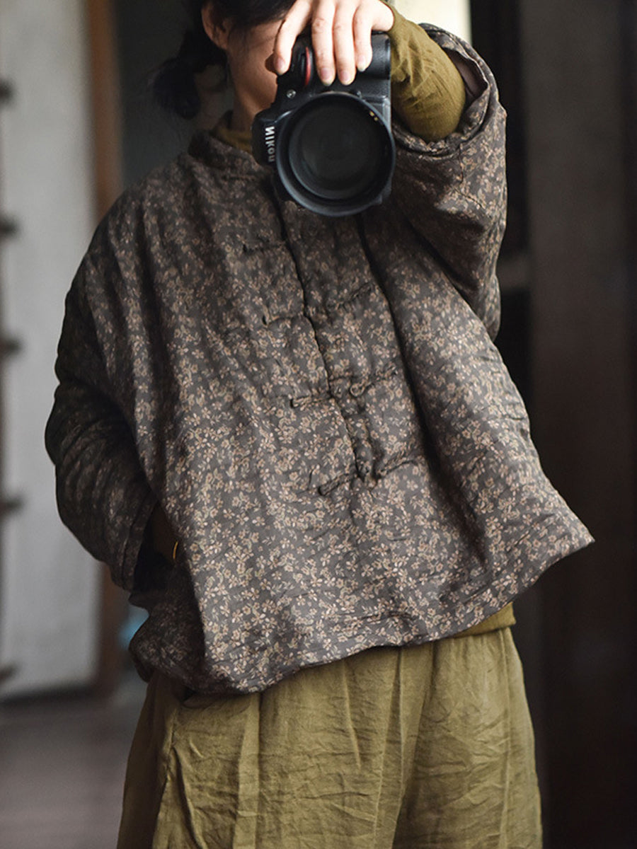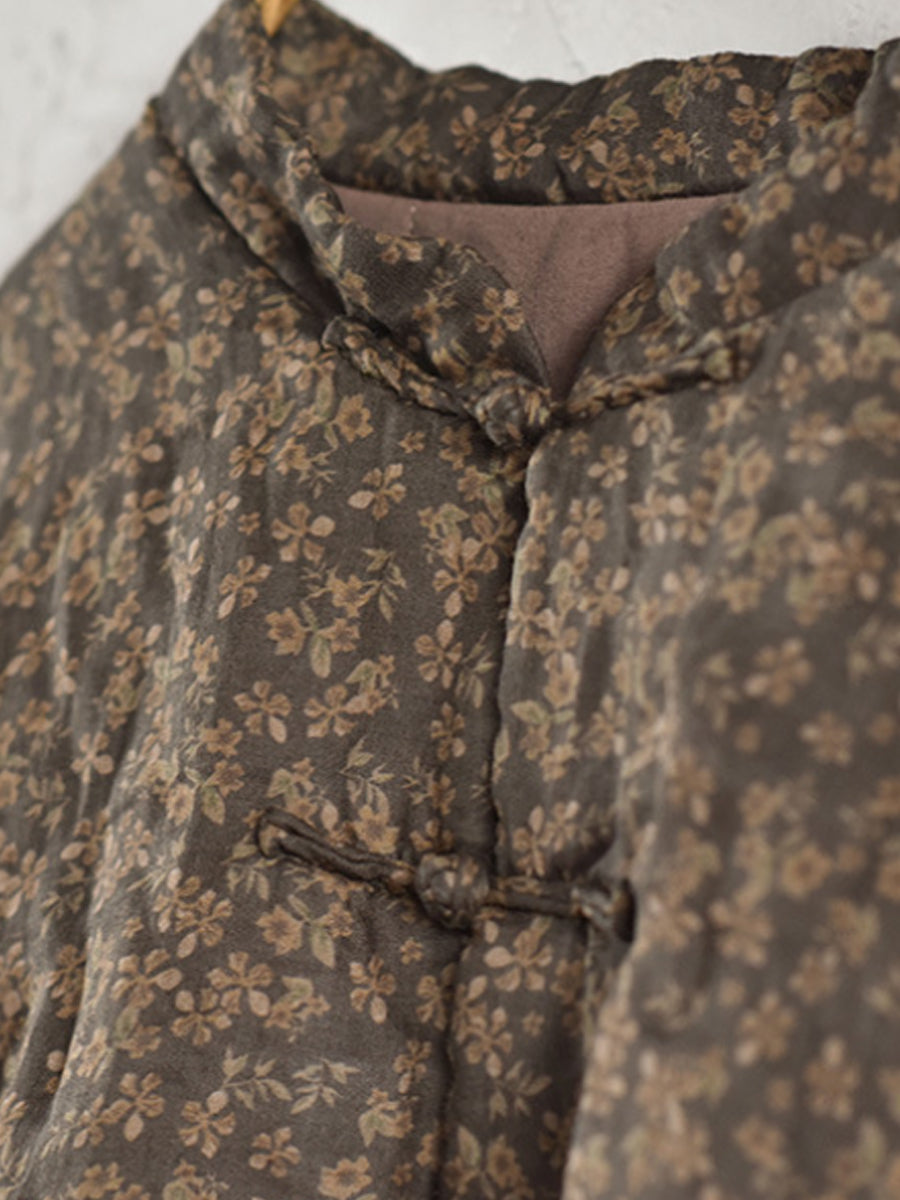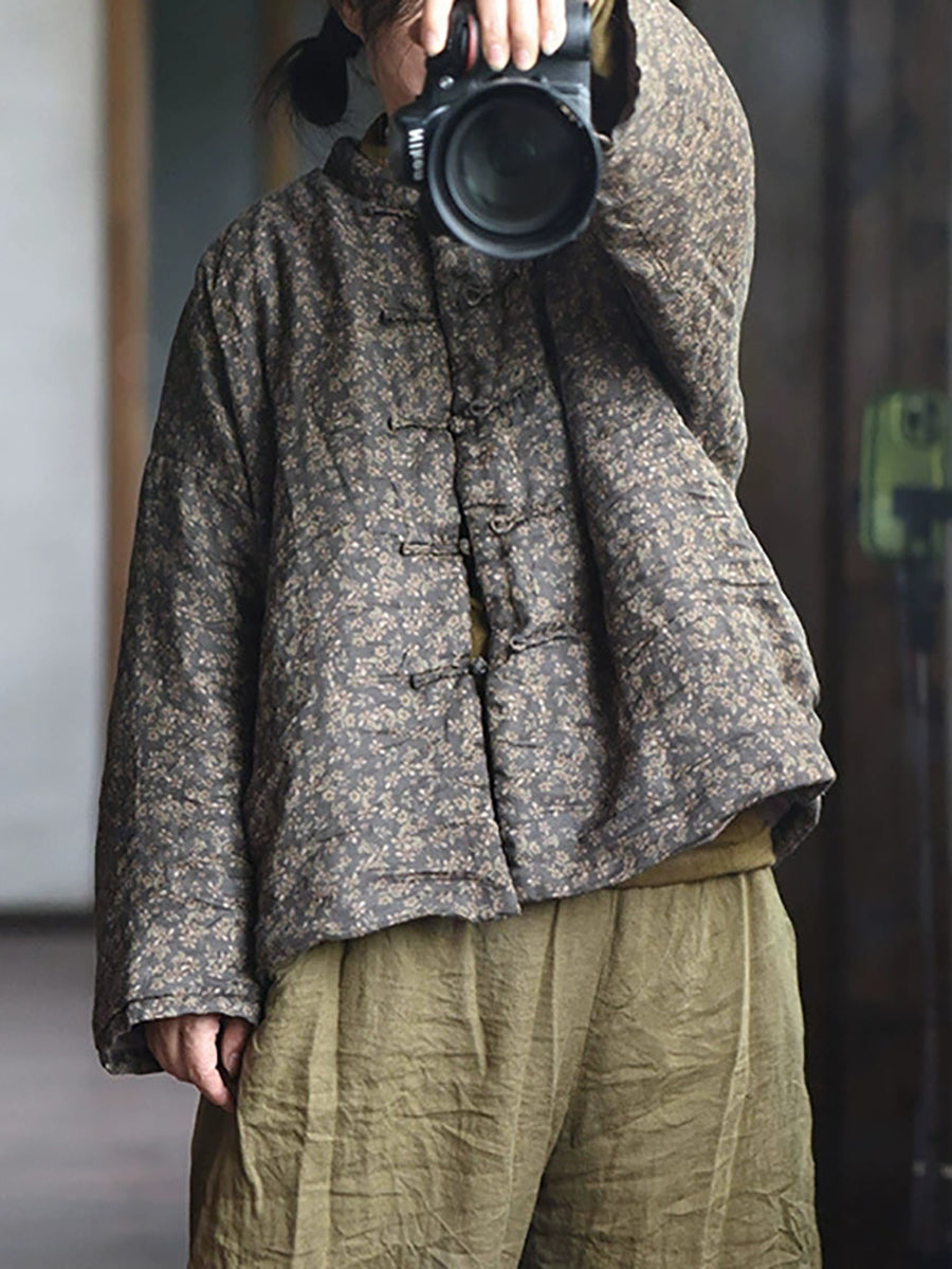 Ženski vintage zimski pamučni kaput s cvjetnim ovratnikom i stojećim ovratnikom