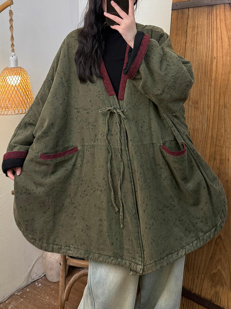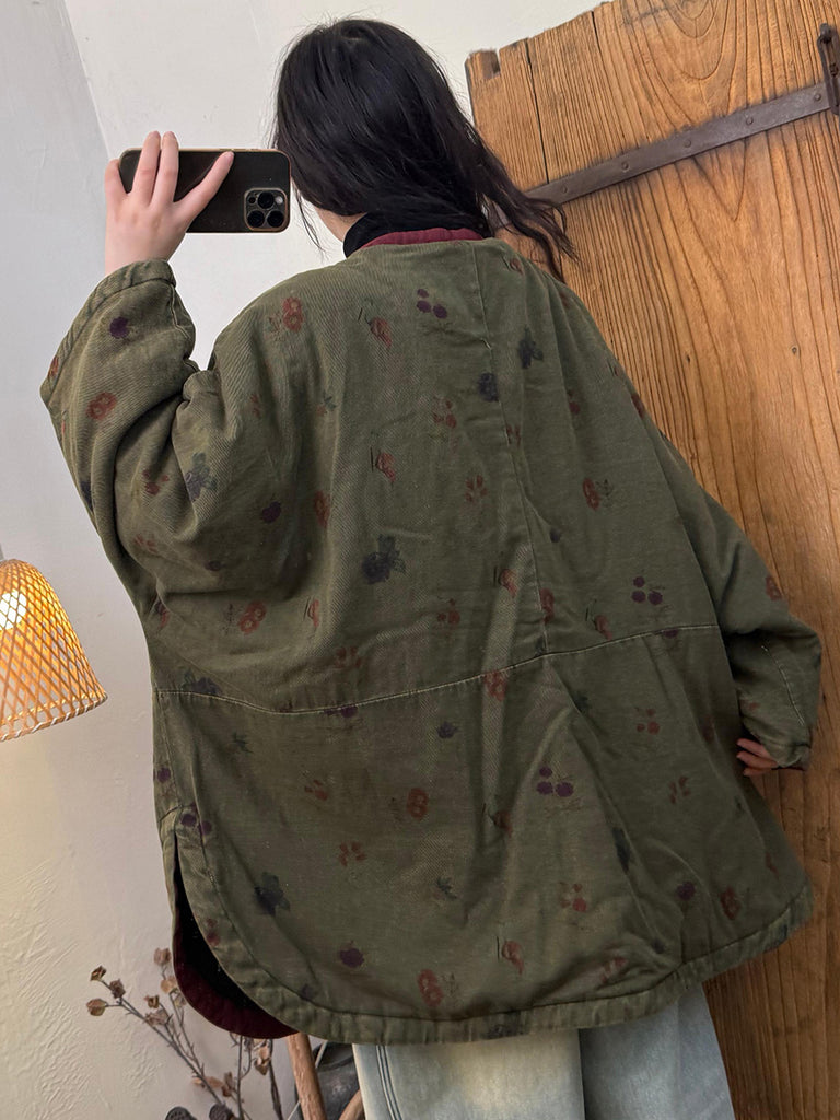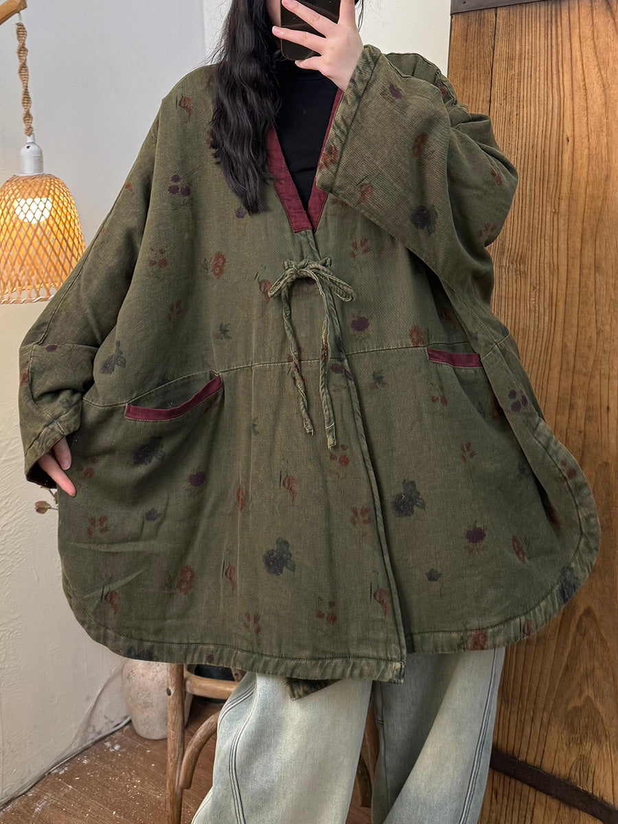 Ženski vintage zimski cvjetni kaput s V-izrezom