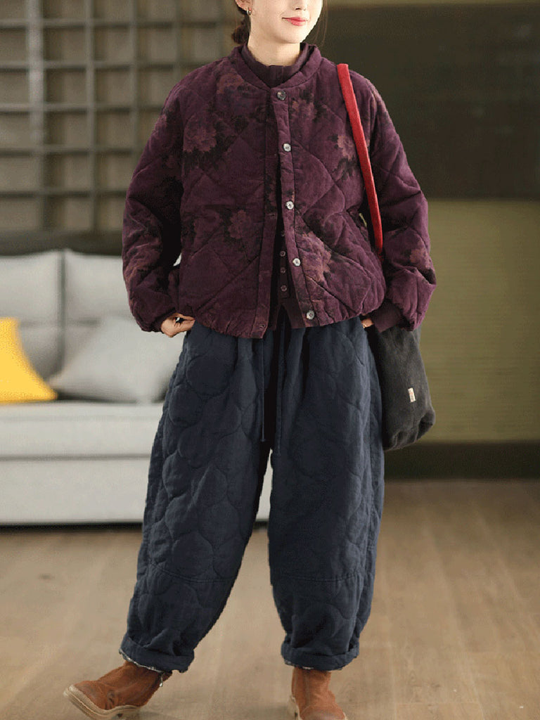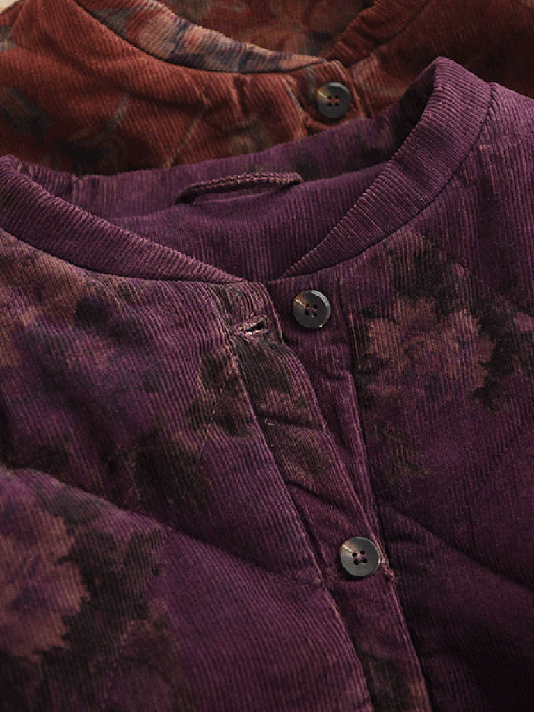 Izrađen od 100% pamuka, ovaj ženski kaput s vintage uzorkom ima cvjetni uzorak i stojeći ovratnik. Dizajniran s dugim retro rukavima, idealan je za jesensko i zimsko nošenje.