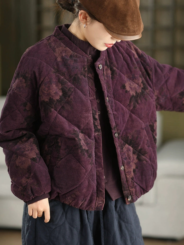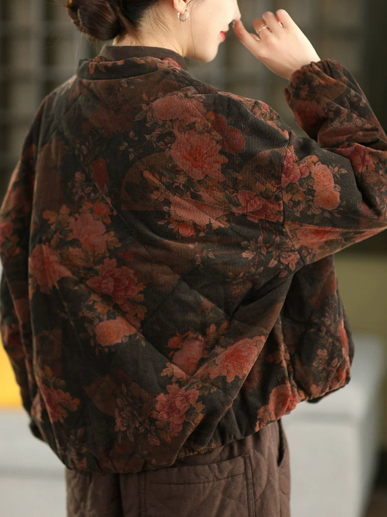 Ženska vintage zimska cvjetna podstavljena jakna od 100% pamuka