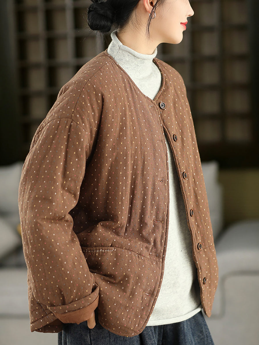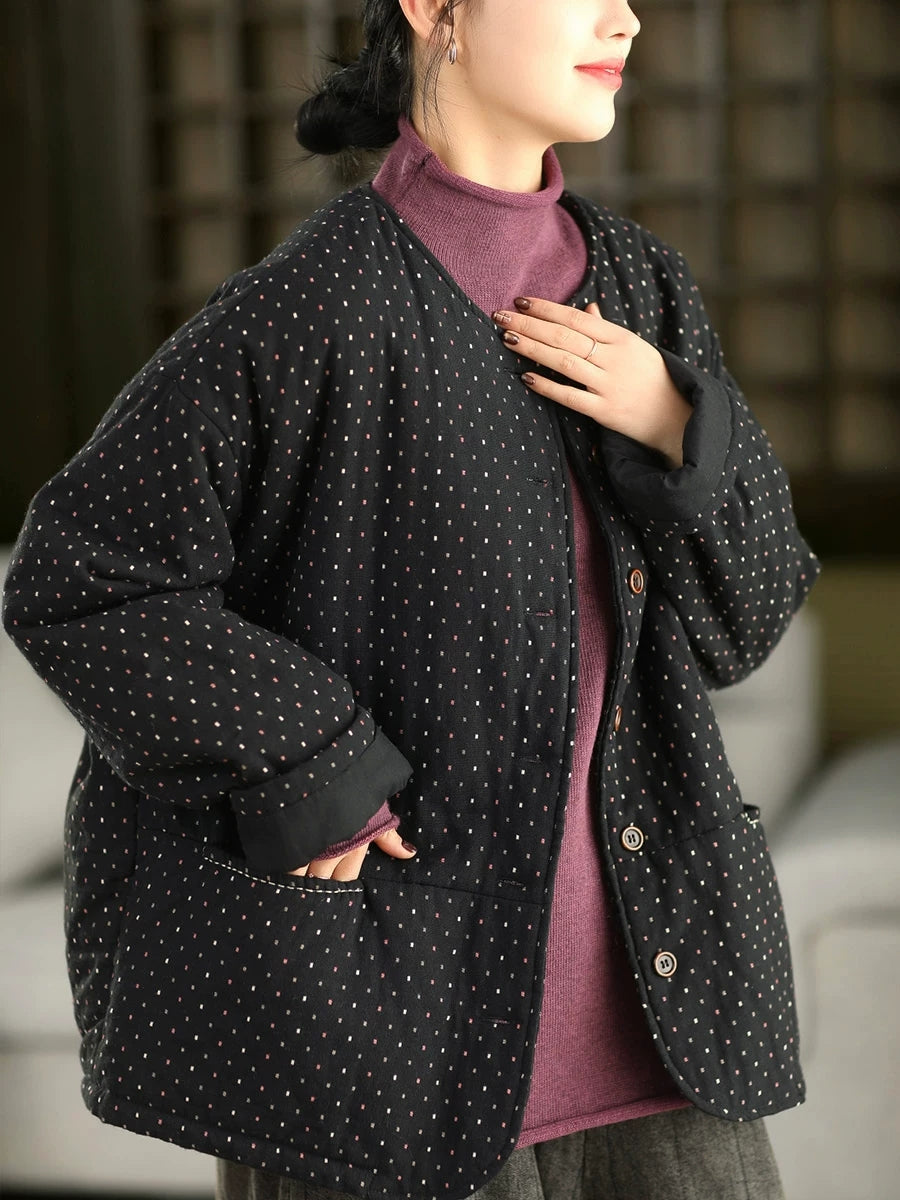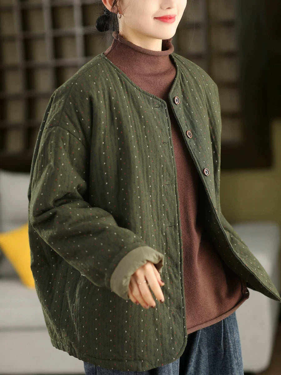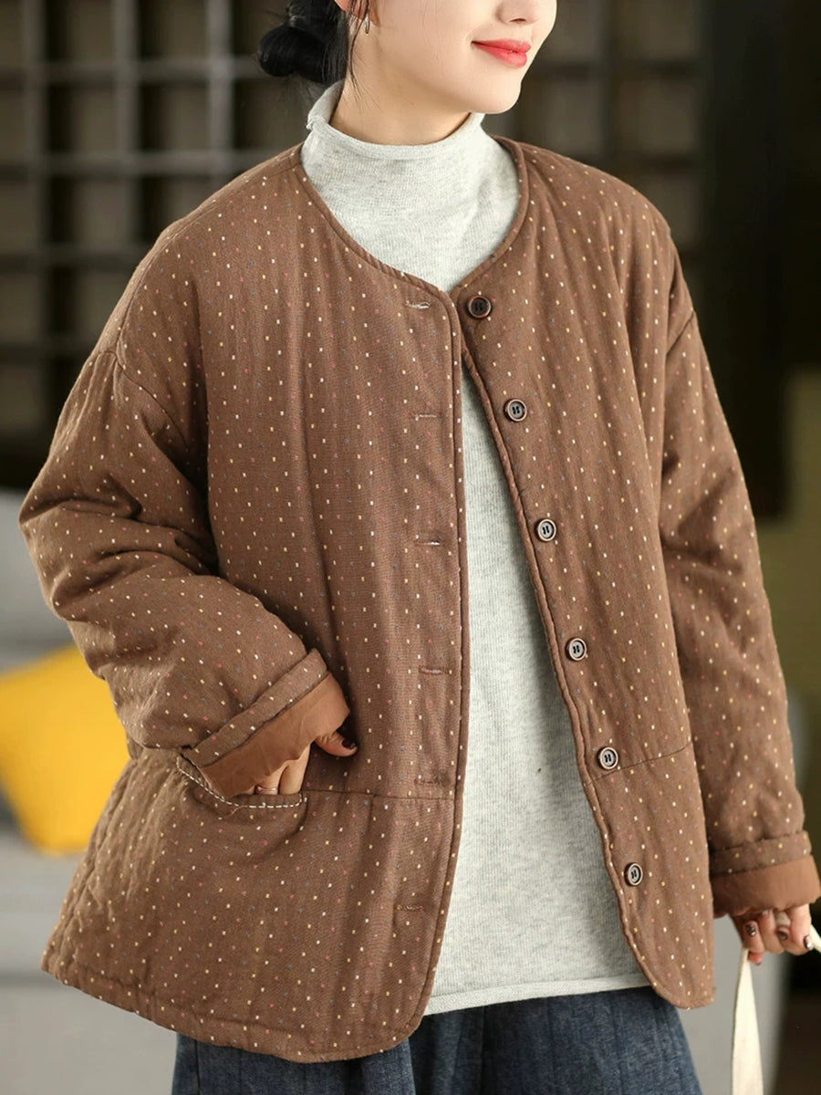 Ženski zimski umjetnički točkasti kaput s O-izrezom, 100% pamuk