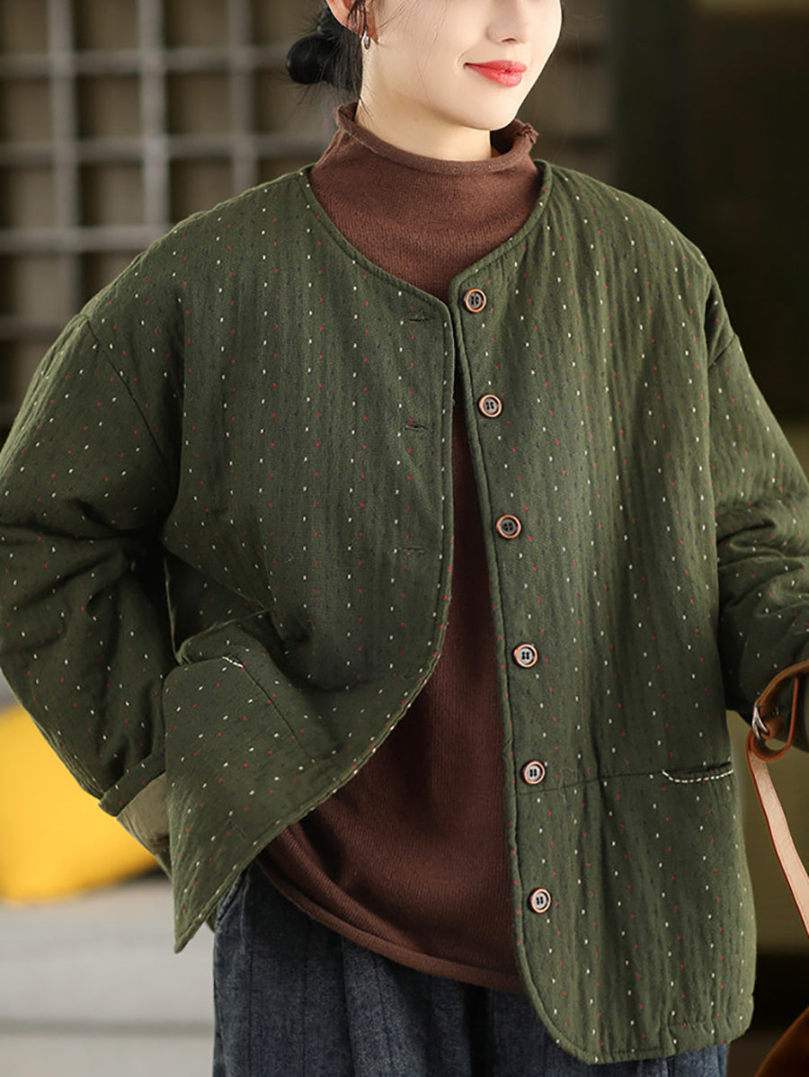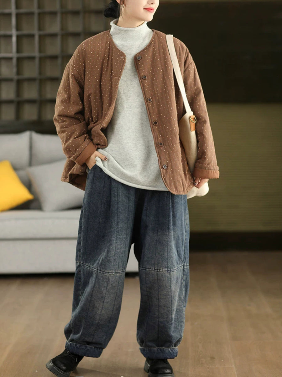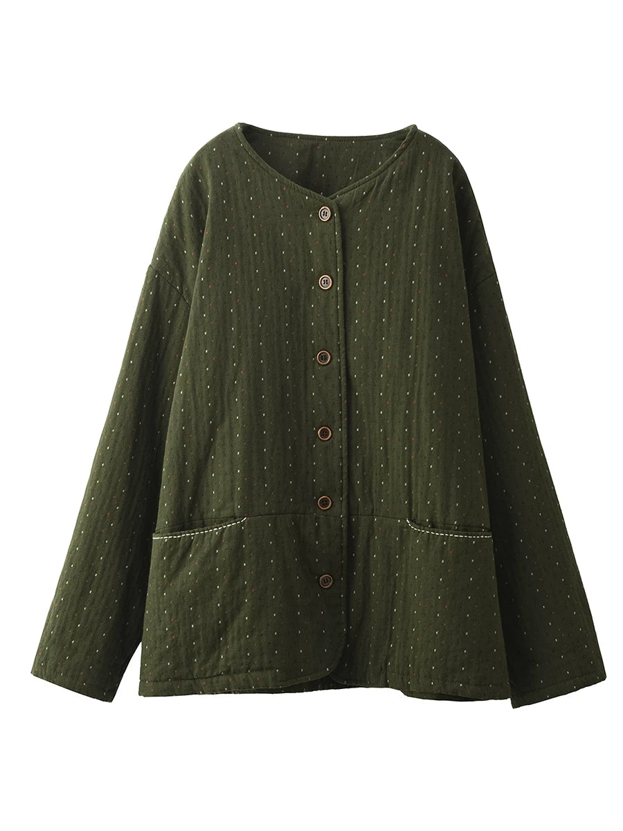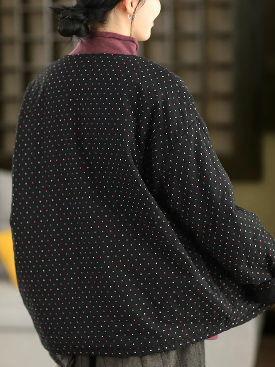 Ženski zimski umjetnički točkasti kaput s O-izrezom, 100% pamuk